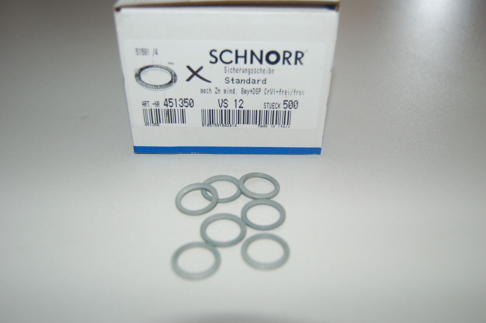 10 100 Stück Schnorr Sperrzahnscheiben VS Stahl, mechanisch verzinkt verstärkt, für Schrauben mit Festigkeit 8.8 und 10.9 beidseitig gezahnt Verwendung als Formschlüssige Losdrehsicherung. Durch die beidseitig verzahnte Oberfläche und Aufwölbung werden auch kleine Setzbeträge ausgeglichen. Abmessung