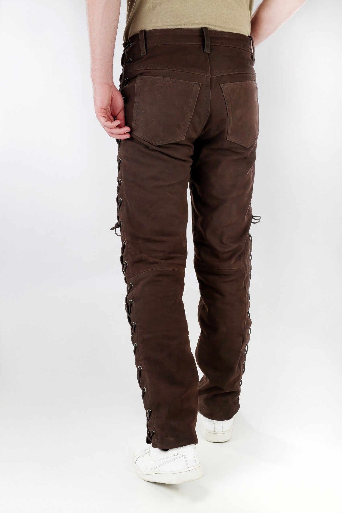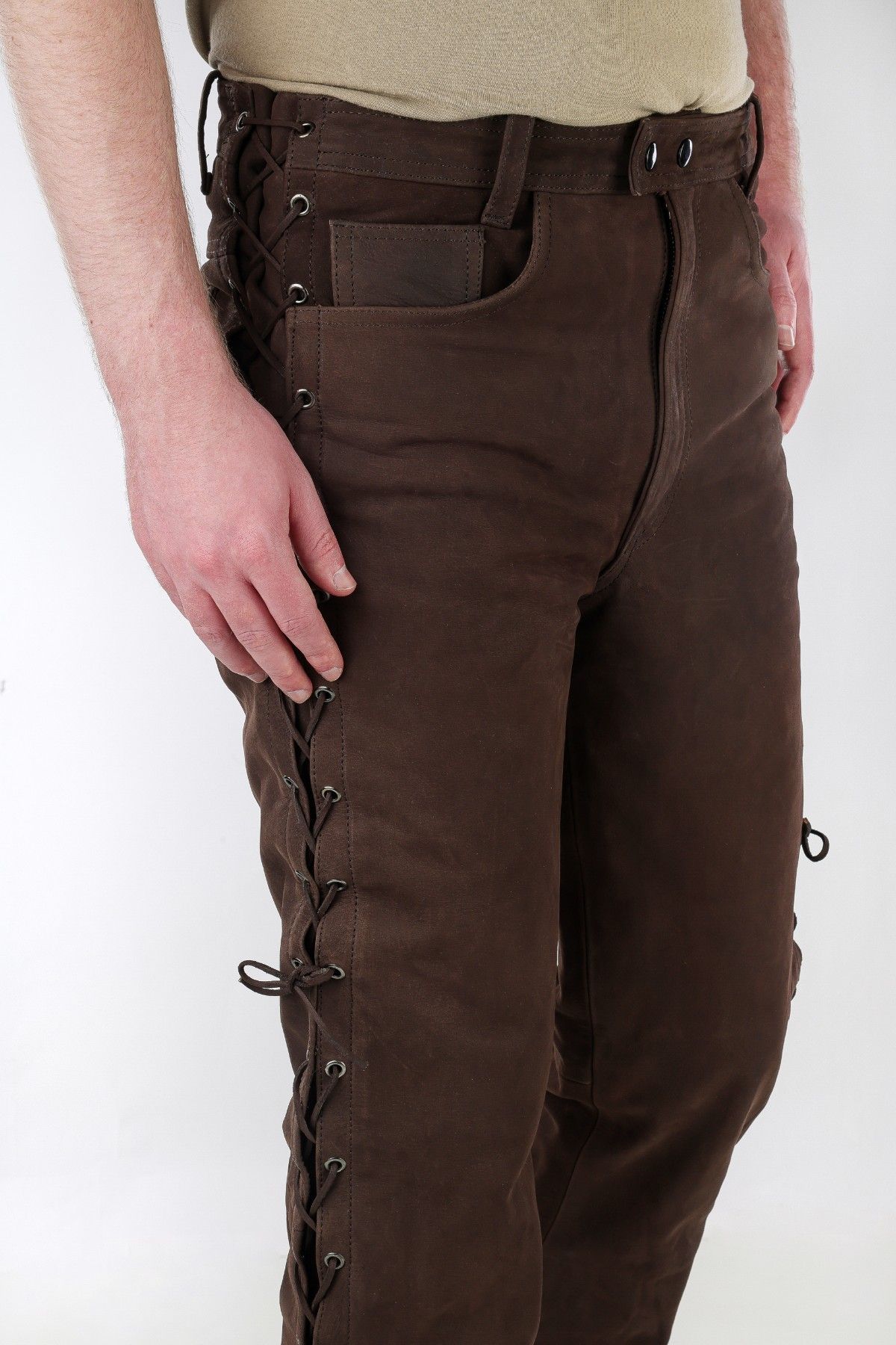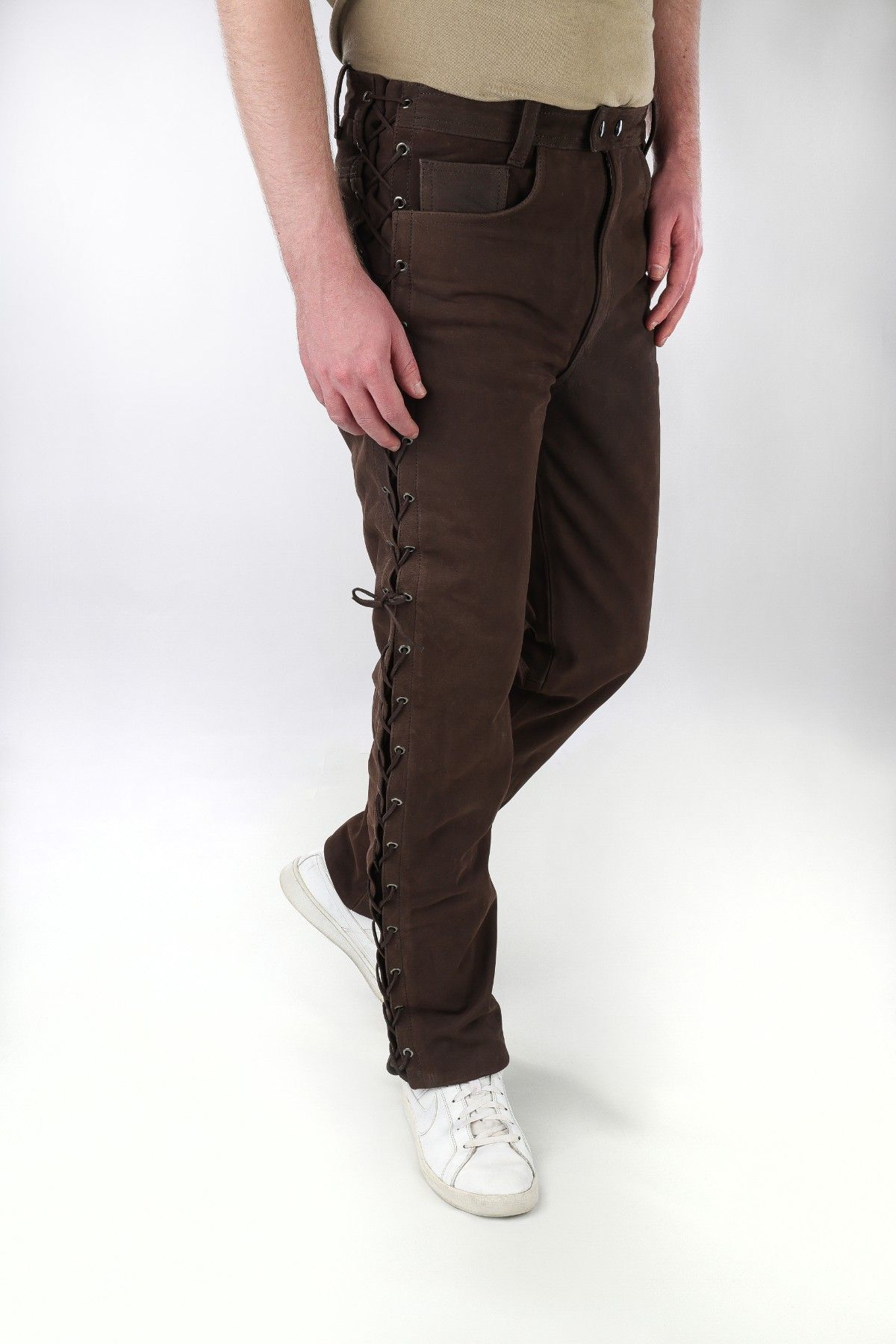 Schnürjeans Schnürhose Lederhose mit seitlicher Schnürung Rind Nubuk Leder braun