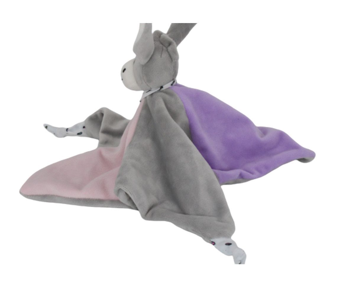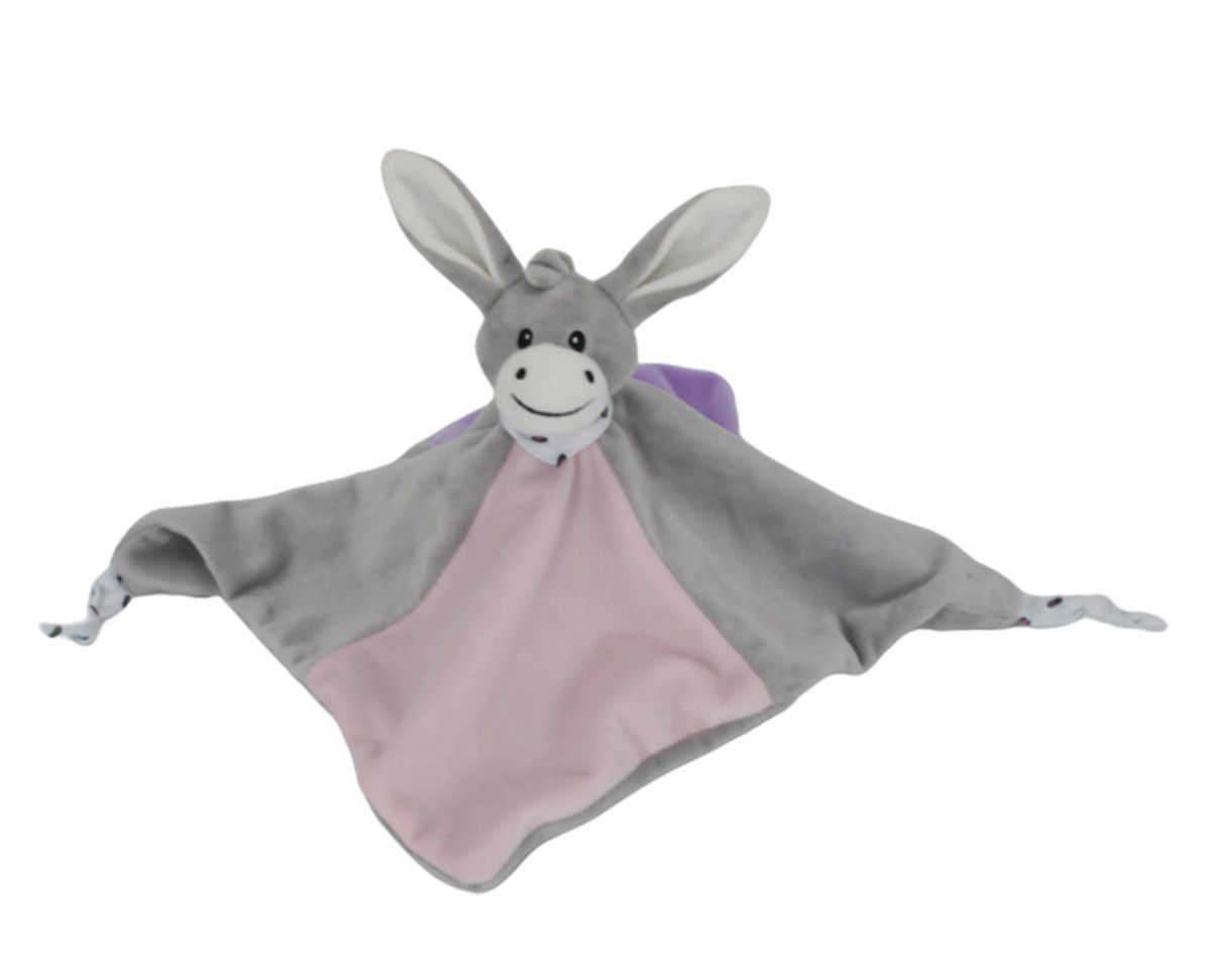 Schmusetuch Kuscheltuch in rosa grau, kuschelweiche Begleiter für Baby 100% Polyester Movtiv: Esel, Nase, Augen sind bestickt, kein Kunststoff Mass: 32x32cm bis 60°C waschbar, Pflege: Handwasch empfohlen Uni Sex, geeignet für Junge und Mädchen 65g netto gewicht