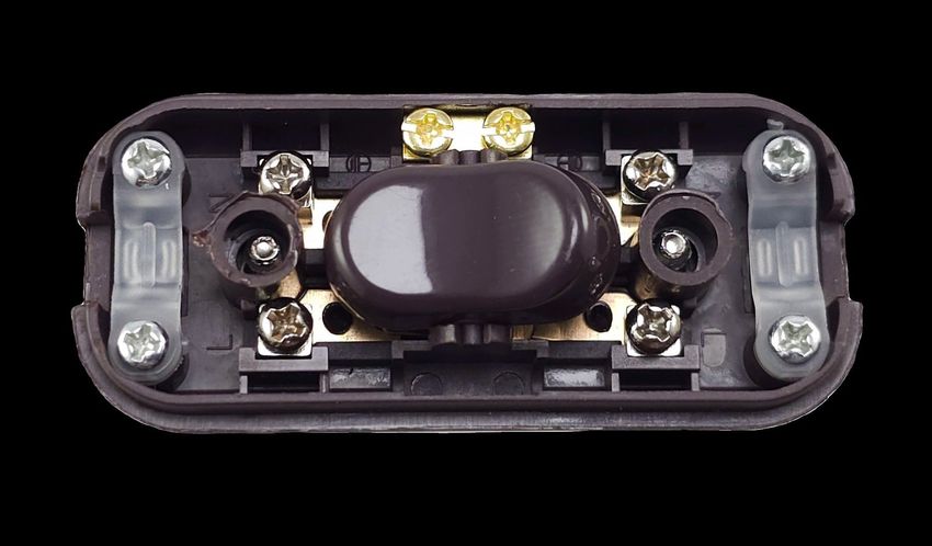 Schnur-Zwischenschalter Braun echten 3-polig mit Schutzklemme, 6 A, 250 V