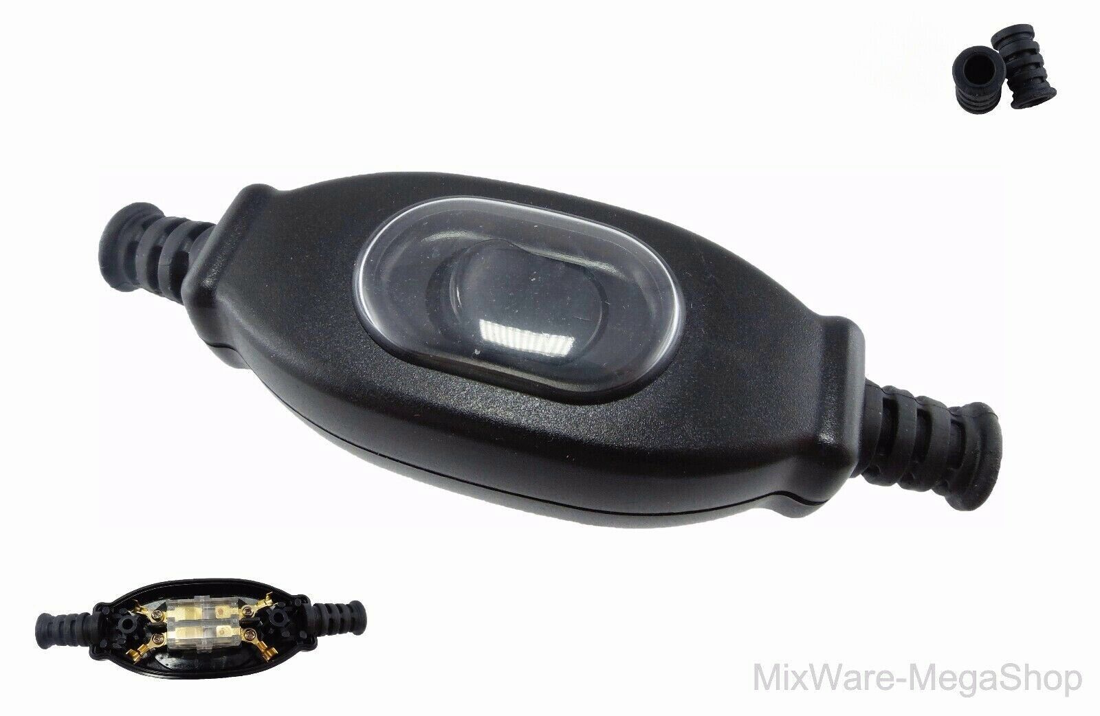 Schnur-Zwischenschalter Schwarz IP65, 2-polig, 3 A, 250 V , Passt für LED, SMD
