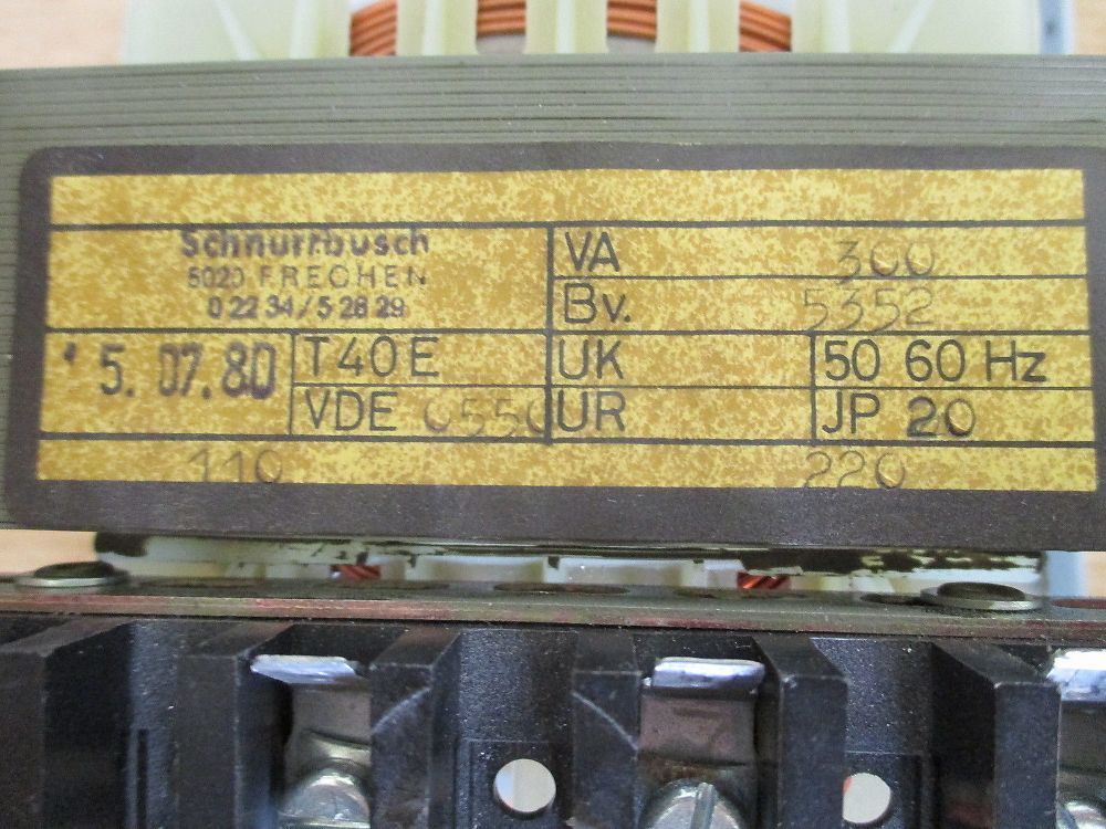Schnurrbusch Transformator BV 5352 Trafo pri.220 V sek.110 V 300 VA T9/994