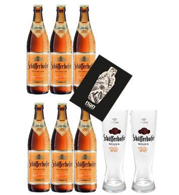 Schöfferhofer Weizen 6er Set Hefeweizen 0,5l (5% Vol) + 2 Gläser mit Mixcompany