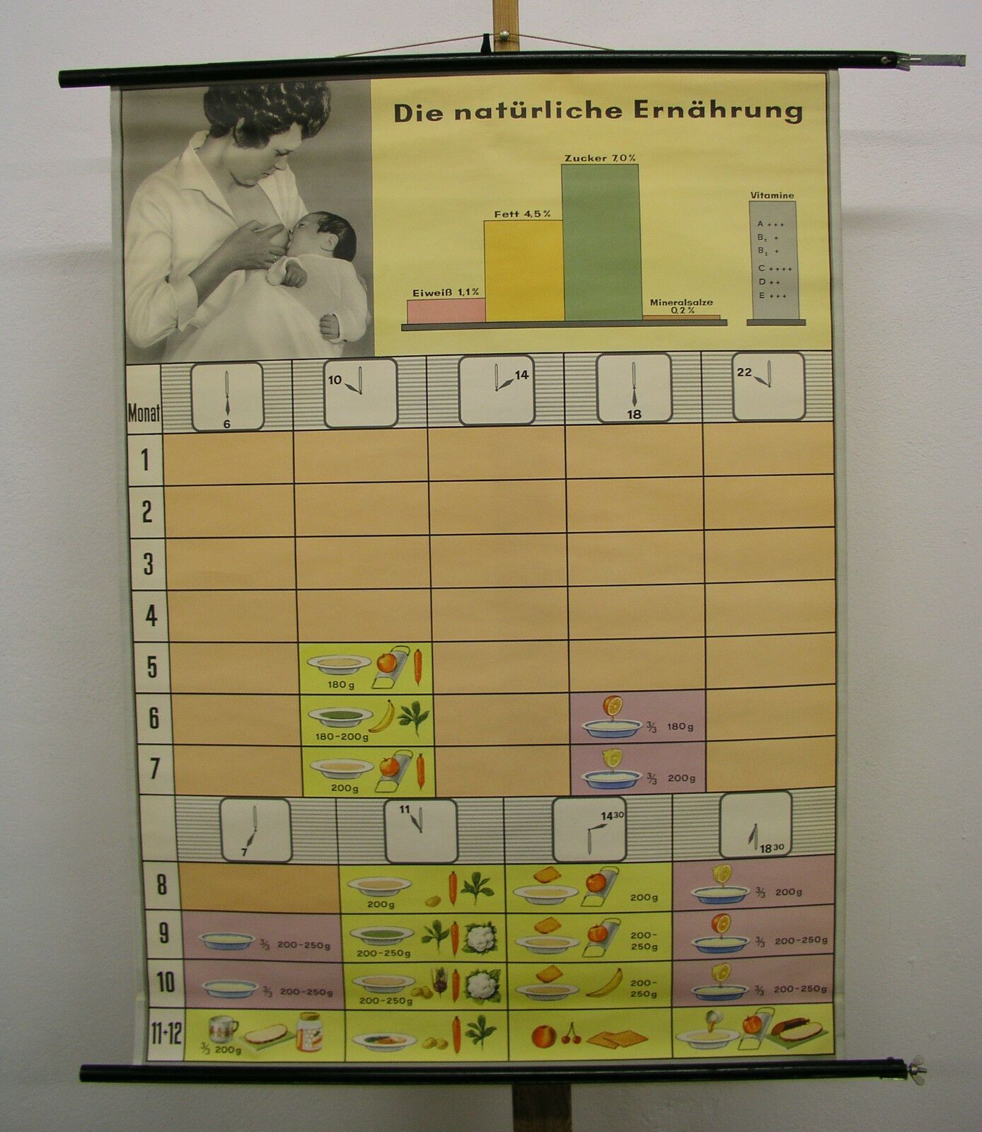 schöne alte Schulwandkarte Kind stillen natürliche Ernährung 80x111 vintage 1962