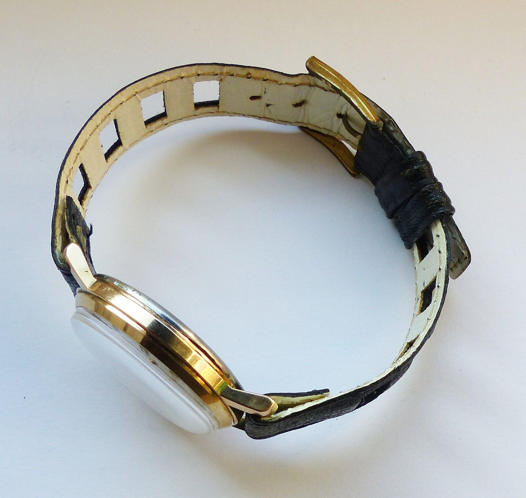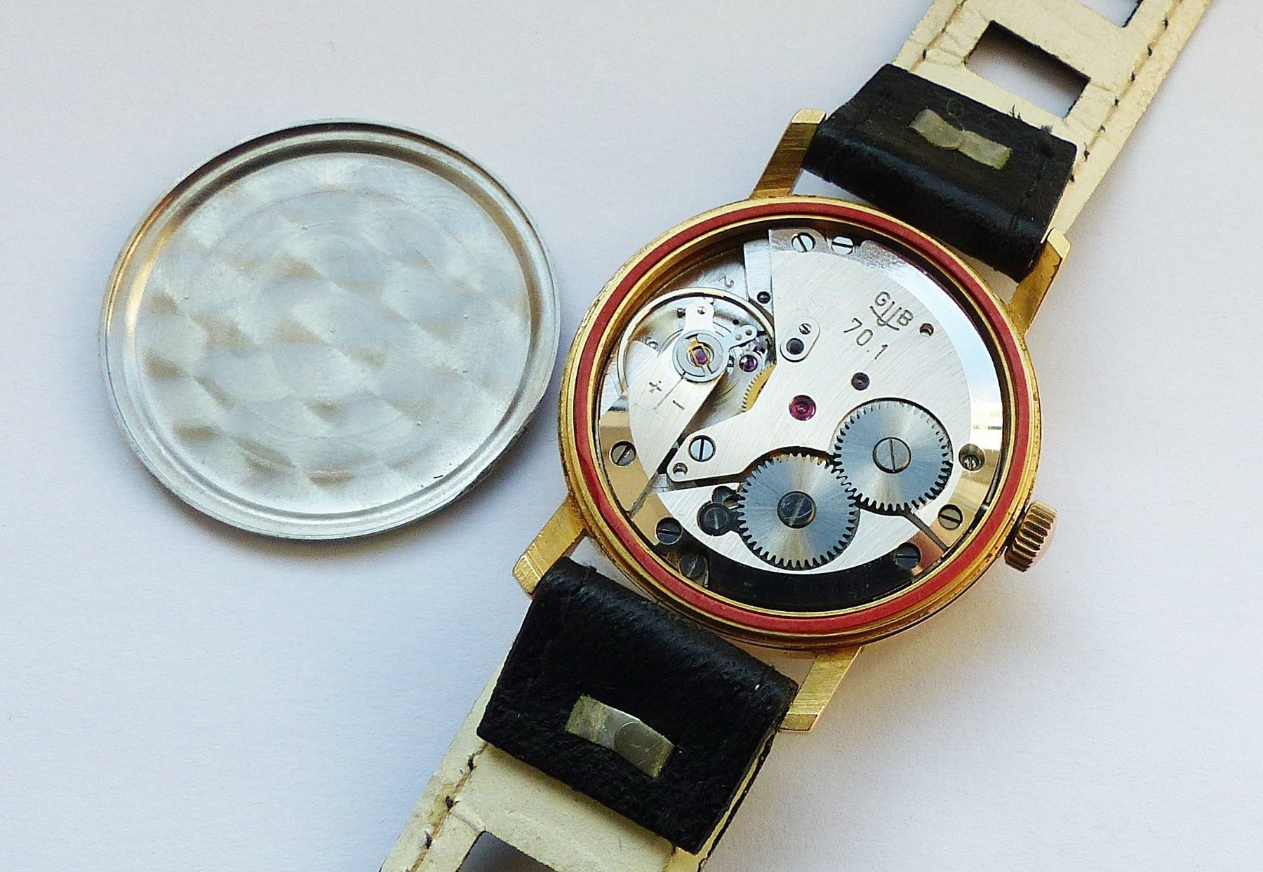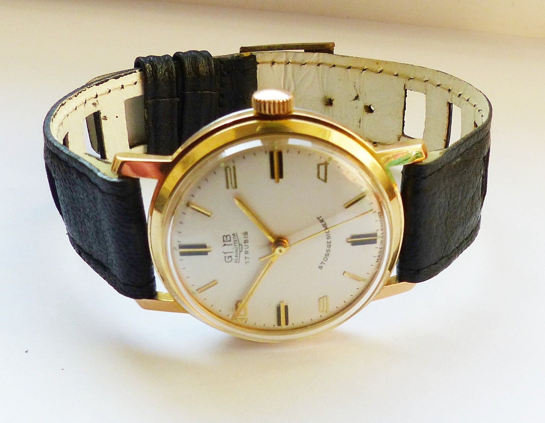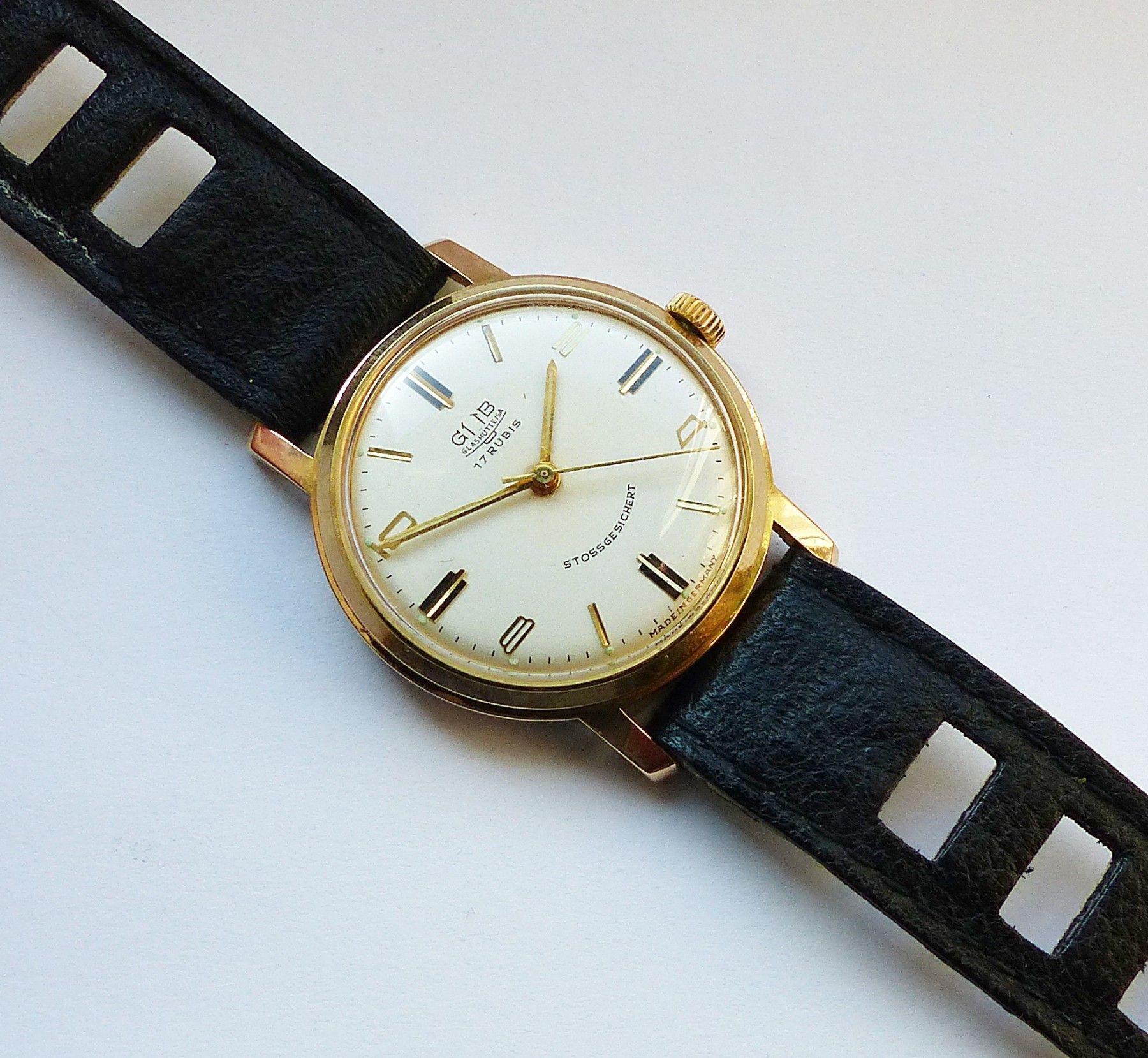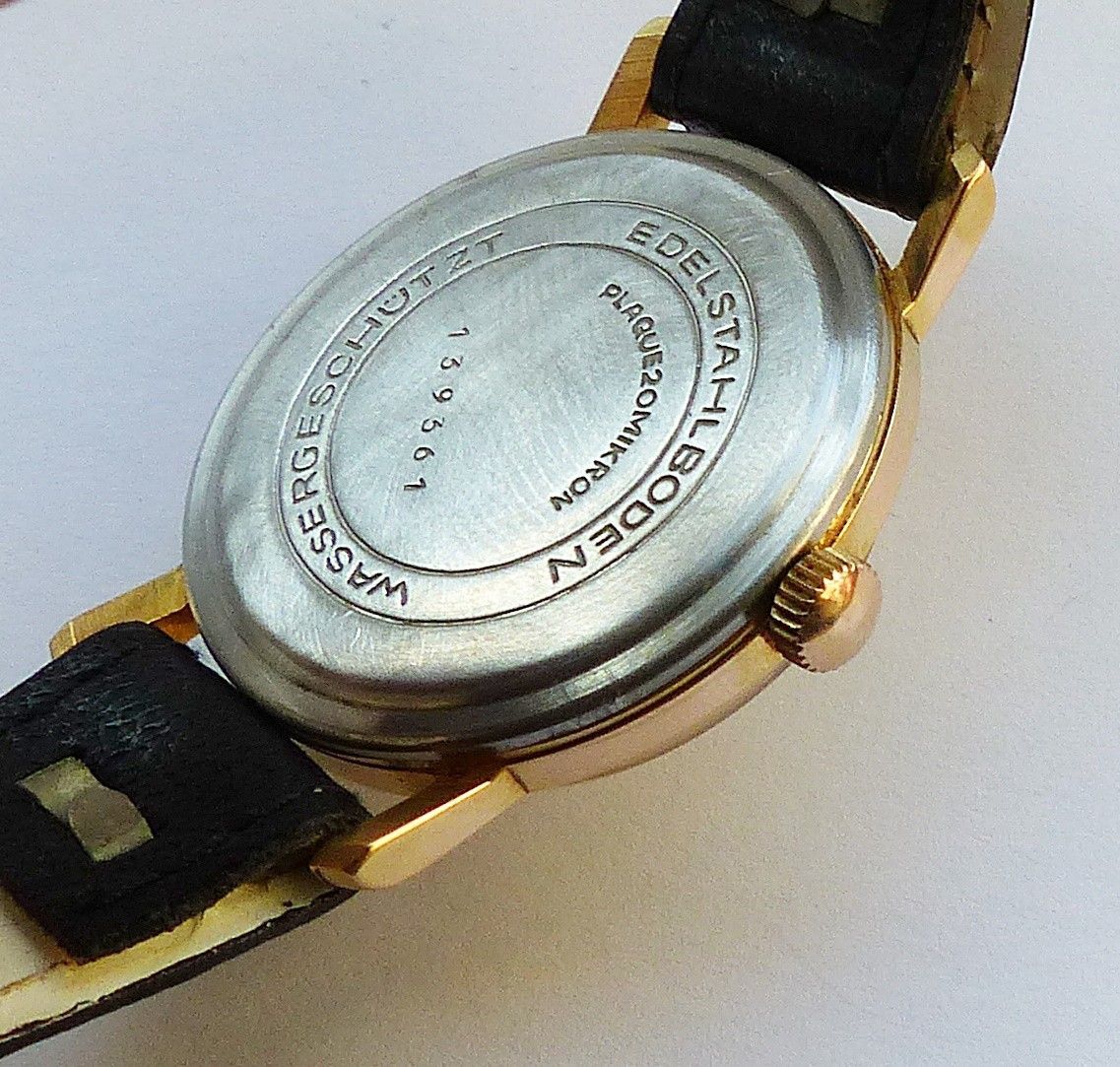 Schöne GUB Glashütte Classic Herren Vintage Armbanduhr mit Elfenbeinfarbenem Zifferblatt und aufgesetzten Goldenen Zahlen und Strichindizes, grosser zentraler Sekunde, fluoreszierenden Zeigern und Indexpunkten. Die Uhr ist voll funktionsfähig und in ungetragenem neuwertigen Zustand, s. Fotos Herstel... Mehr