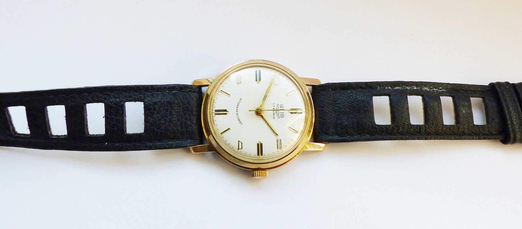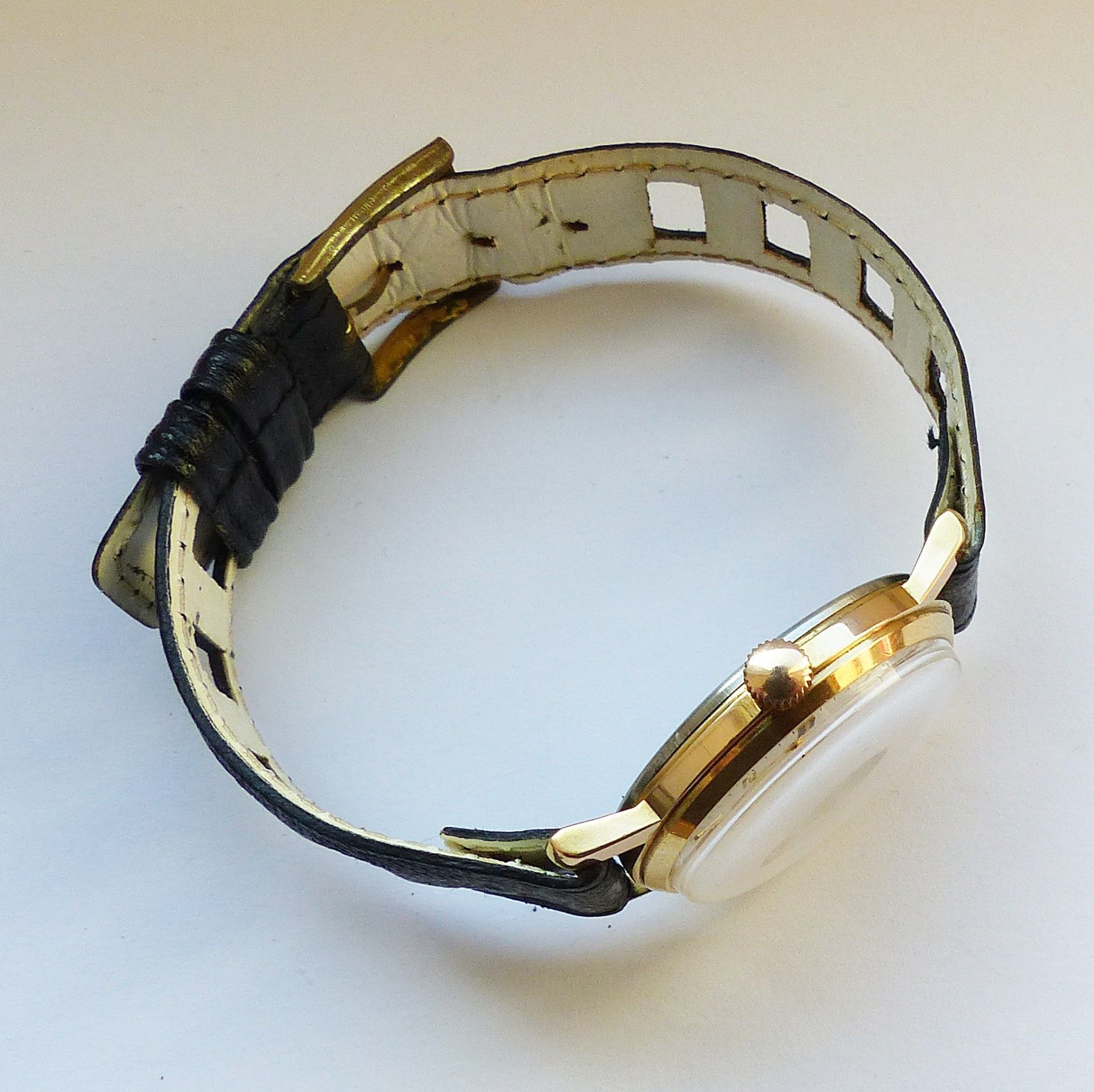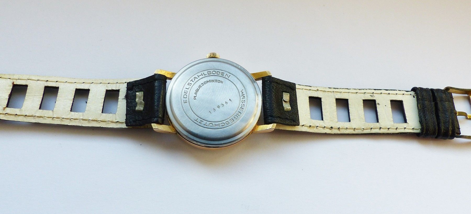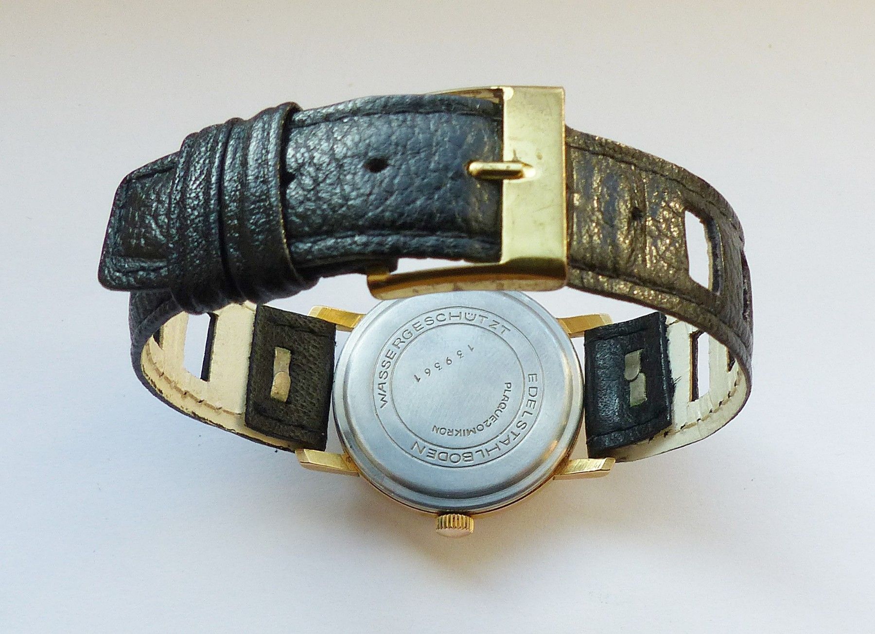 Schöne GUB Glashütte Classic Herren Vintage Armbanduhr mit Elfenbeinfarbenem Zifferblatt und aufgesetzten Goldenen Zahlen und Strichindizes, grosser zentraler Sekunde, fluoreszierenden Zeigern und Indexpunkten. Die Uhr ist voll funktionsfähig und in ungetragenem neuwertigen Zustand, s. Fotos Herstel... Mehr