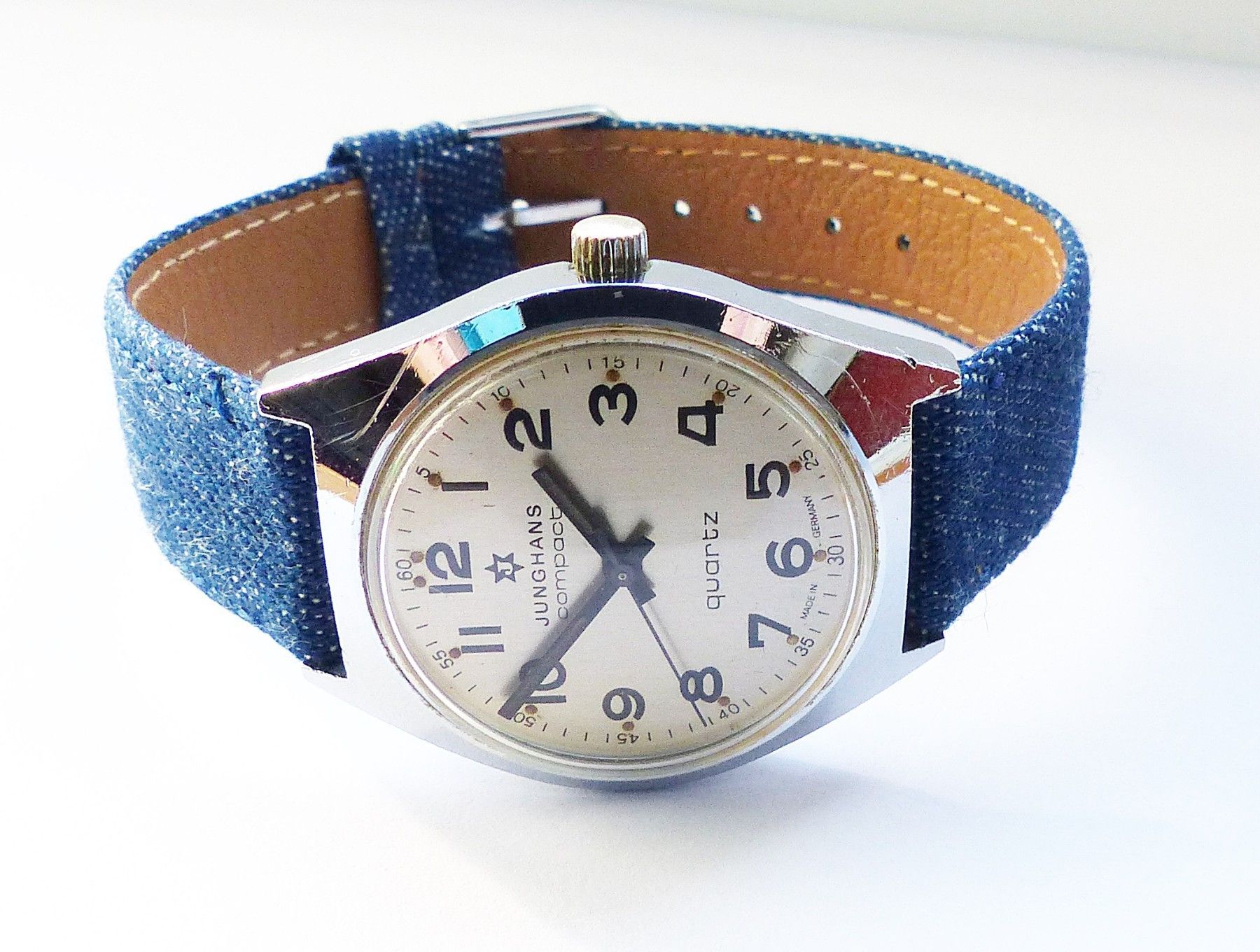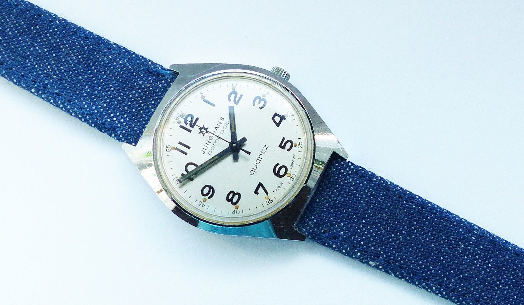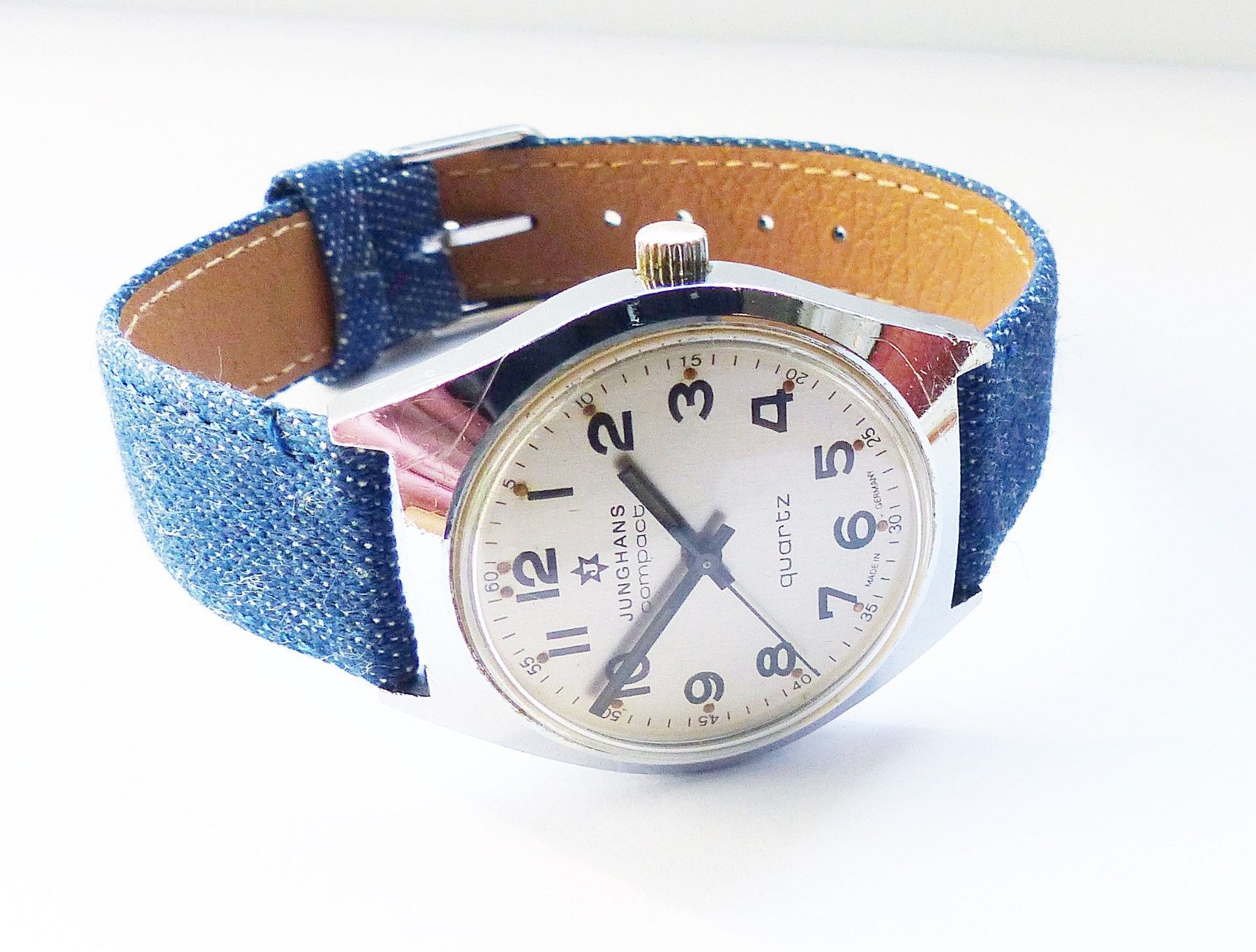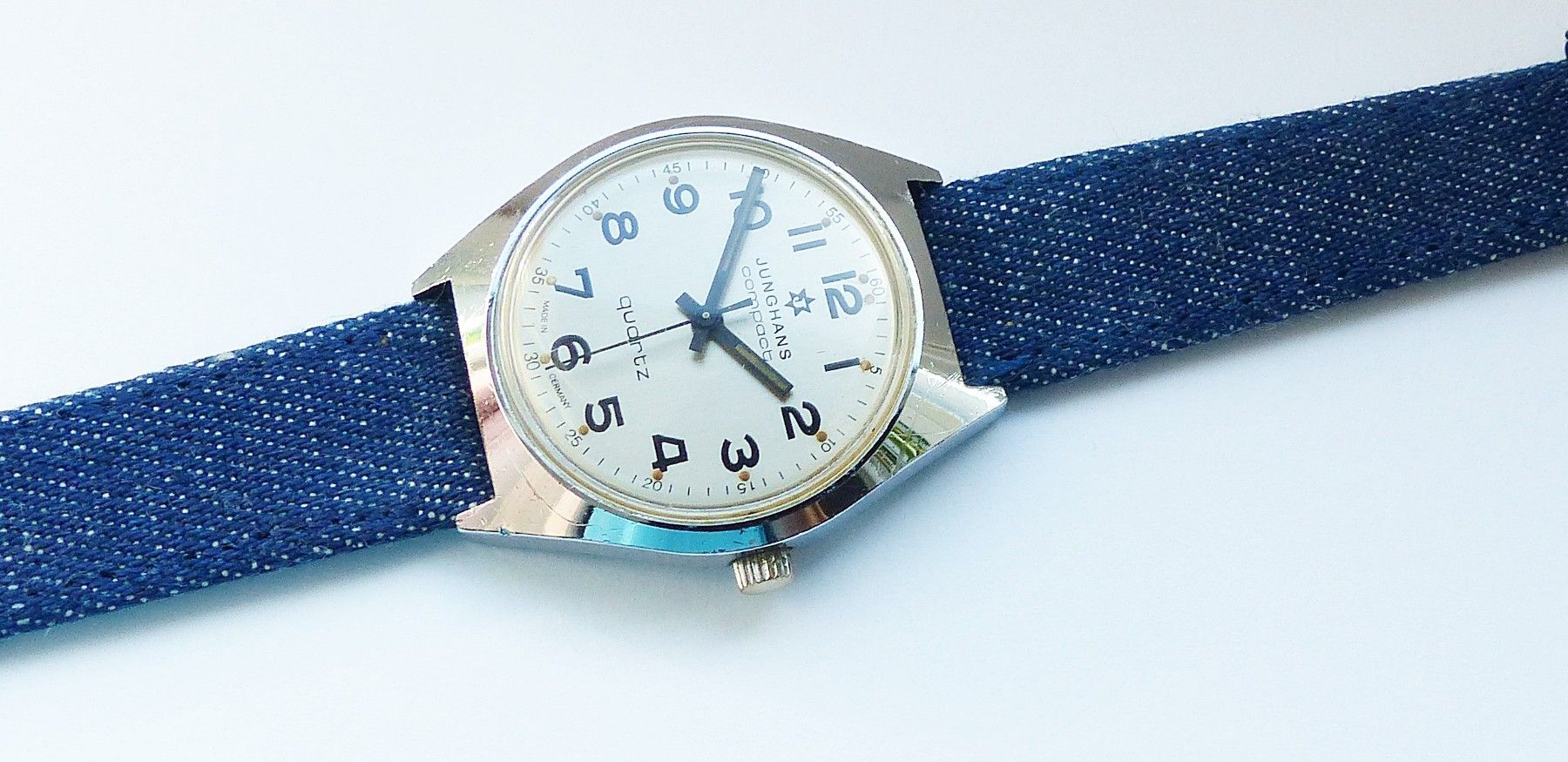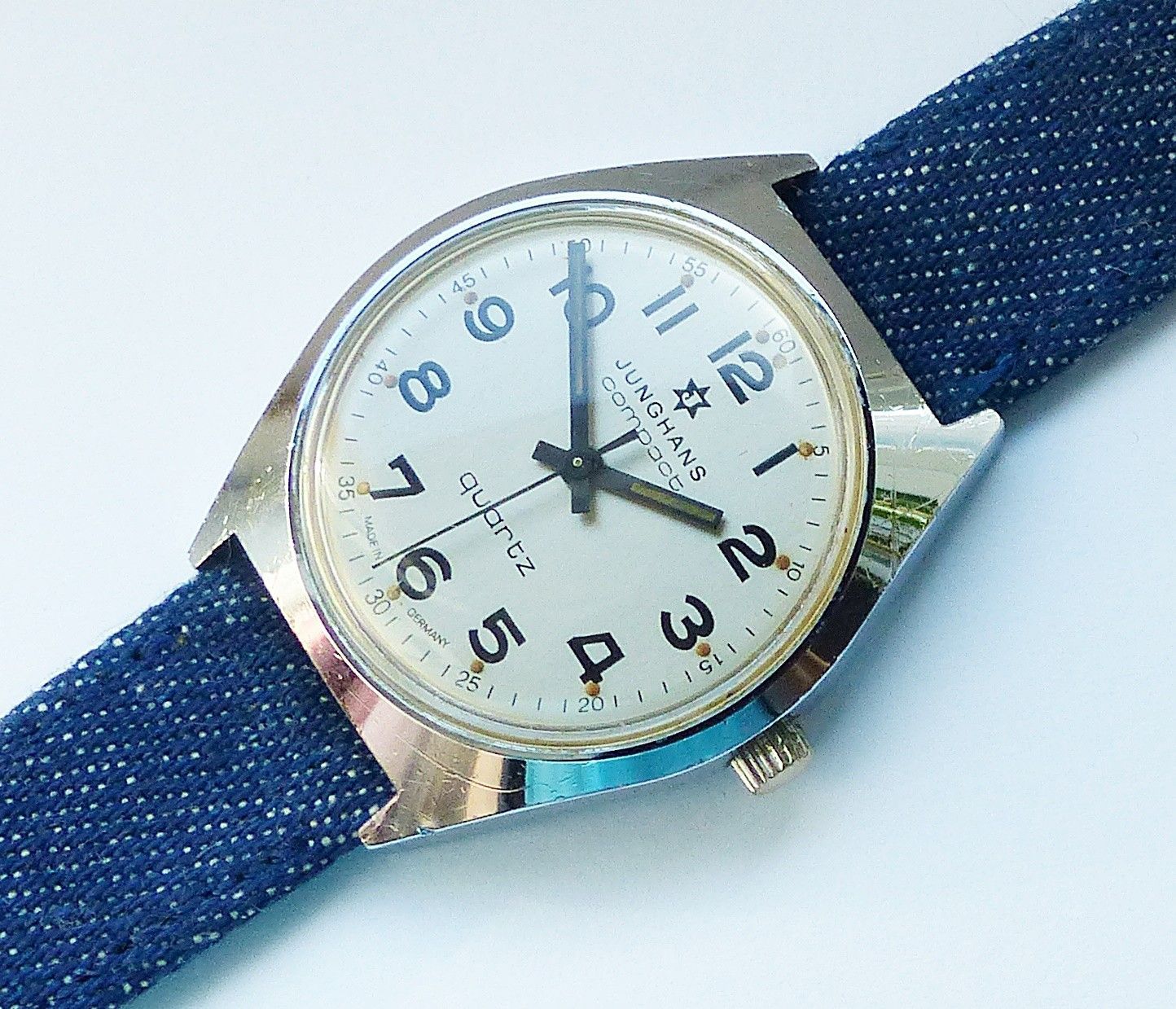Schöne Junghans Compact Classic Herren Vintage Armbanduhr mit Silbernem Zifferblatt und Schwarzen arabischen Zahlenindizes, grosser zentraler Sekunde, fluoreszierenden Zeigern und Indexpunkten. Die Uhr ist voll funktionsfähig und in sehr guten Zustand s. Fotos Hersteller : Junghans Deutschland Model... Mehr