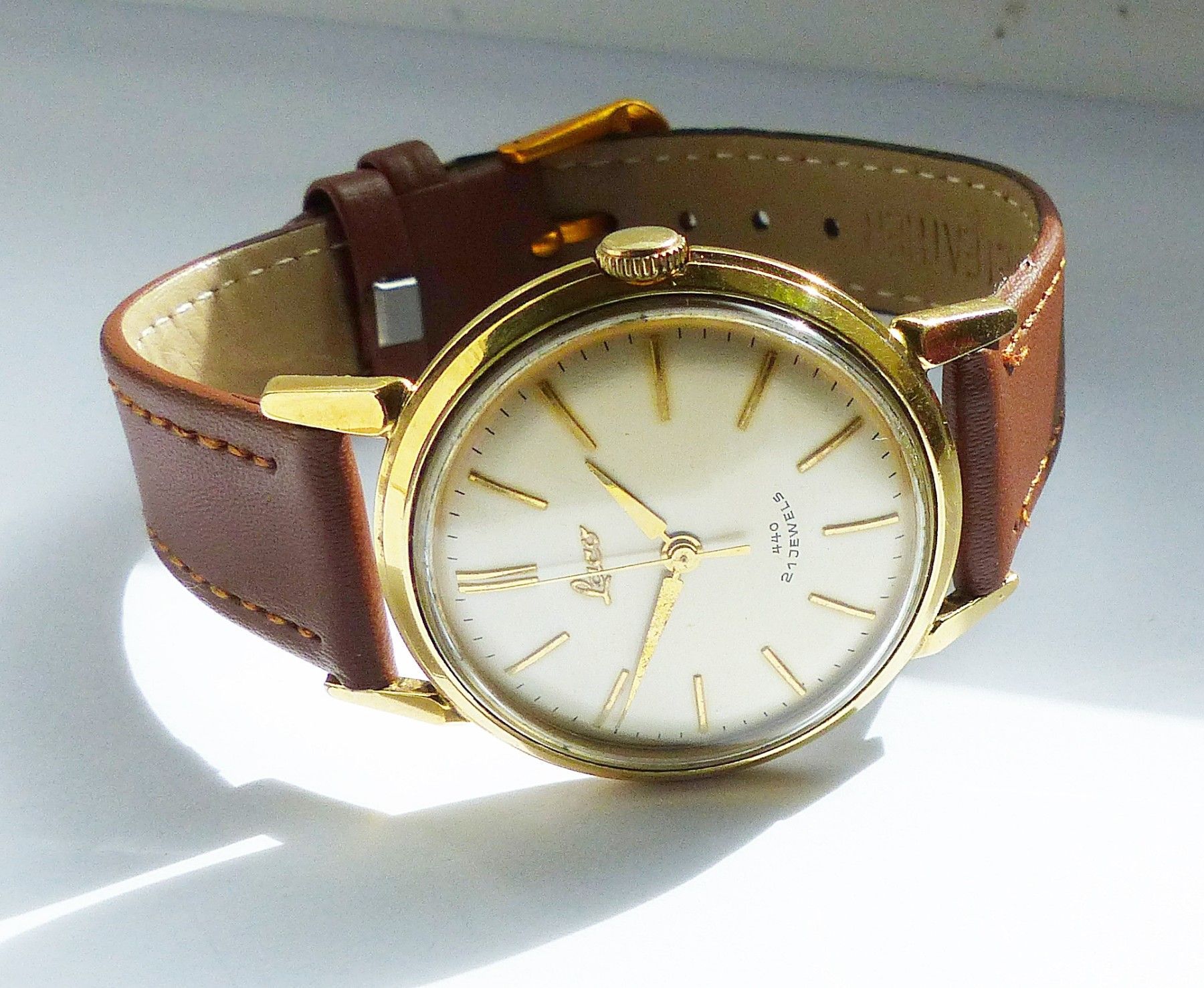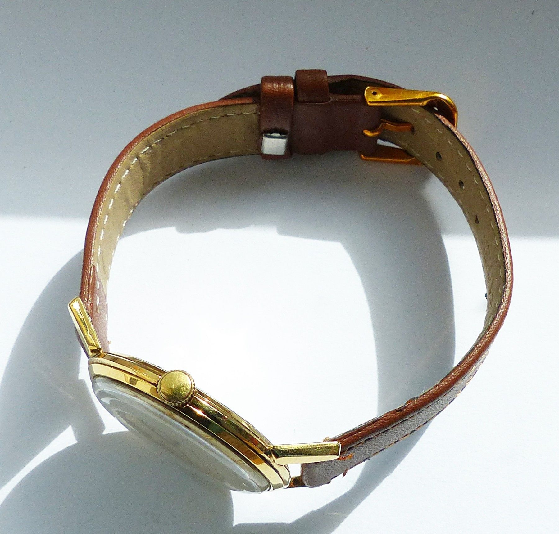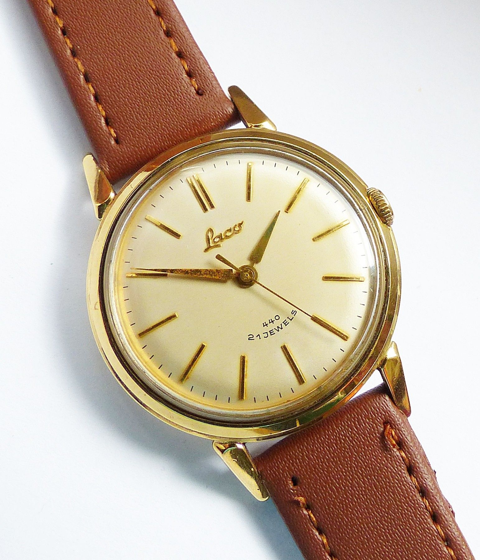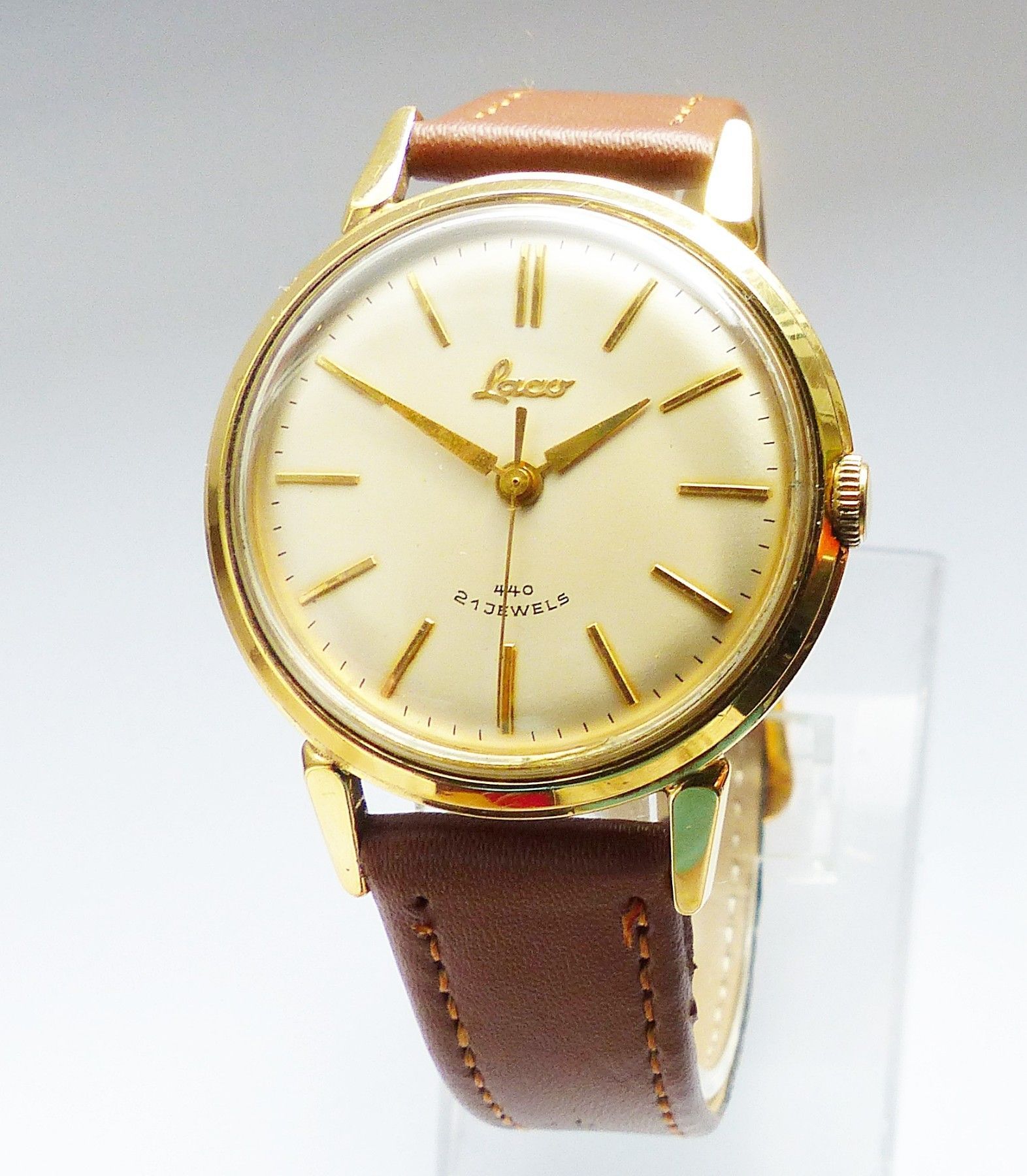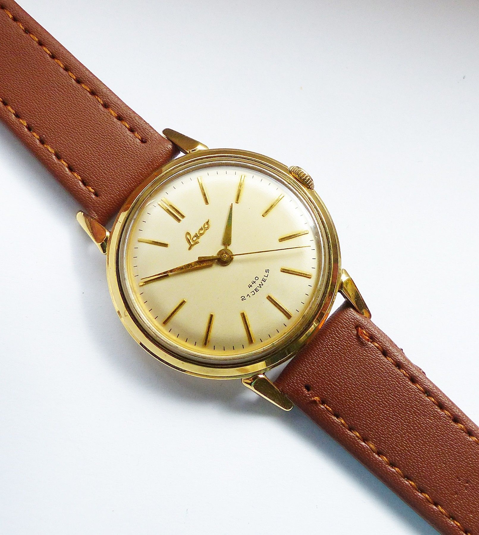 Schöne Laco Classic Herren Vintage Armbanduhr mit Goldenem Zifferblatt und aufgesetzten Goldenen Strichindizes, grosser Zentraler Sekunde und schönen Goldenen Lanzenzeigern. Die Uhr ist voll funktionsfähig und in Top Zustand s. Fotos Hersteller : Laco Deutschland Modell Classic Superflat. Uhrwerk : ... Mehr
