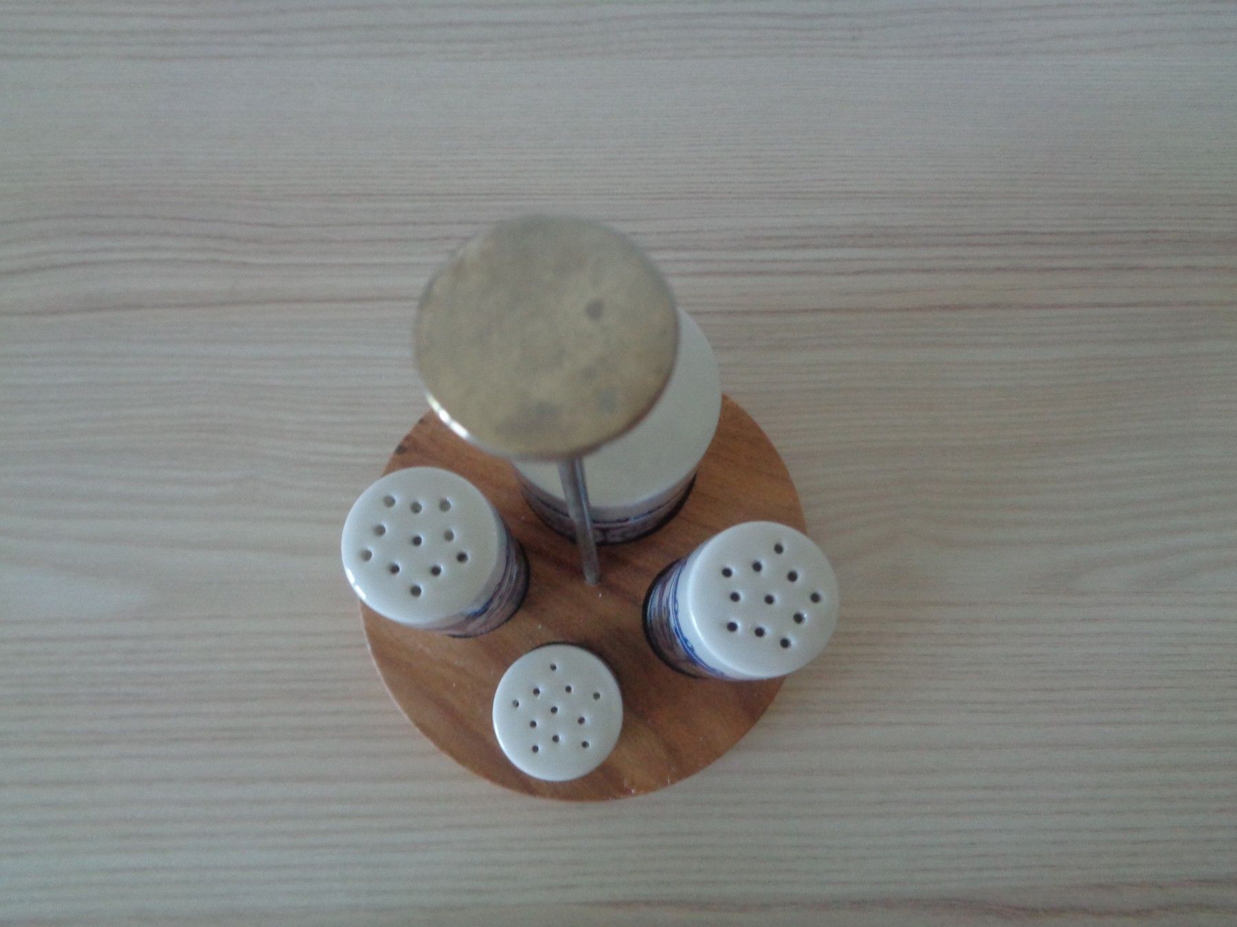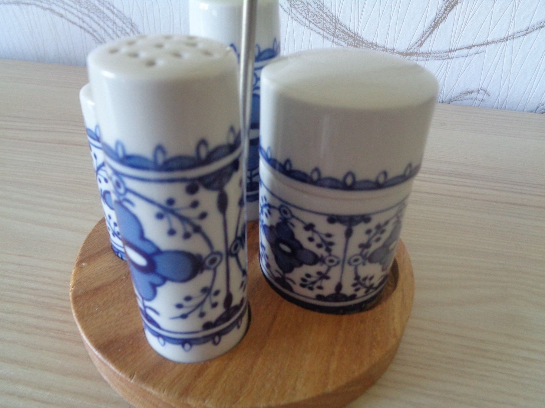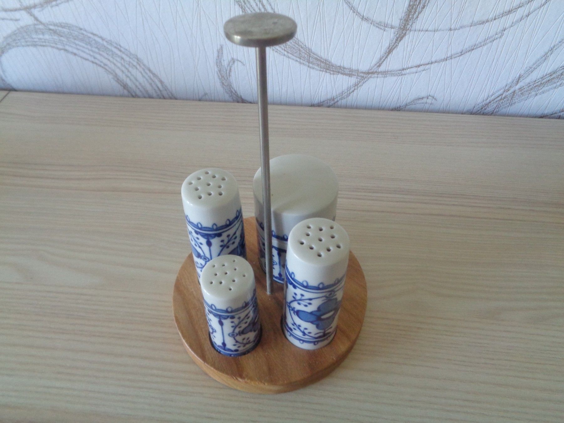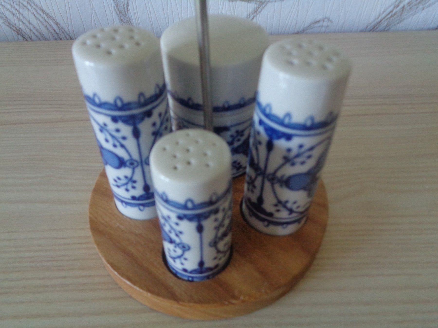 schöne Menage aus Porzellan- Salz, Pfeffer, Paprika, Senf- kobalt -Lichte