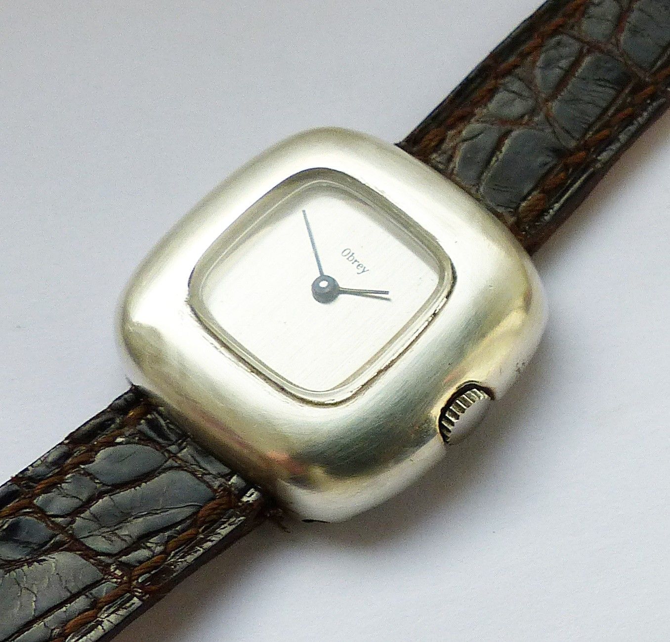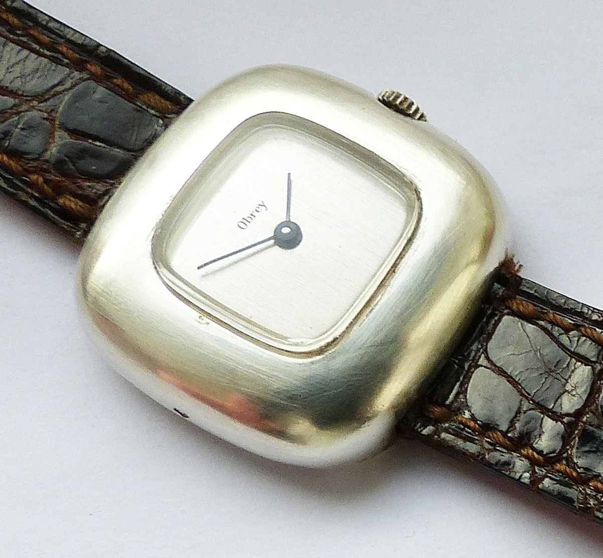 Exklusive und Schöne Obrey Paris Damen Luxus Armbanduhr in Massiv Silber mit Silbernem Zifferblatt im Sonnenschliff und Schwarzen Zeigern. Die Uhr ist voll funktionsfähig und in ungetragenen neuwertigen Zustand s. Fotos Uhrwerk : Mechanischer Handaufzug mit 17Jewels Maße Gehäuse : 28mm x 28mm x 8mm