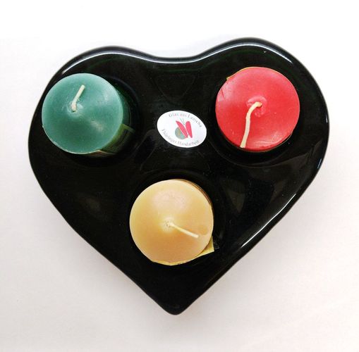 schöner alter schwerer Lauscha Kerzenhalter grünes Glas Herz mit 3 Kerzen, Handarbeit