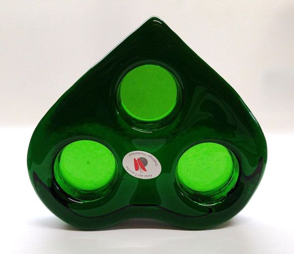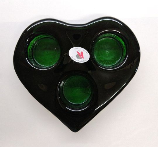 schöner alter schwerer Lauscha Kerzenhalter grünes Glas Herz mit 3 Kerzen, Handarbeit schöner alter schwerer Lauscha Waldglas Kerzenhalter grünes Glas Herz mit 3 Kerzen, Thüringer Handarbeit Die Höhe des Glas Herz beträgt 3 cm, der Durchmesser jeweils an den breitesten Stellen gemessen beträgt 15 cm