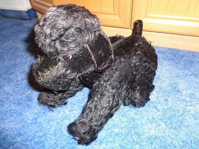 Biete in dieser Auktion an: schöner alter schwarzer Pudel- Stoffhund mit Holzwolle ausgestopft bewegliche Gelenke Höhe ca 26cm Breite ca 32cm Ich vermute , das es sich um eine Steiff-Figur handelt. Ist aber nicht gekennzeichnet-kein Label, kein Knopf Da ich viele weitere Artikel im Angebot habe, sch