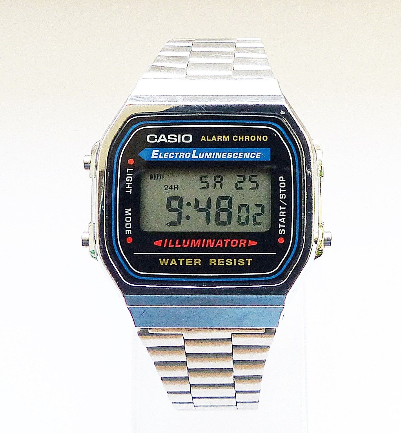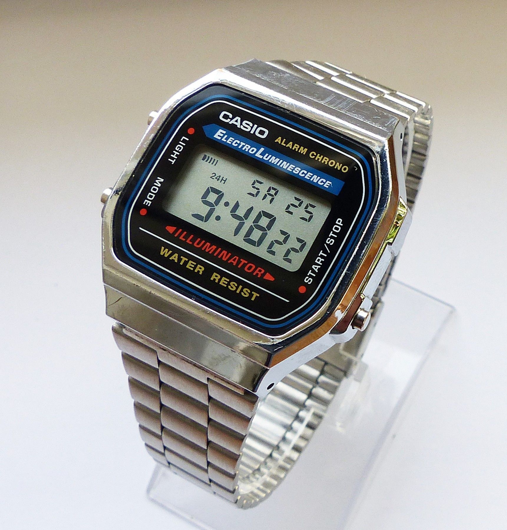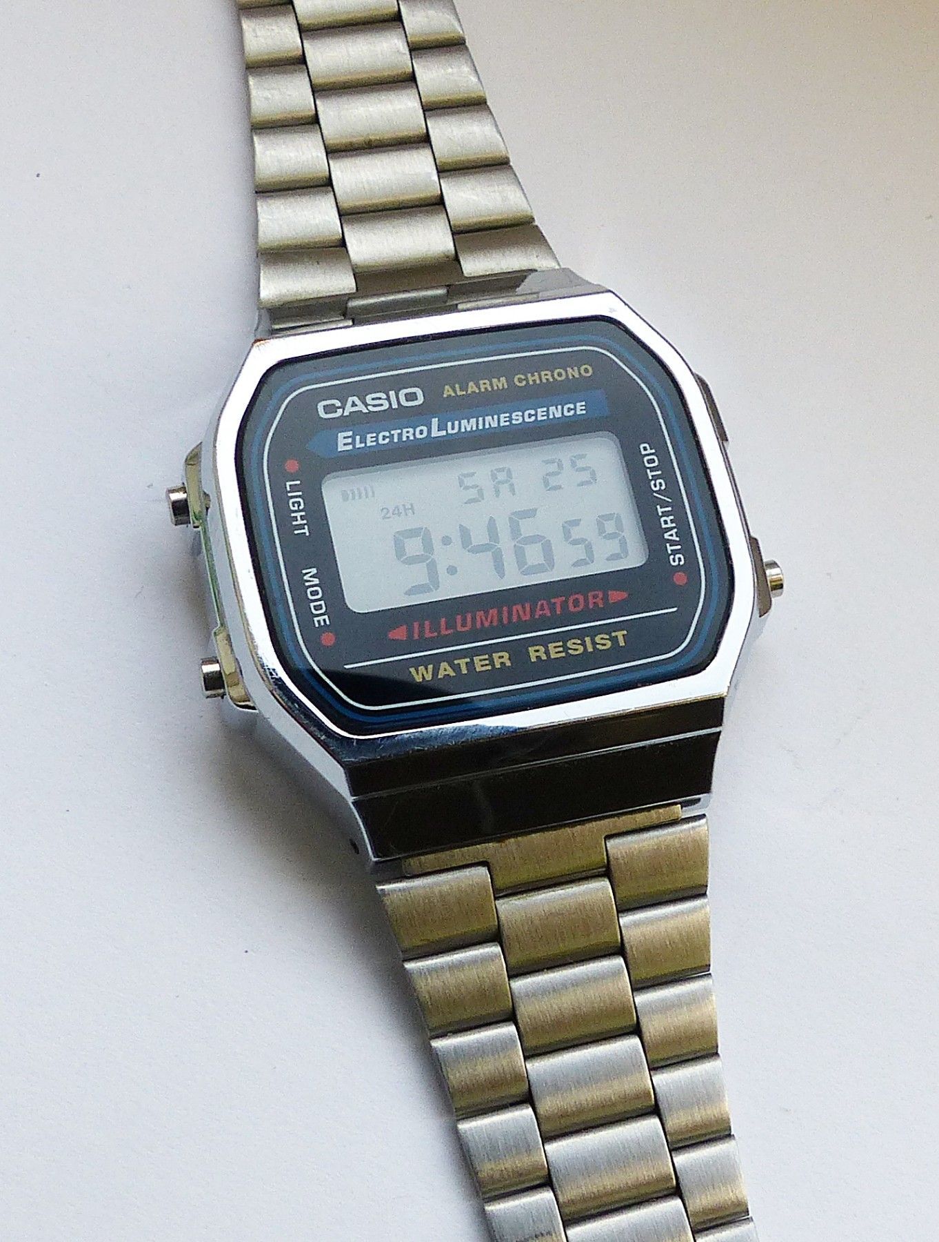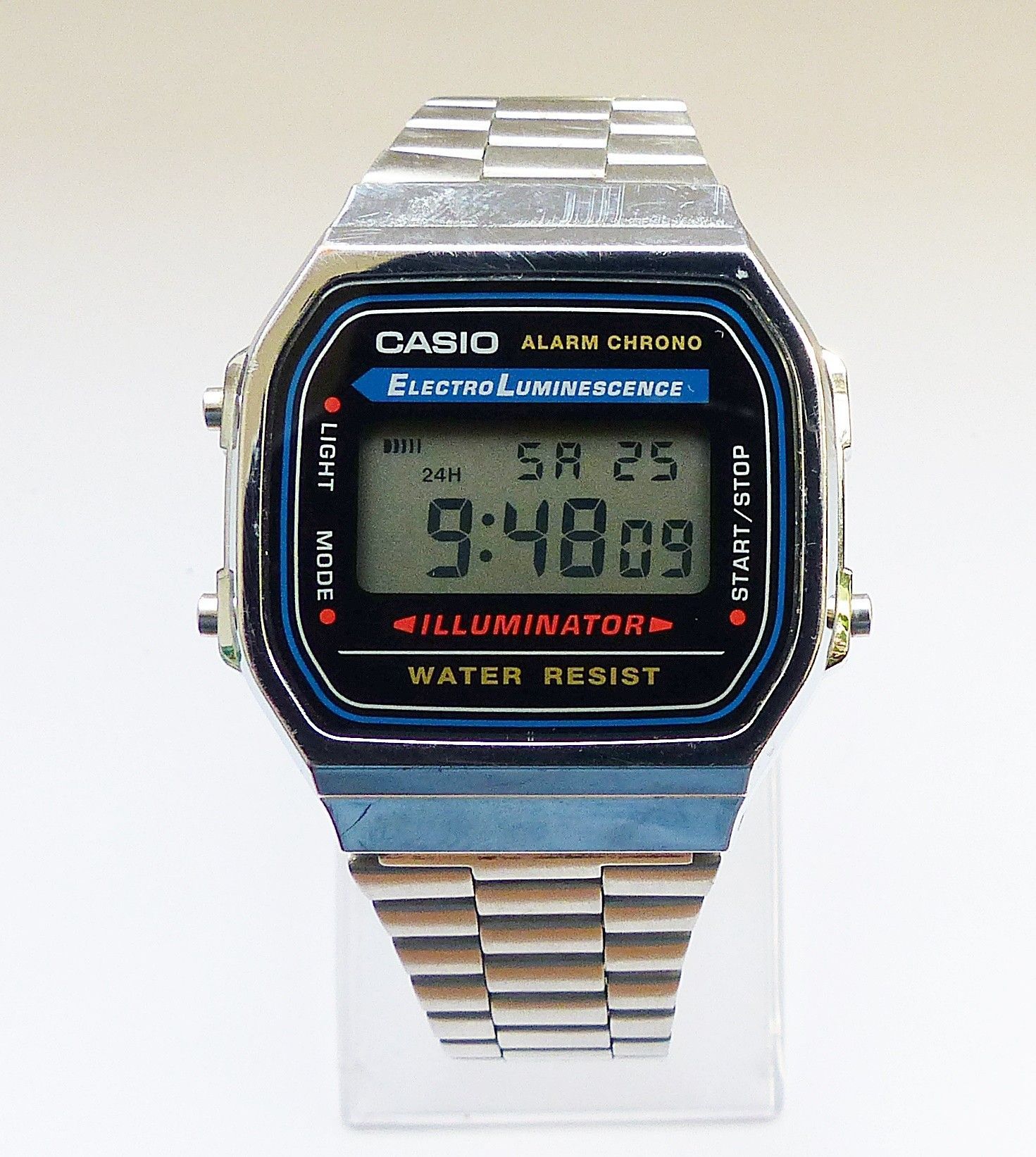 Schöner Casio Illuminator Alarm Chronograph Multifunktionsuhr, mit Digitalem LCD Zifferblatt und 3 Funktionsdrückern. Die Uhr ist voll funktionsfähig und in Top Zustand s. Fotos Hersteller : Casio Modell Illuminator Alarm Chronograph. Uhrwerk : Quarz im Batteriebetrieb. Maße Gehäuse : 36mm x 10mm oh... Mehr