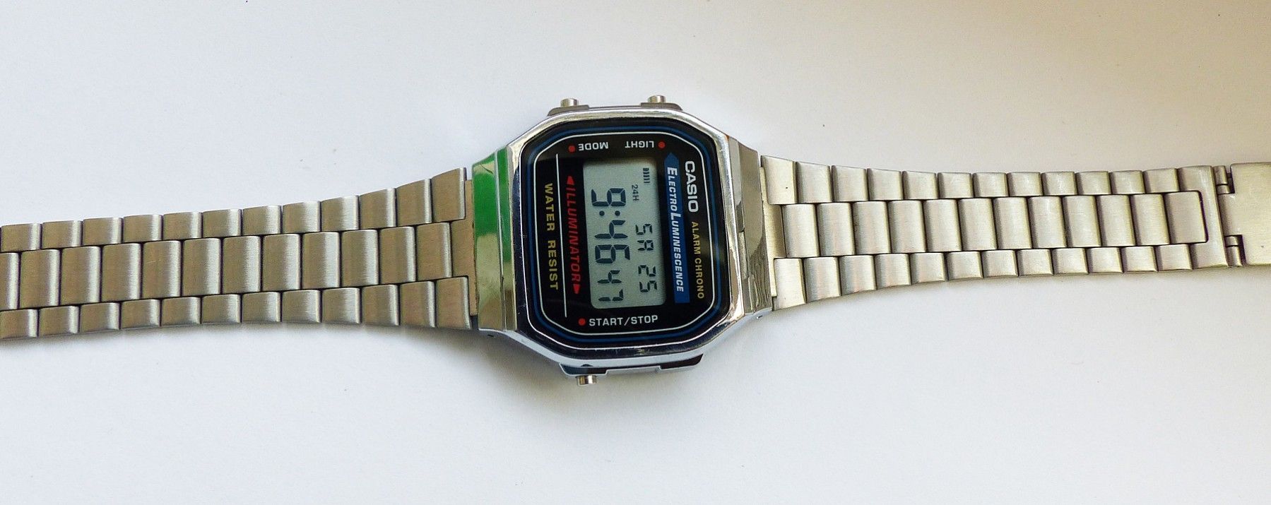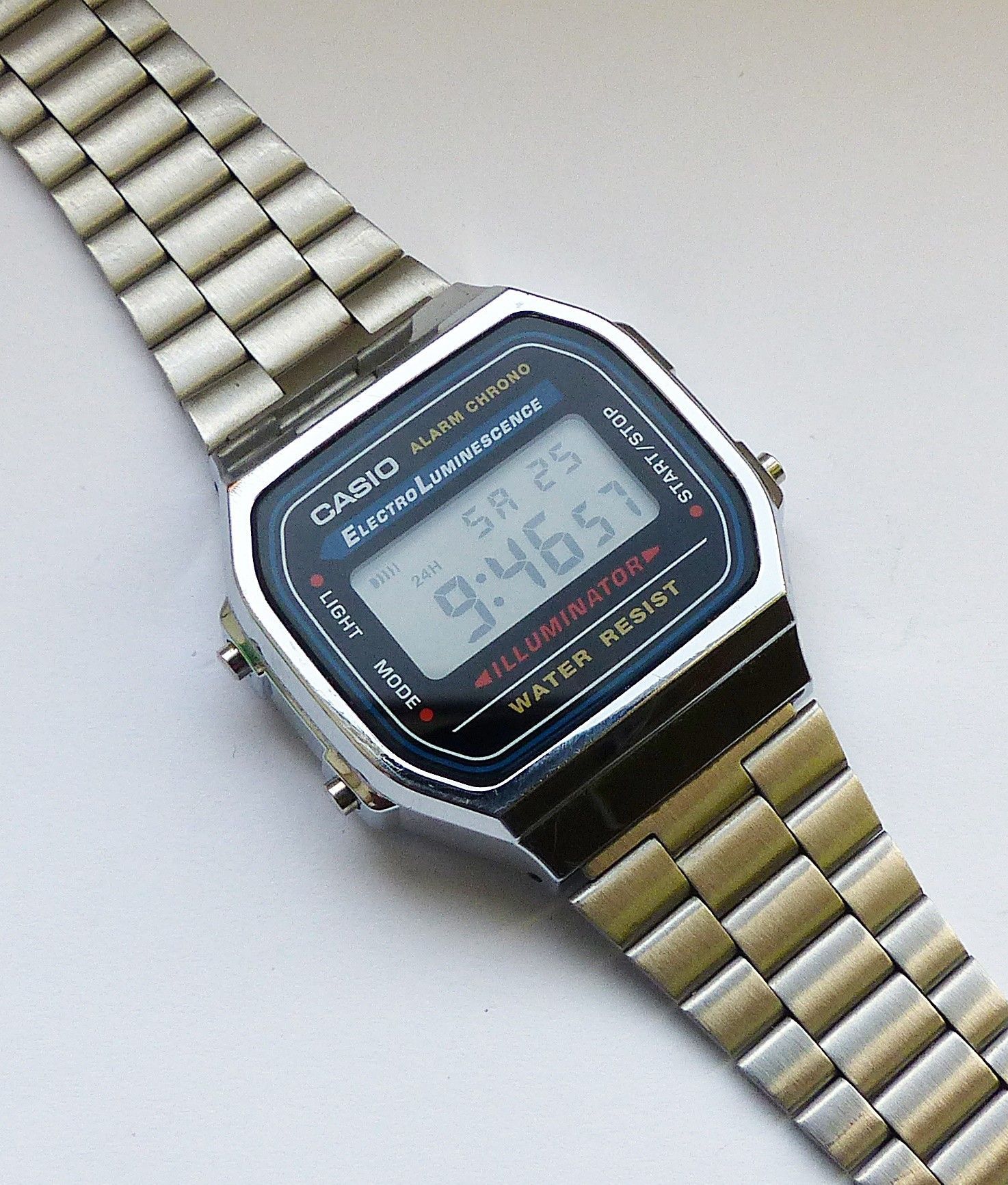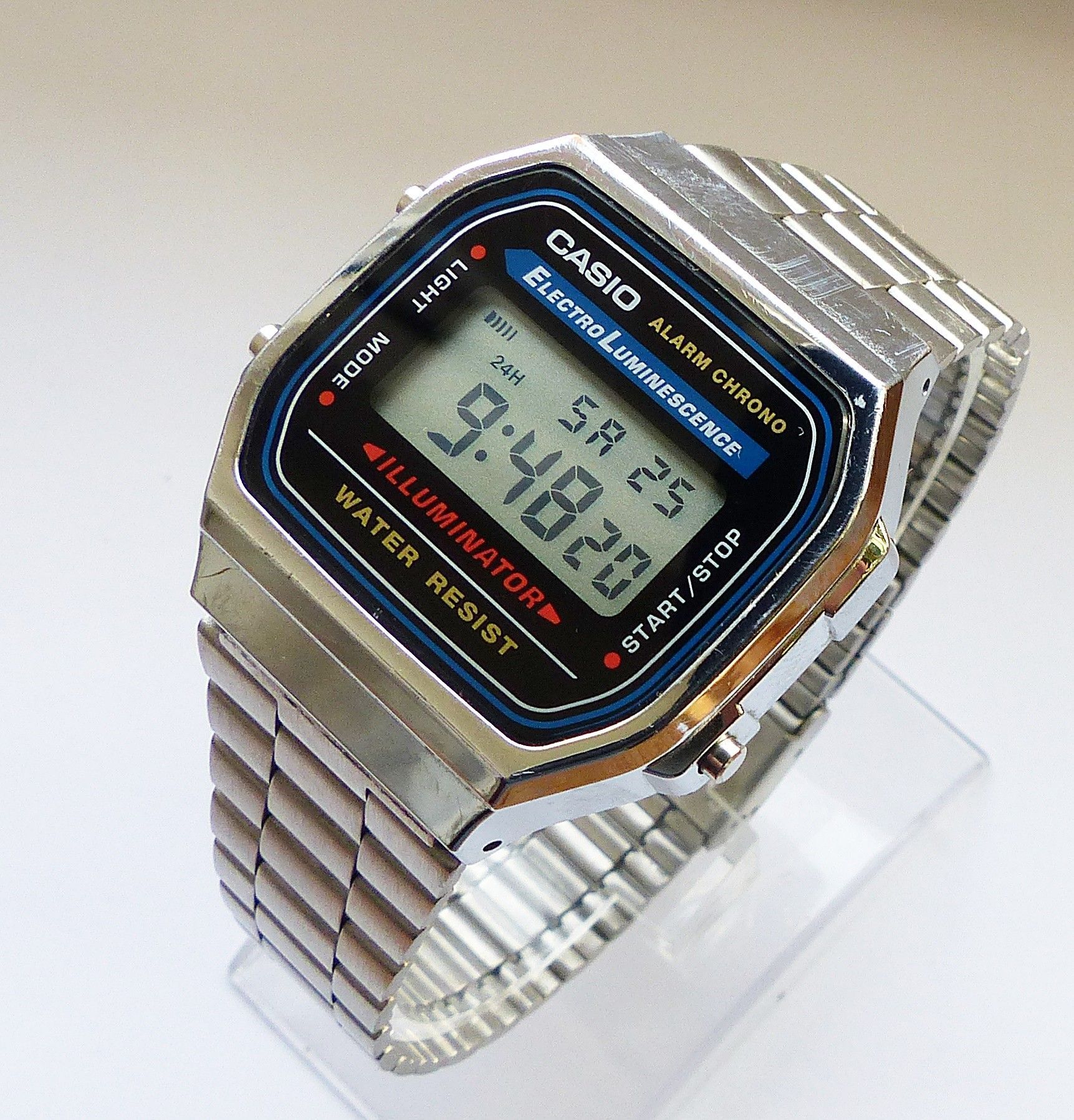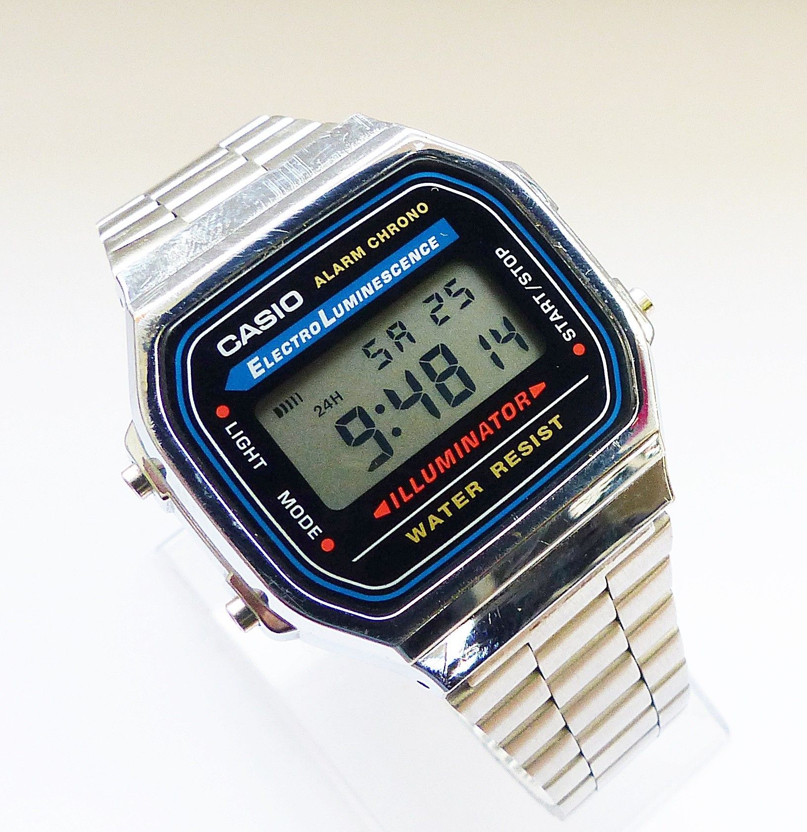 Schöner Casio Illuminator Alarm Chronograph Multifunktionsuhr, mit Digitalem LCD Zifferblatt und 3 Funktionsdrückern. Die Uhr ist voll funktionsfähig und in Top Zustand s. Fotos Hersteller : Casio Modell Illuminator Alarm Chronograph. Uhrwerk : Quarz im Batteriebetrieb. Maße Gehäuse : 36mm x 10mm oh... Mehr