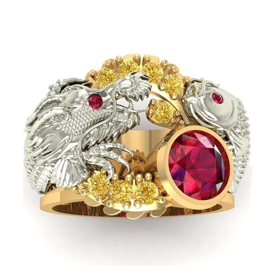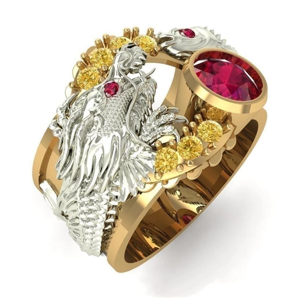 Schöner Drachen Ring 2-farbig für Männer