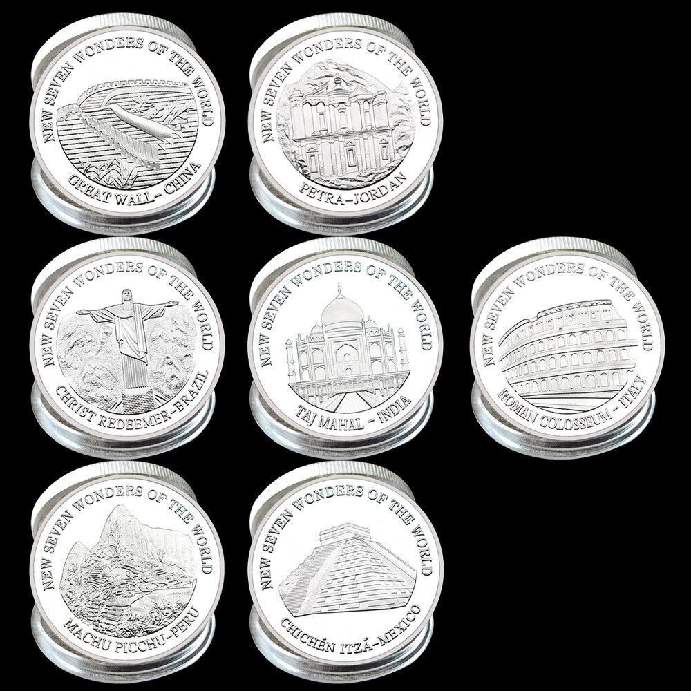 Schöner Medaillen Satz der 7 Weltwunder der Erde, Neusilber (WW280226)