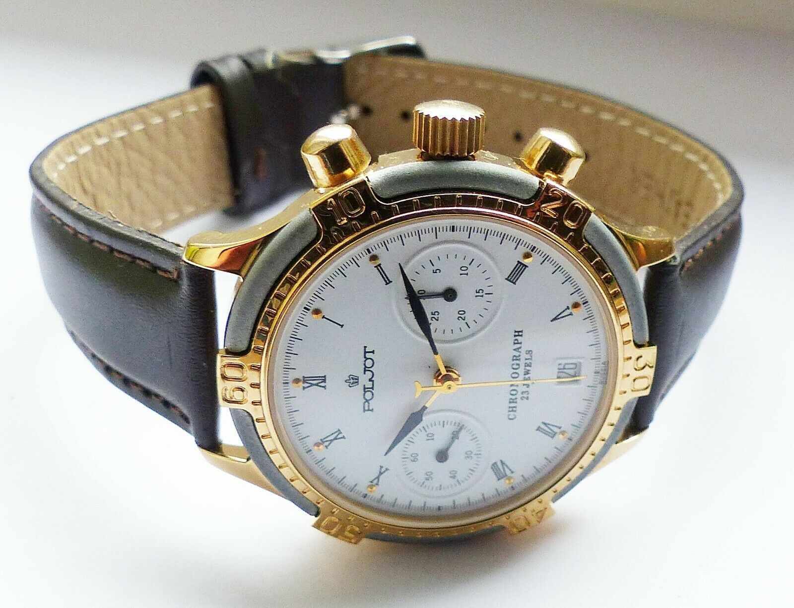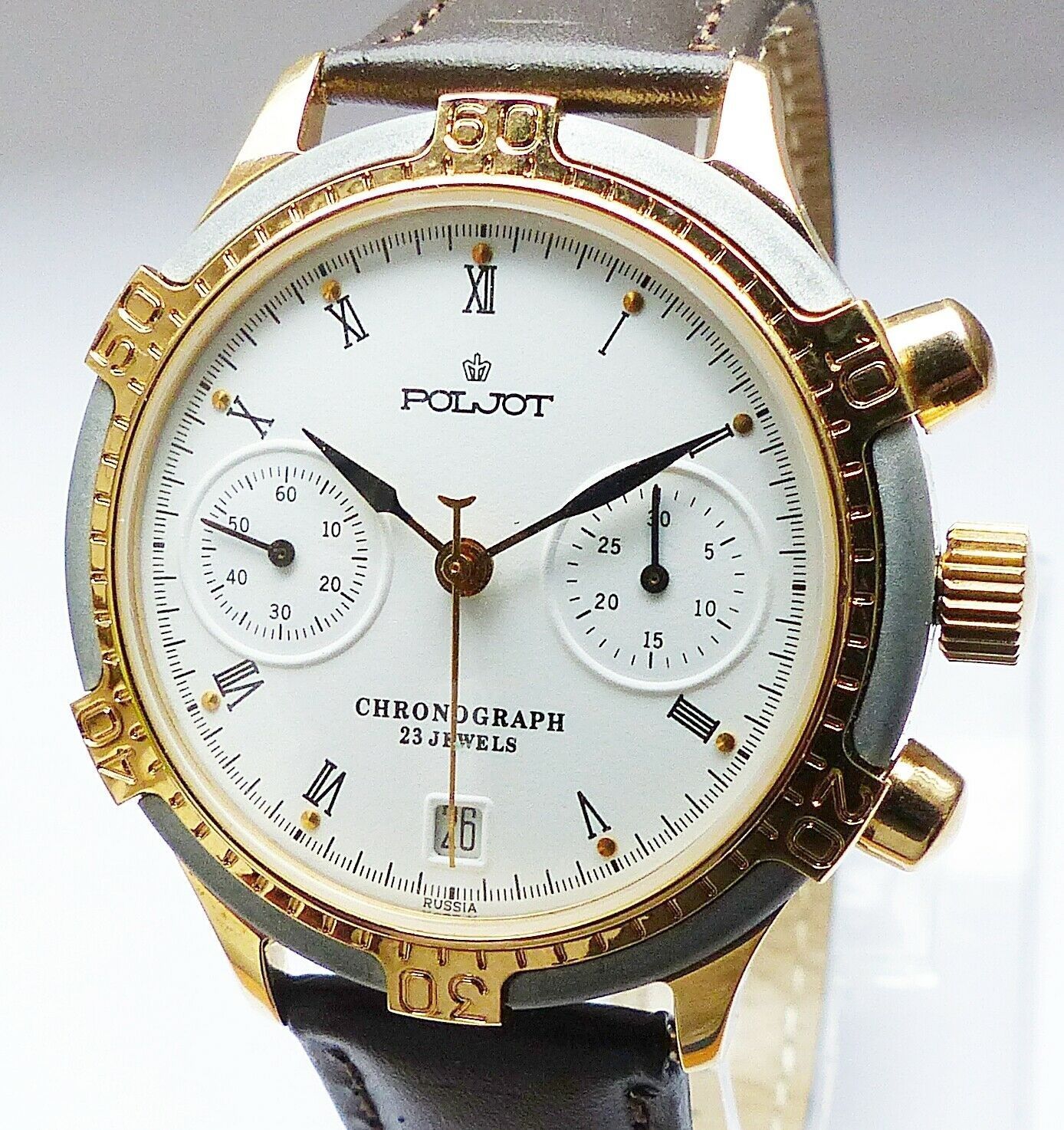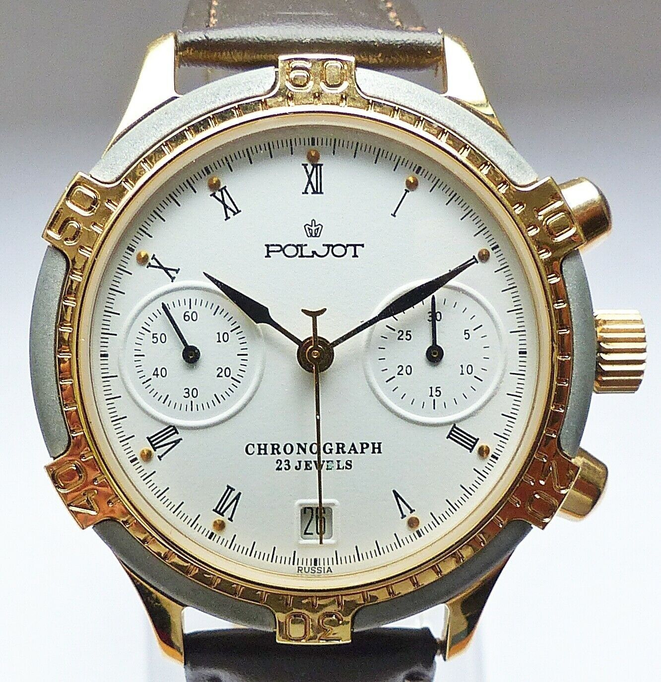 Schöner Poljot Nicolai Chronograph mit Datum 23Jewels Herren Vintage Armbanduhr