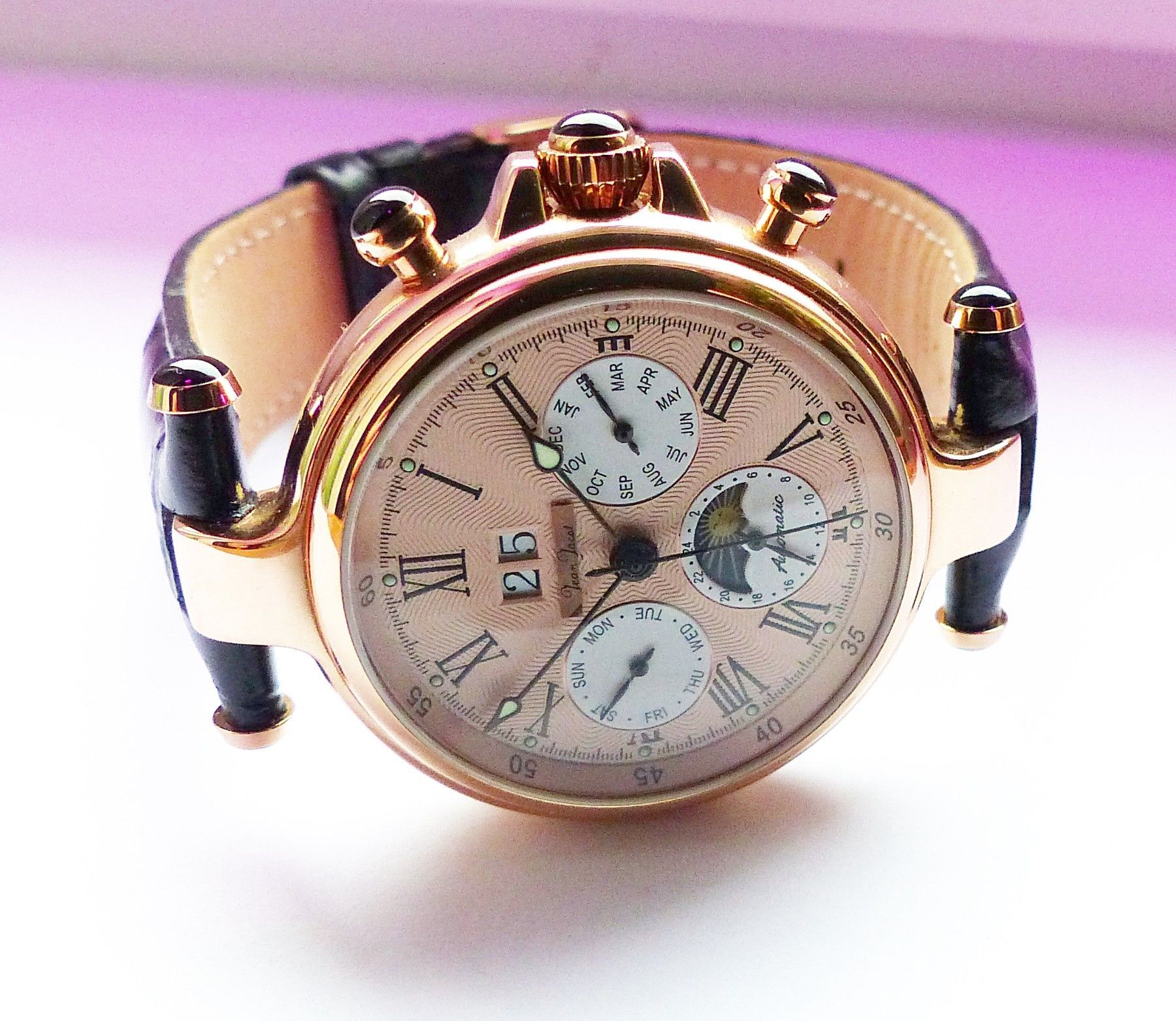 Schöner und seltener Jean Jacot Automatic Datograoh 25Jewels Herren Armbanduhr Neu