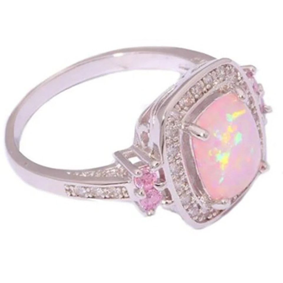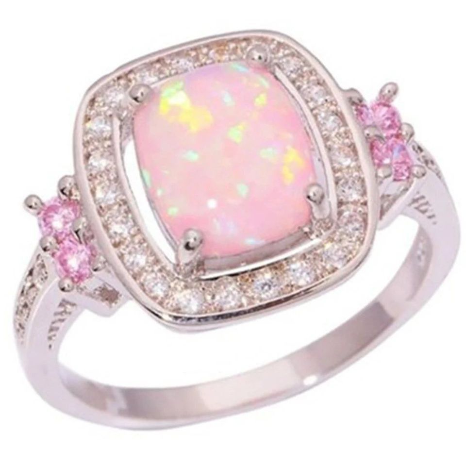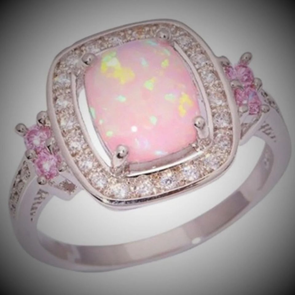 Schöner Zirkonia und rosa Lab Opal Damen Ring