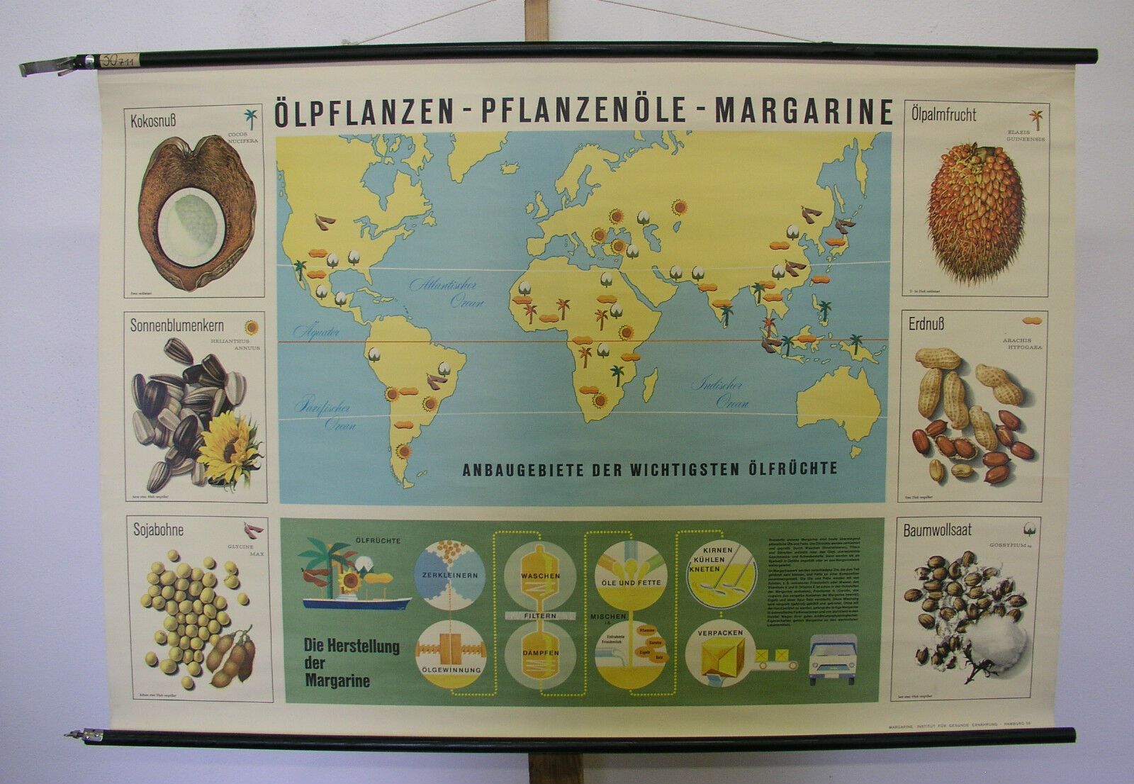 schönes altes Wandbild Pflanzenöle Kokos Sonnenblumenöl 119x82cm vintage 1962 Siehe in der Liste unter NrL316 Ölpflanzen - Pflanzenöle - Margarine (SE161) Detailbilder von anderen verschiedenen Karten dieses Typs Kartensammler (allumfassend...speziell deutsche bezahlbare Karten ab 1900) verkauft hie