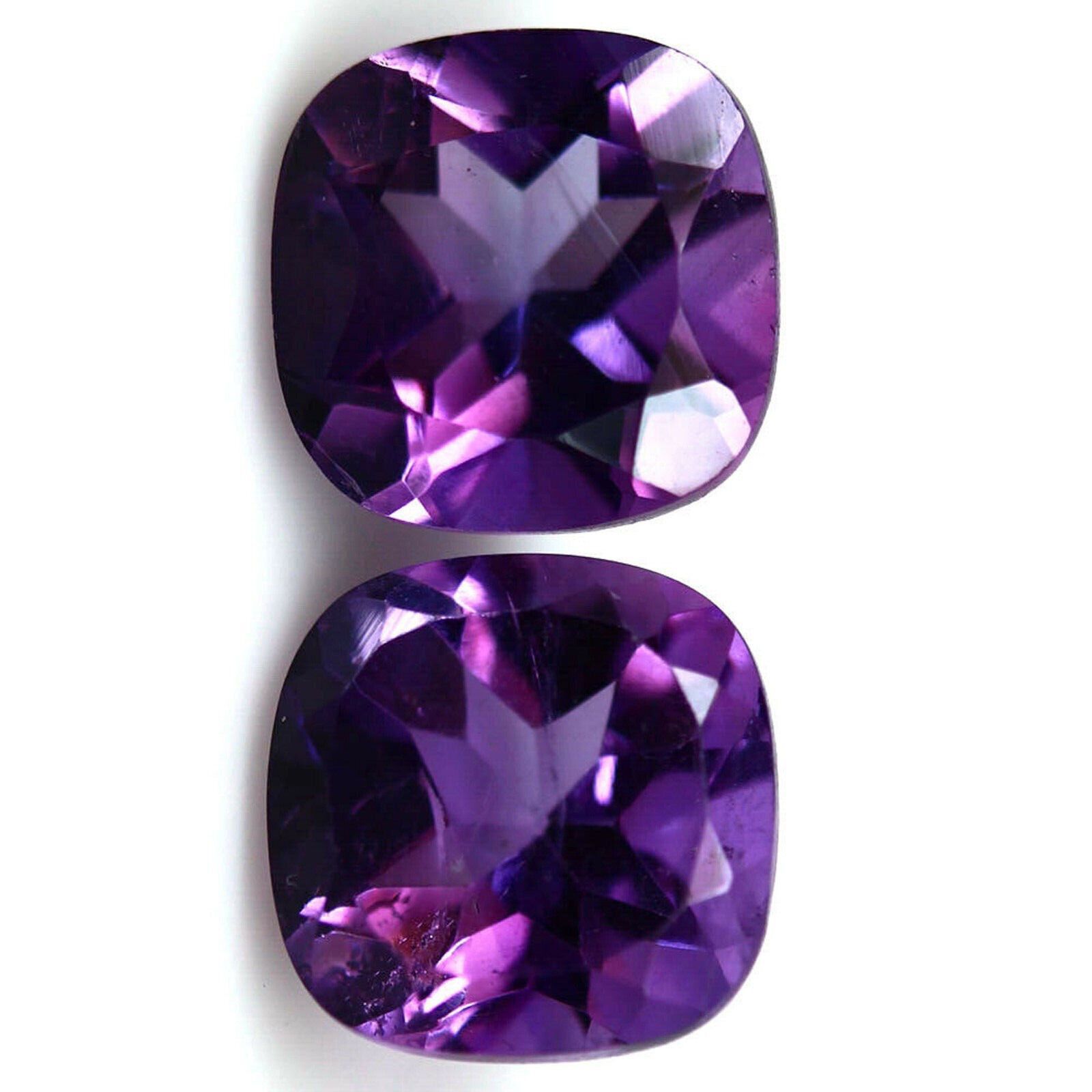 Natürliches Paar Brasilien Kissen Amethyste 2 Stück ca. 2 Carat Sie bieten nicht auf die abgebildeten Steine, die sind nur als Muster gedacht Härte: 7 Größen: 7 mm Schliff: Kissen Cushion Behandlung erhitzt Herkunft: Brasilien Kleine Farbabweichungen können jederzeit durch die Vergrößerung der Bilde