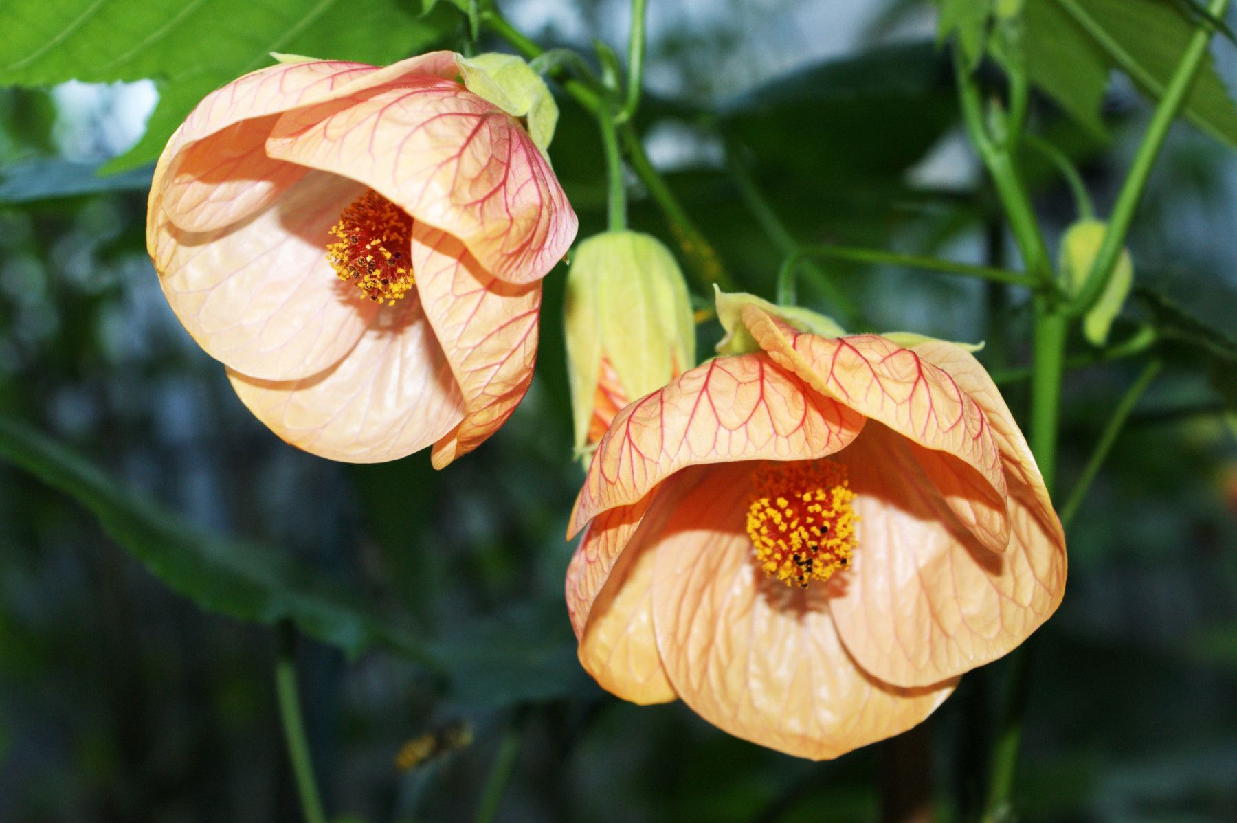 Schönmalve "Apricot Paradise", große Blüten in Apricot, Abutilon (Engelstrompeten)