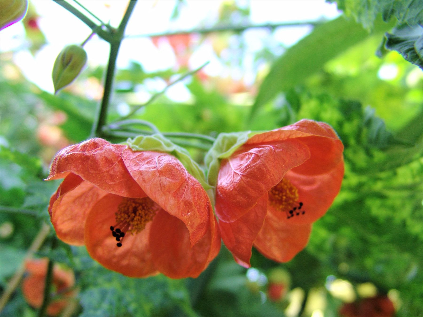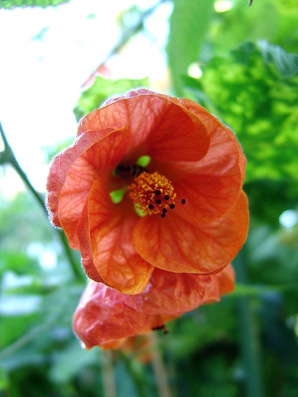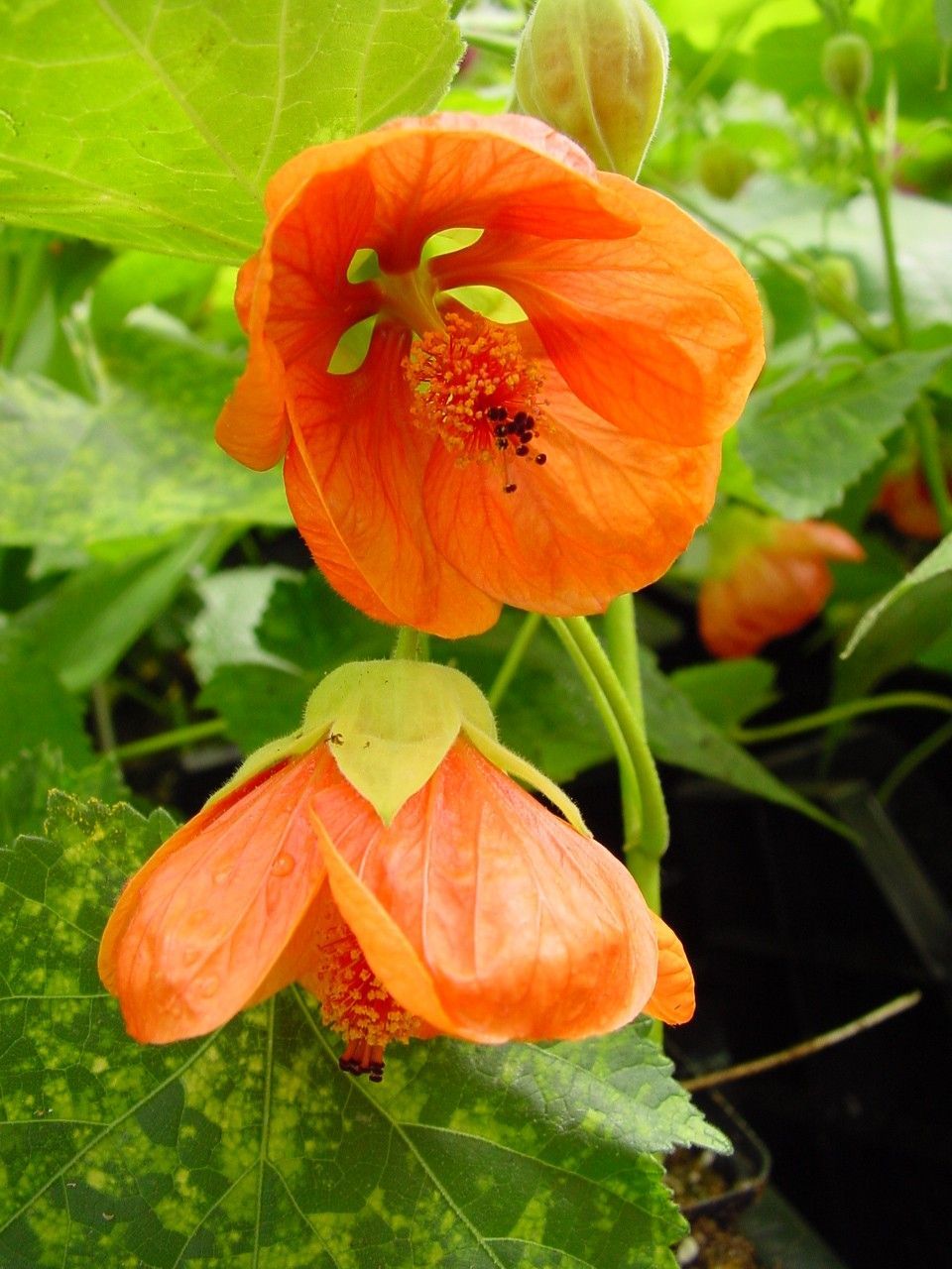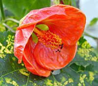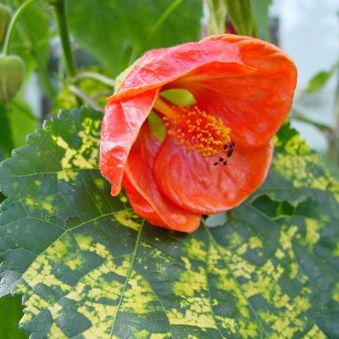 Schönmalve "Pictum Orange" orangefarbige Blüten und gelb-grüne Blätter (Datura Rose)