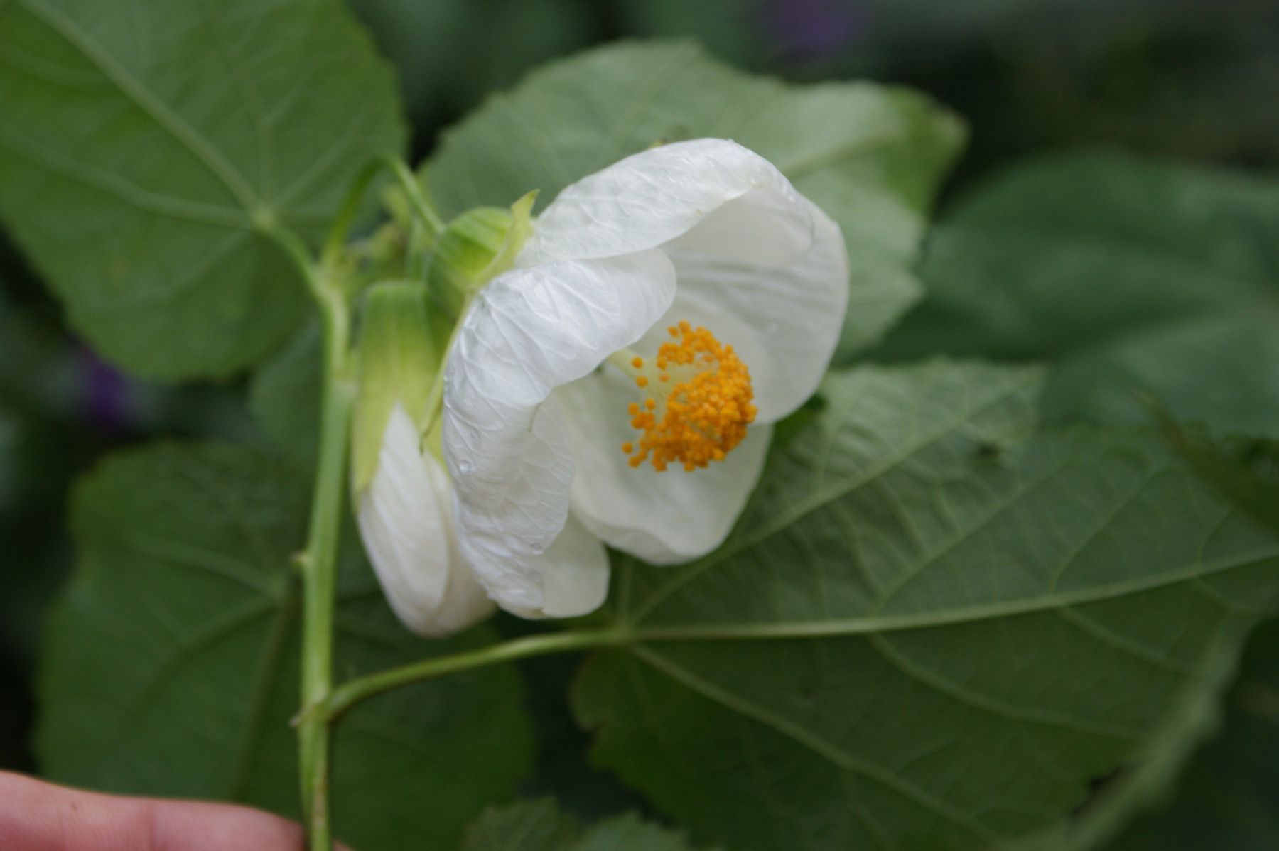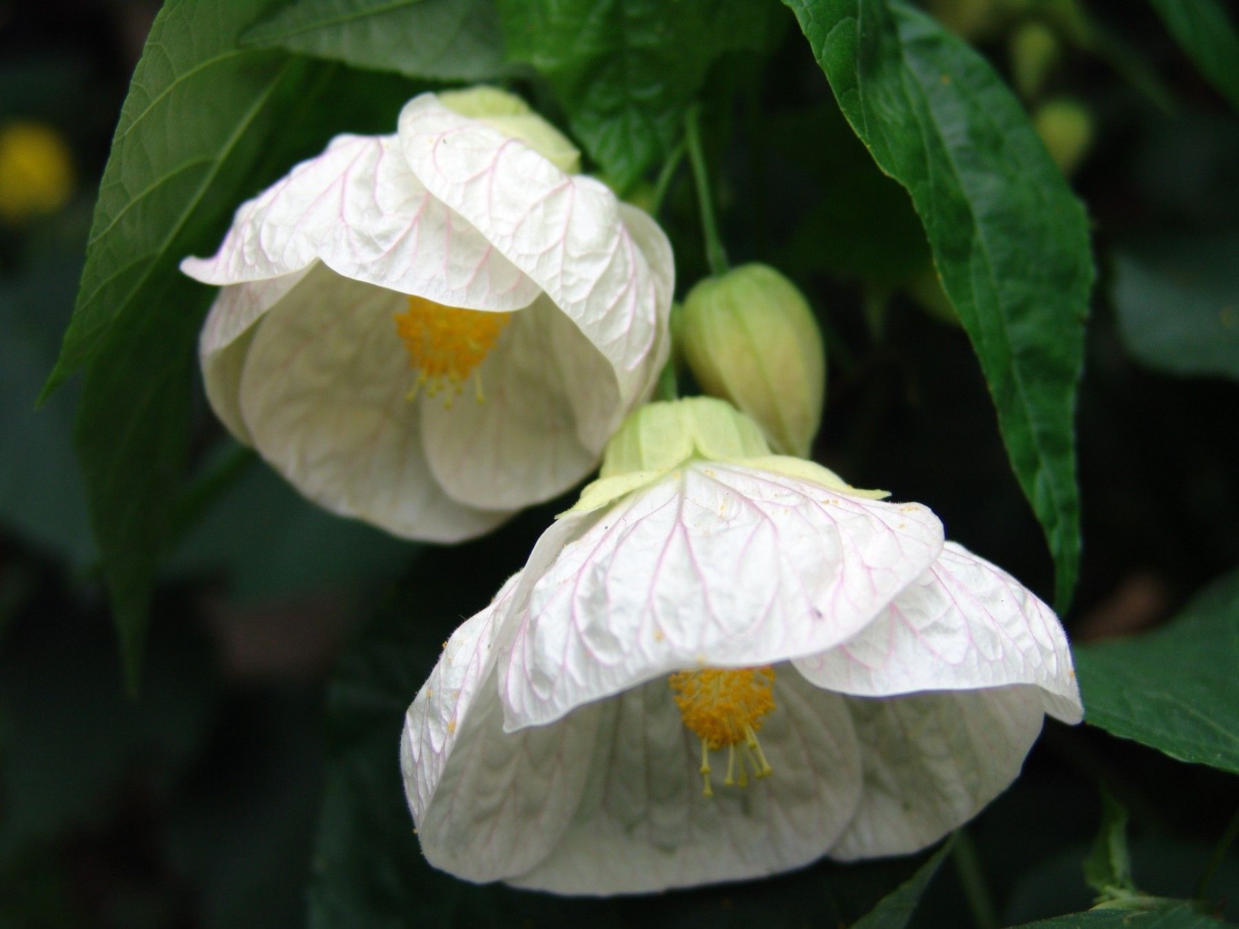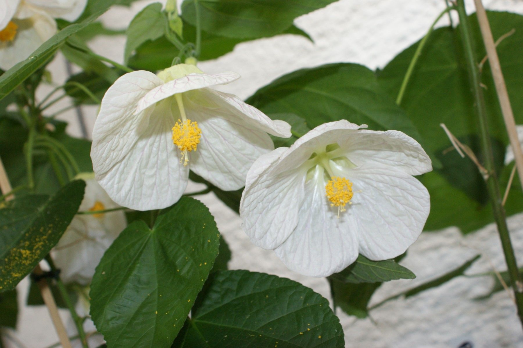 Schönmalve "Schneeweißchen", strahlend weiße Blüten, Abutilon (Engelstrompeten Rose )