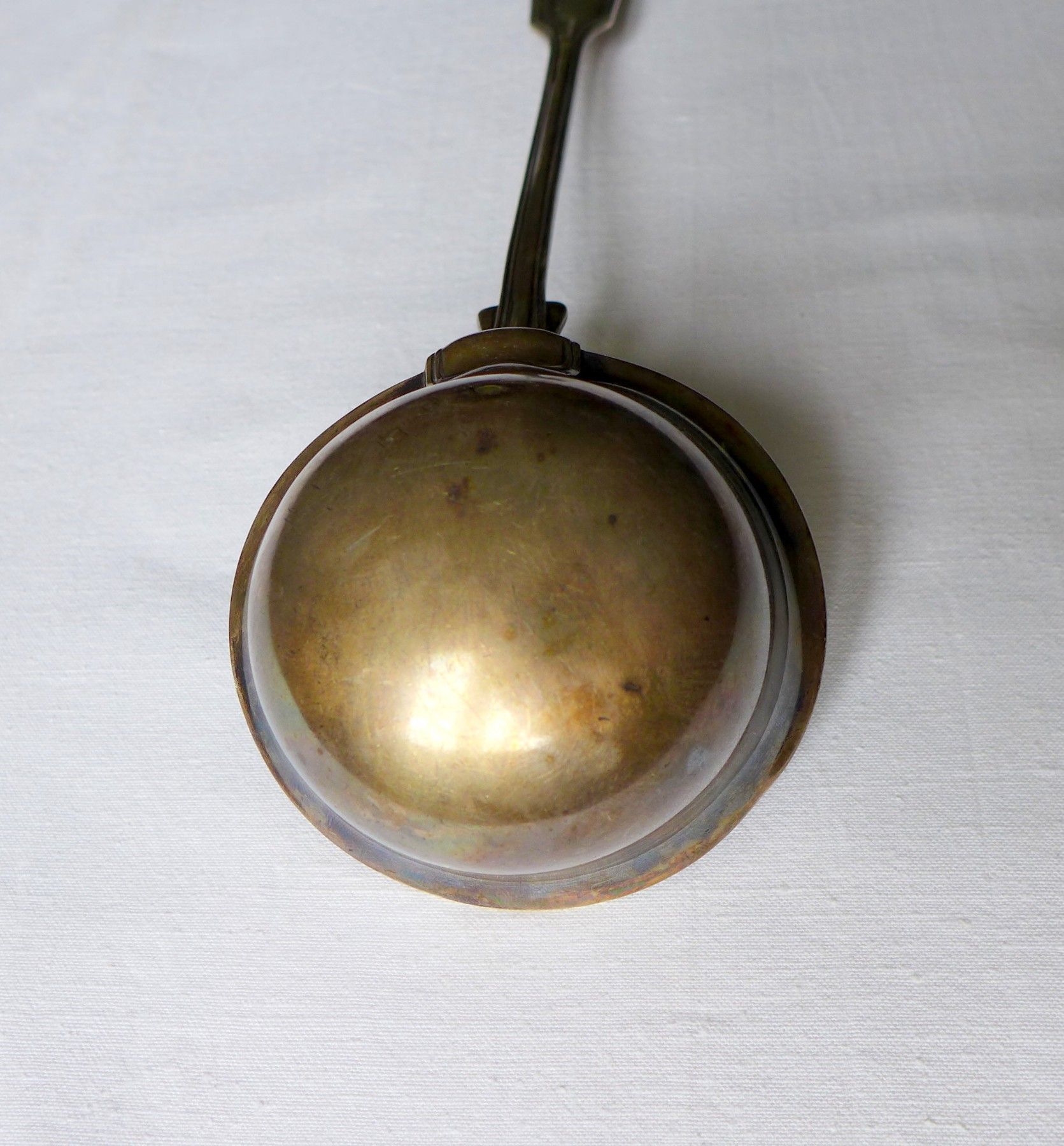 gebrauchter Zustand mit Gebrauchsspuren siehe Fotos , sie erhalten das abgebildete Konvolut , leichte Randdelle siehe Foto , Länge der Kelle ca. 33 cm , ungeputzter ungereinigter Fundzustand , H 200 , original keine Kopie , Das die Fotos sind Bestandteil der Artikelbeschreibung ! Alle Namen und Ware