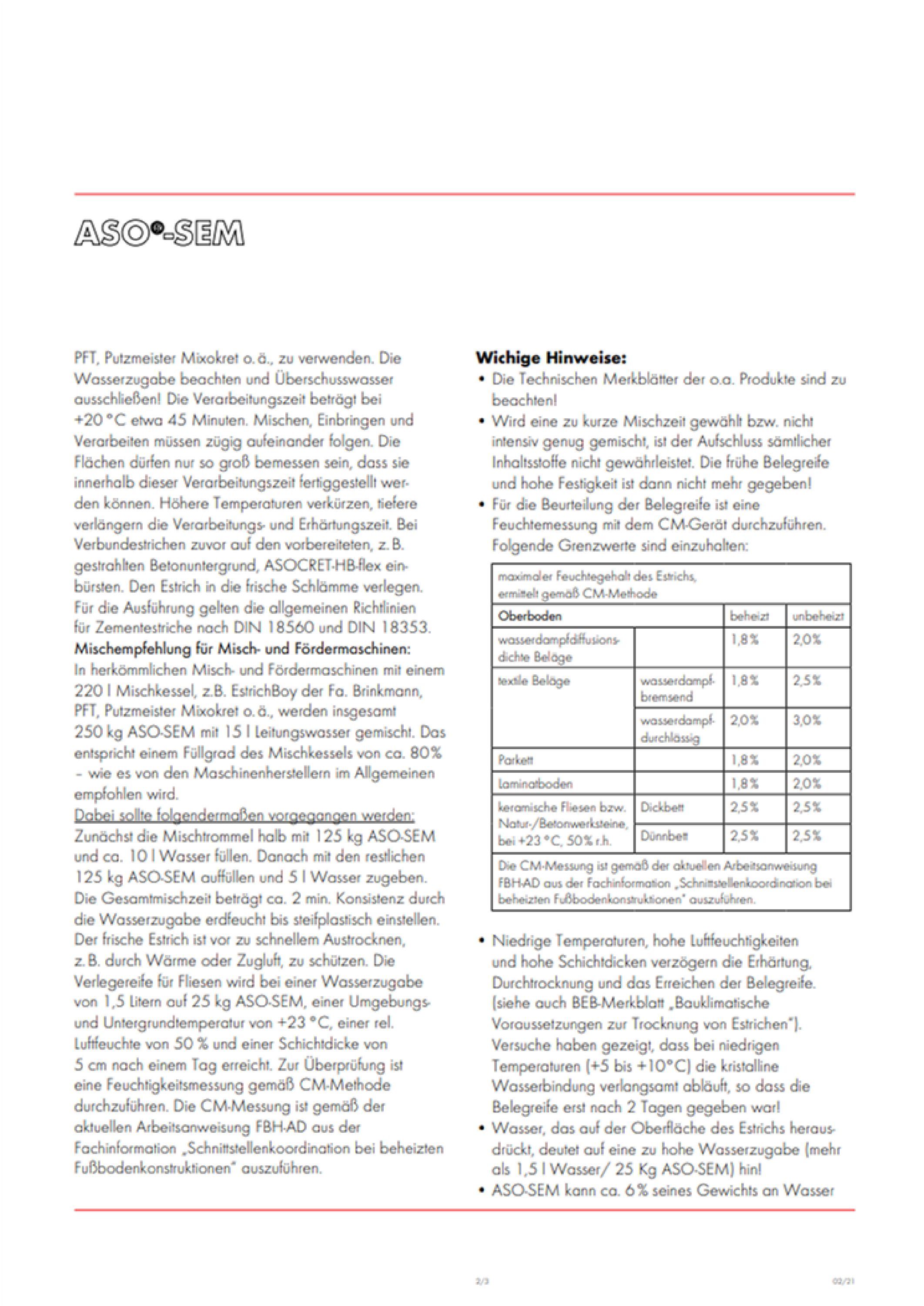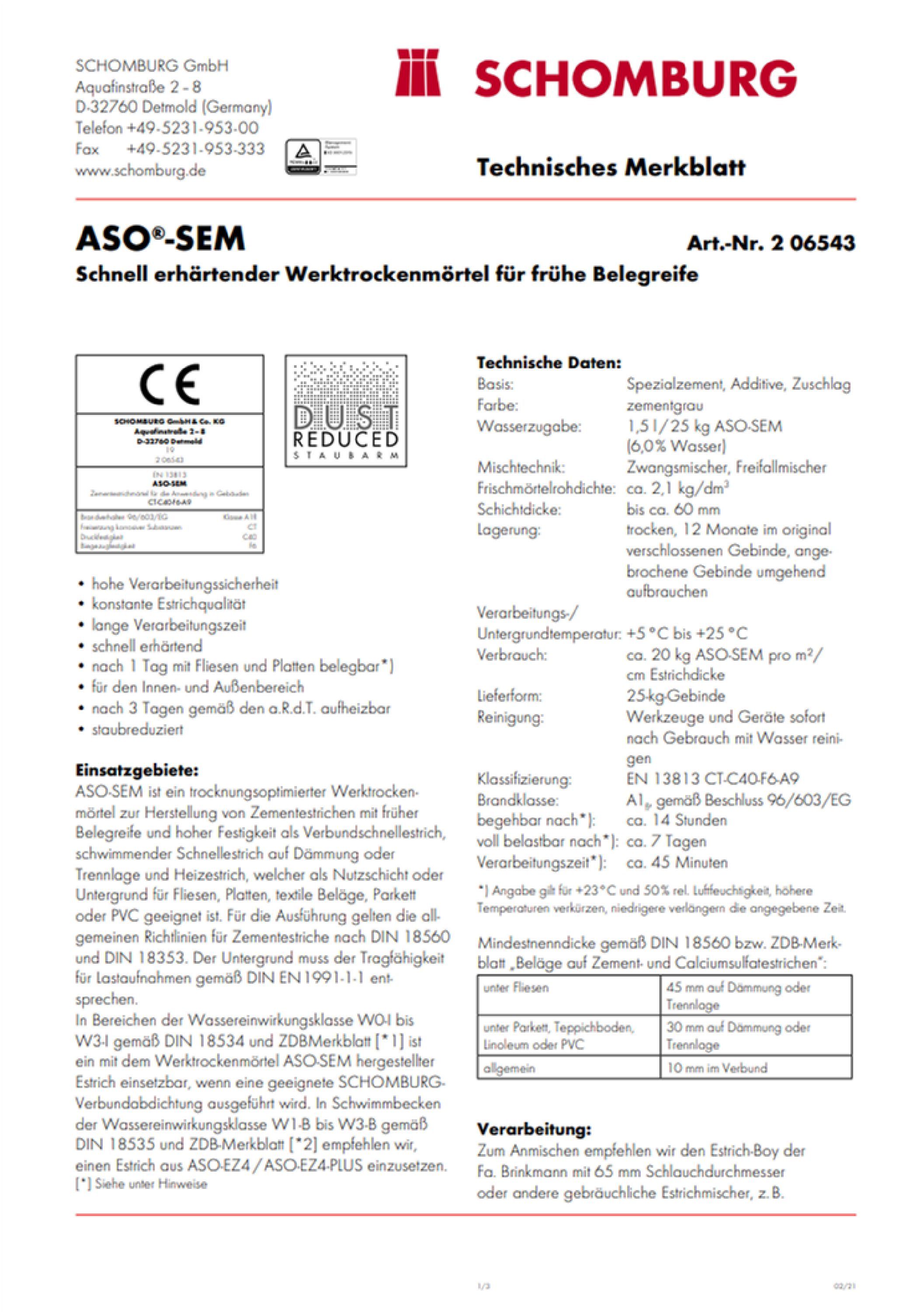 Schomburg ASO-SEM Schnellestrich Estrichmörtel Rapid Verbundestrich Mörtel Estrich