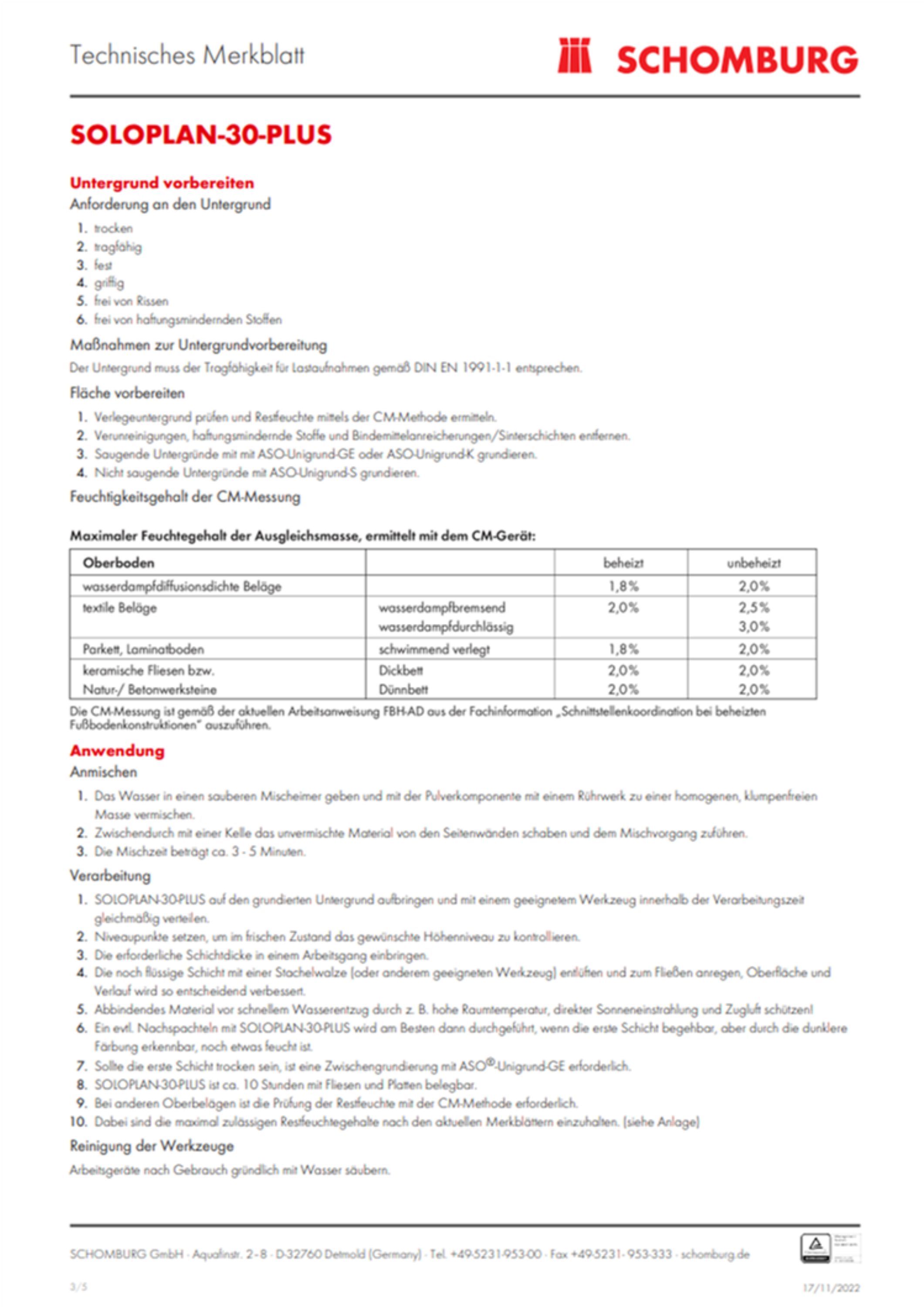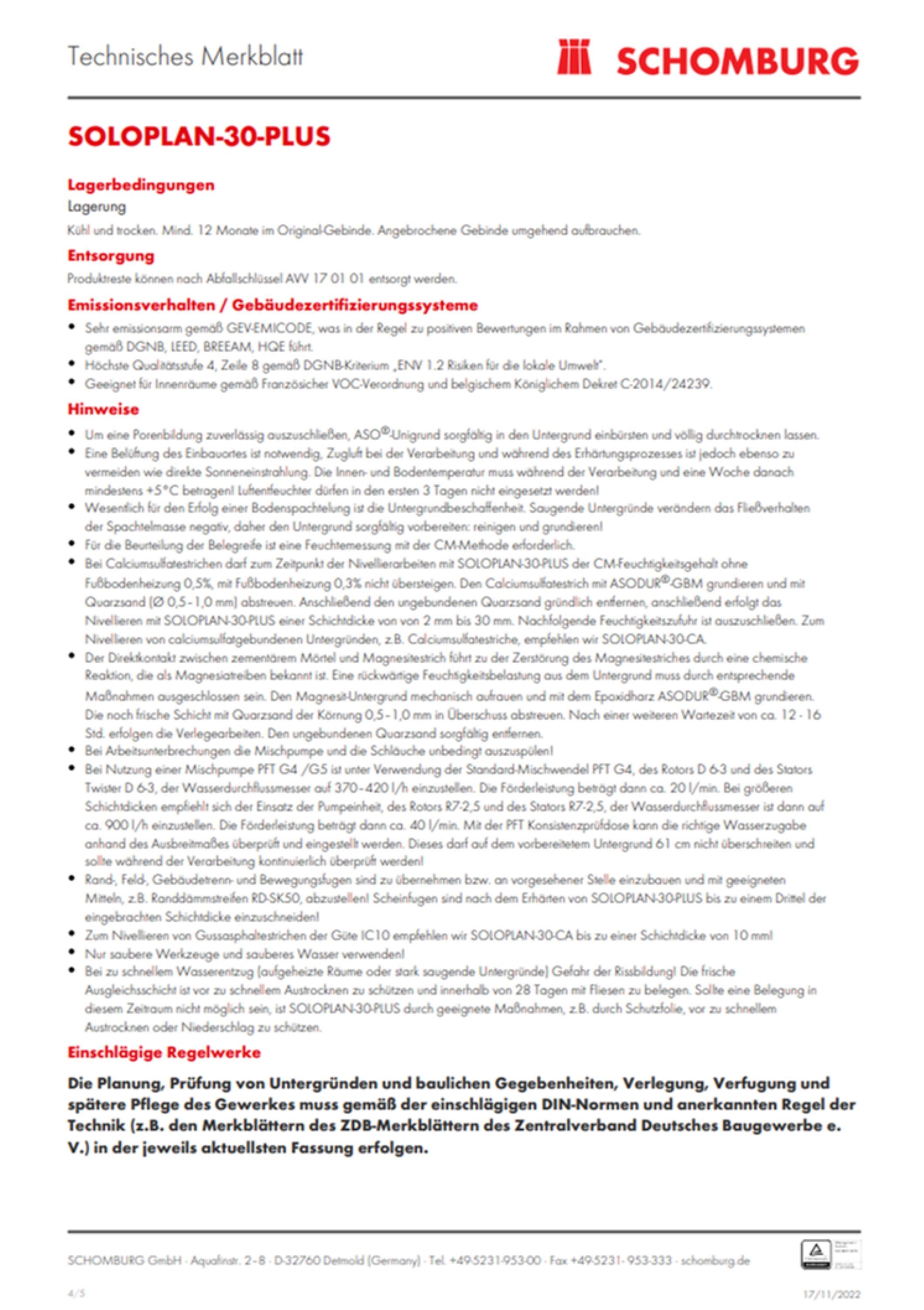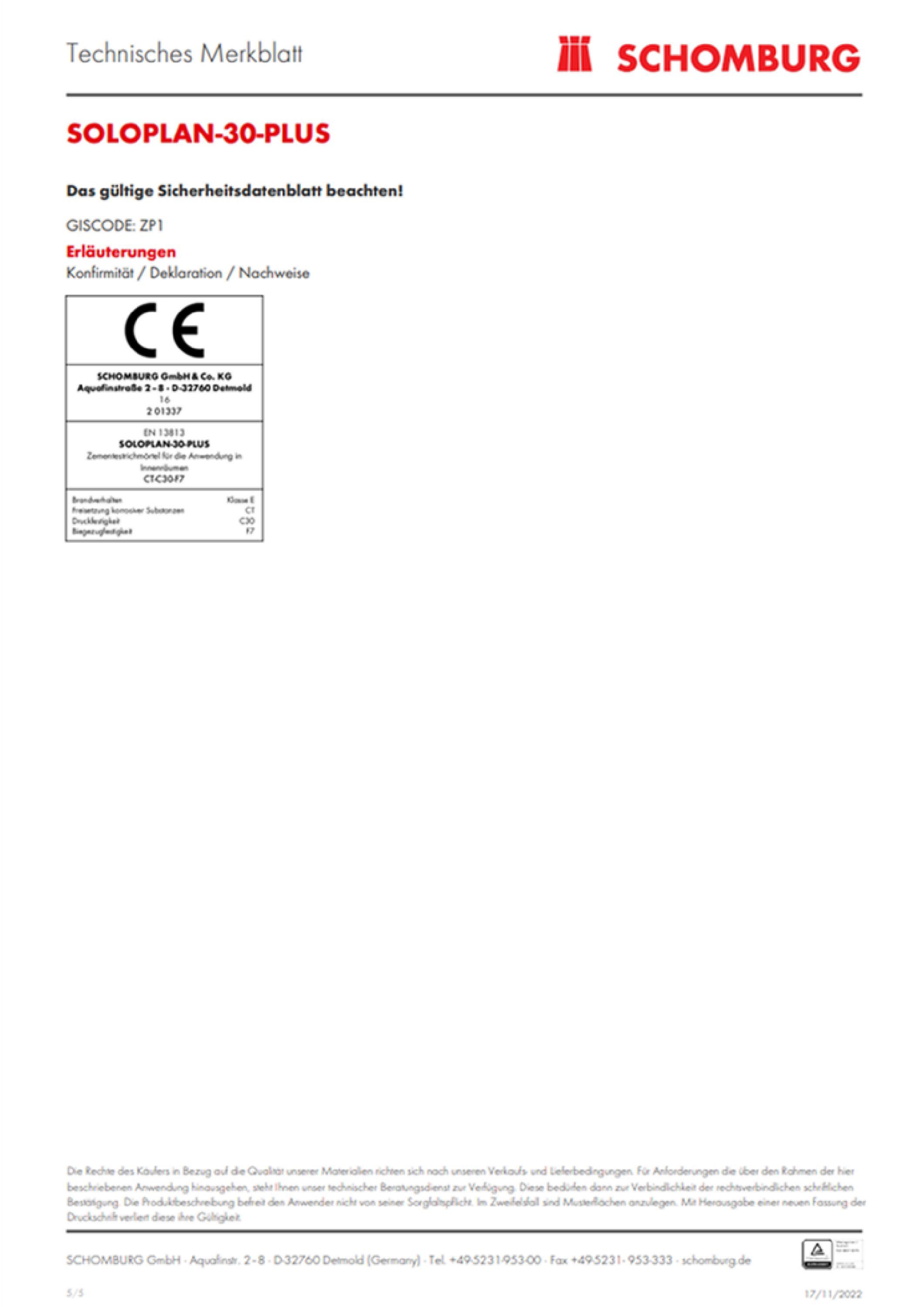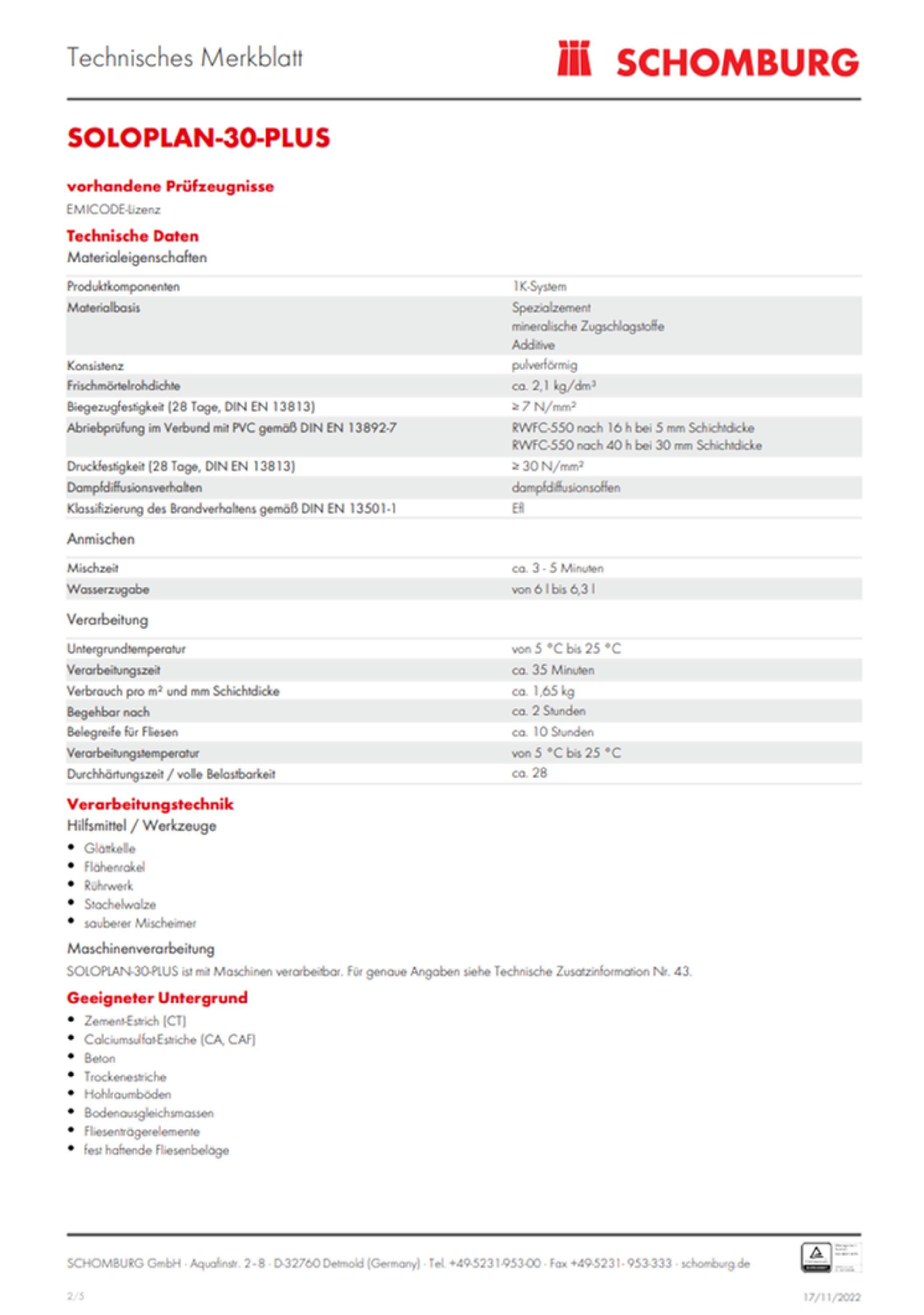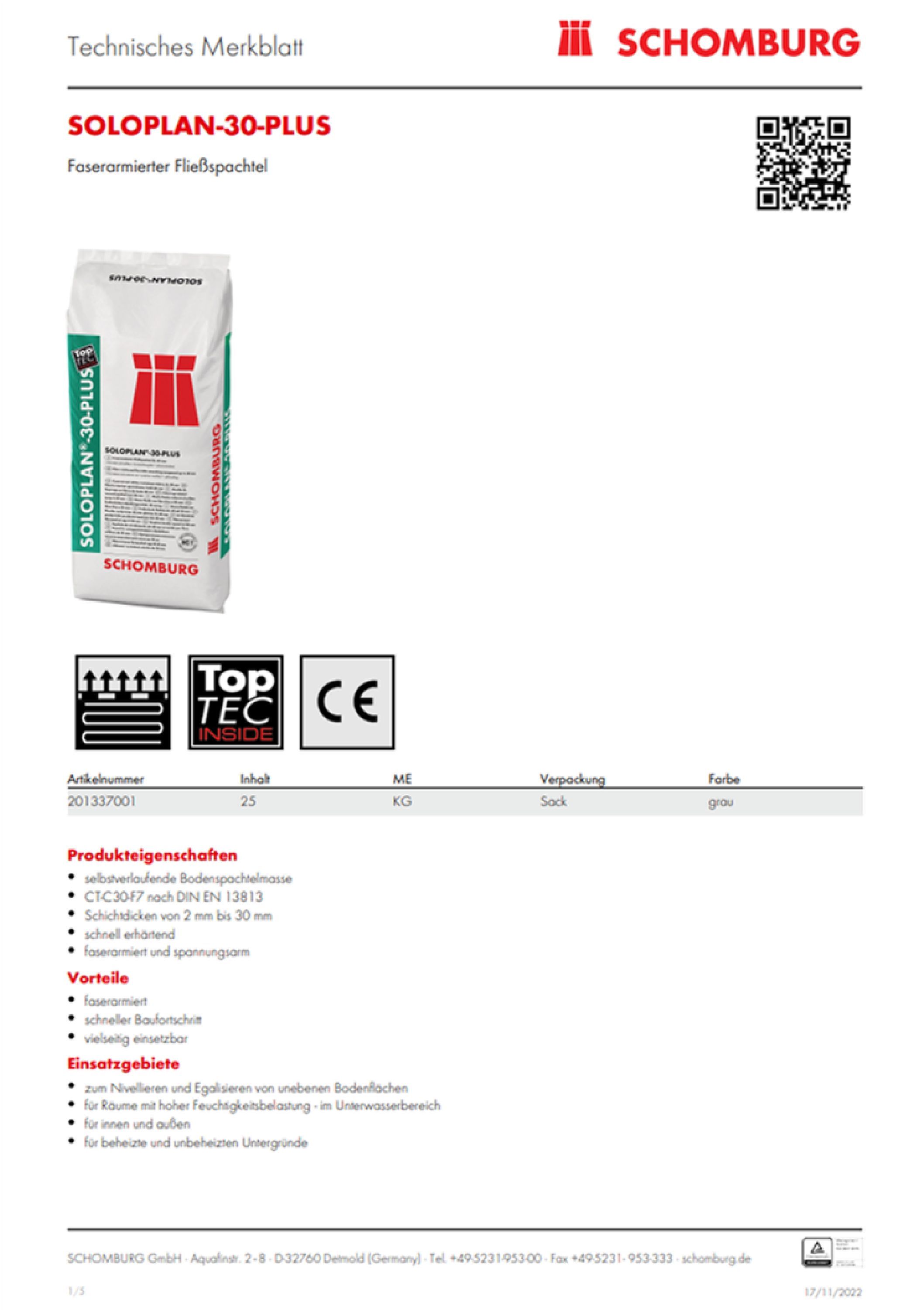 Schomburg Soloplan-30-plus Faserarmierter Fließspachtel Bodenausgleichsmasse Spachtel