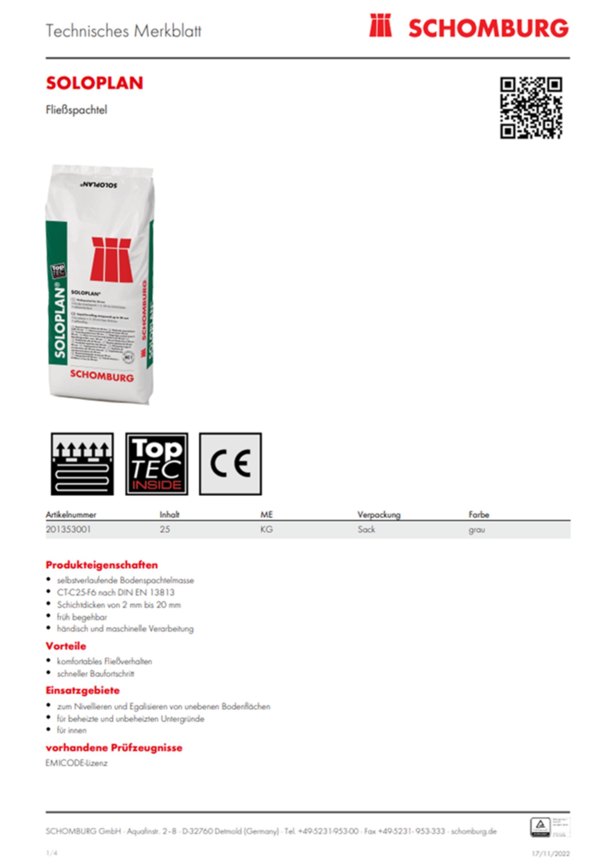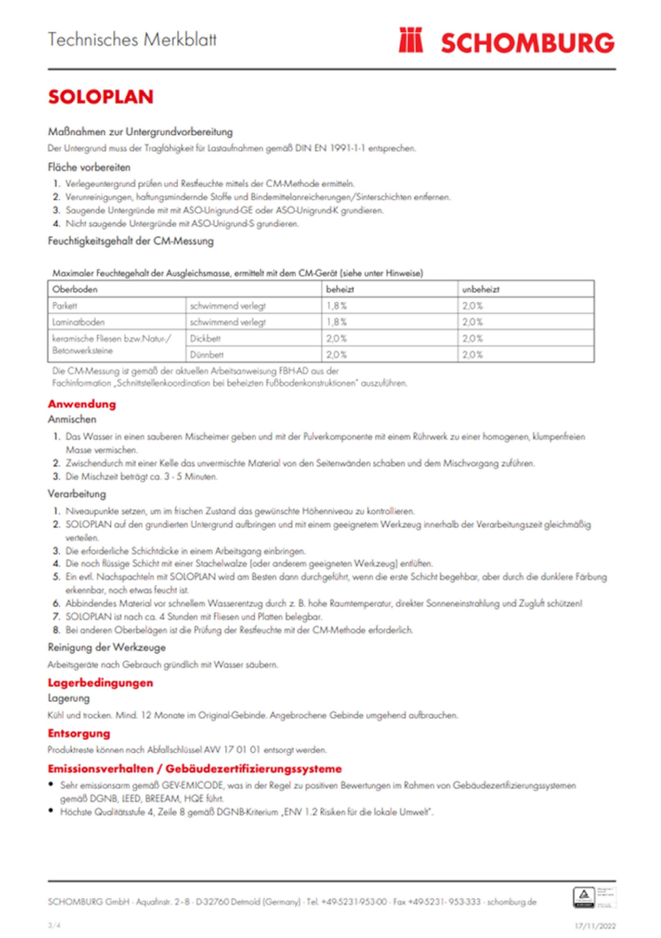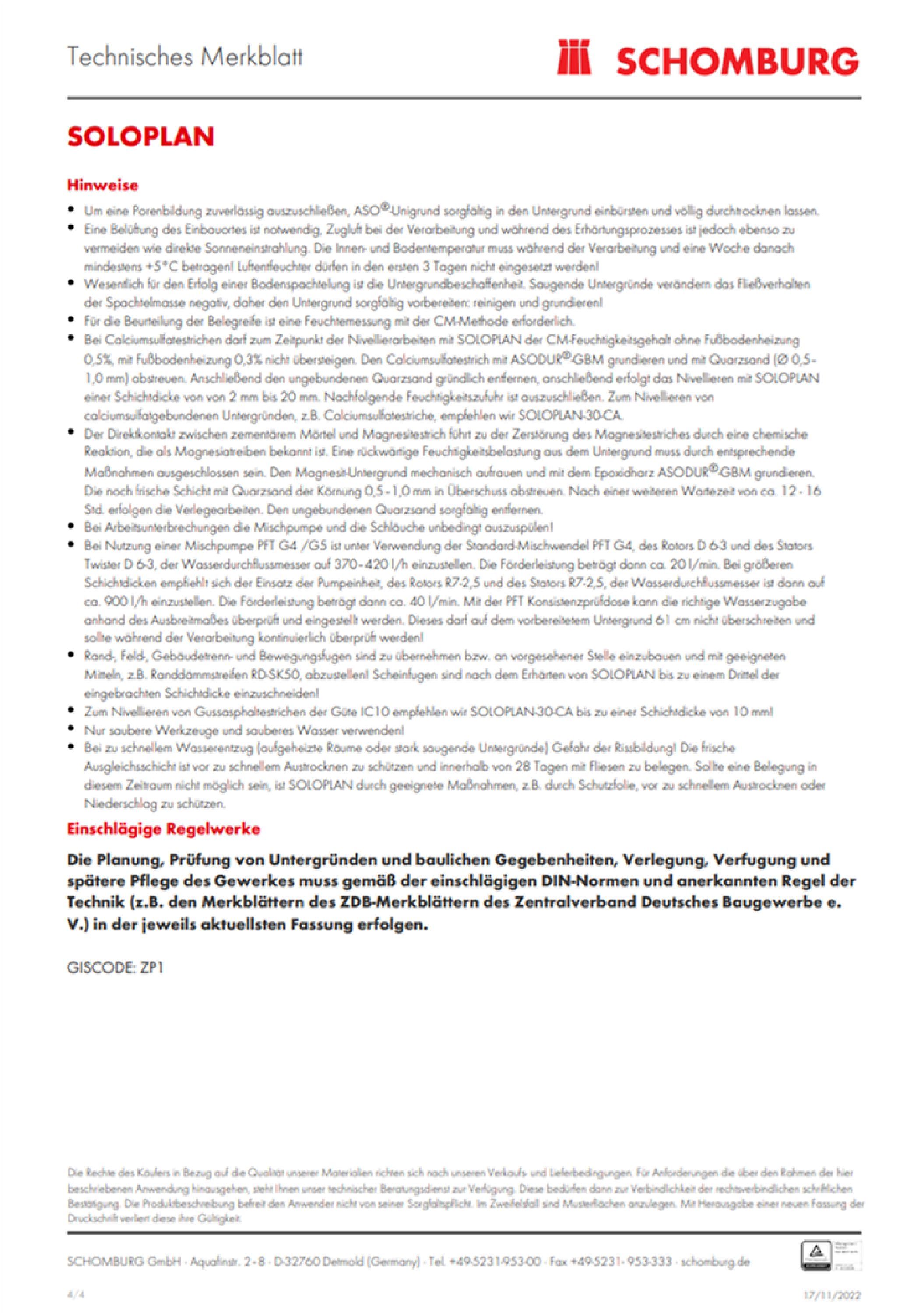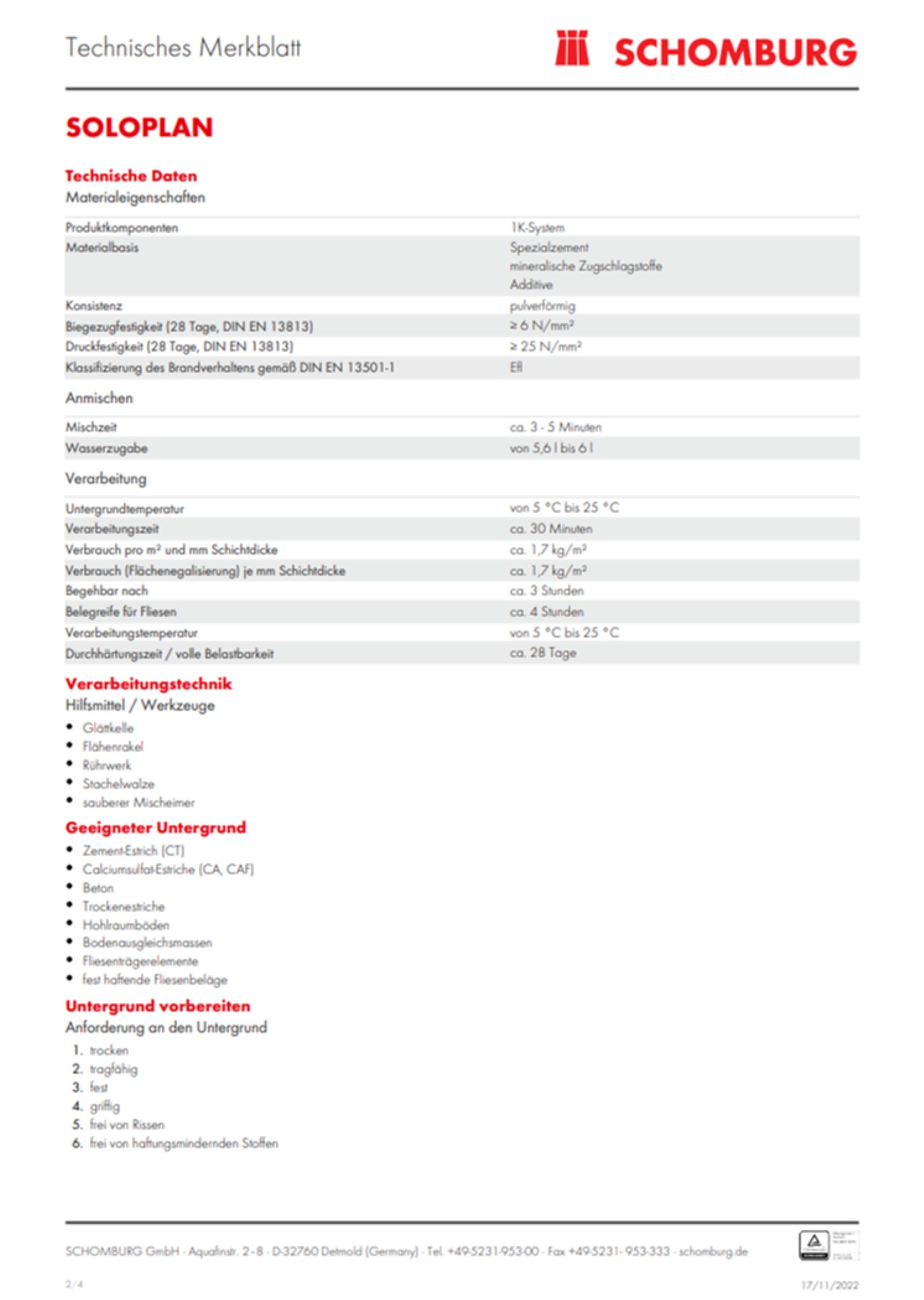 Schomburg Soloplan Fließspachtel Bodenausgleichsmasse Nivelliermasse Ausgleich