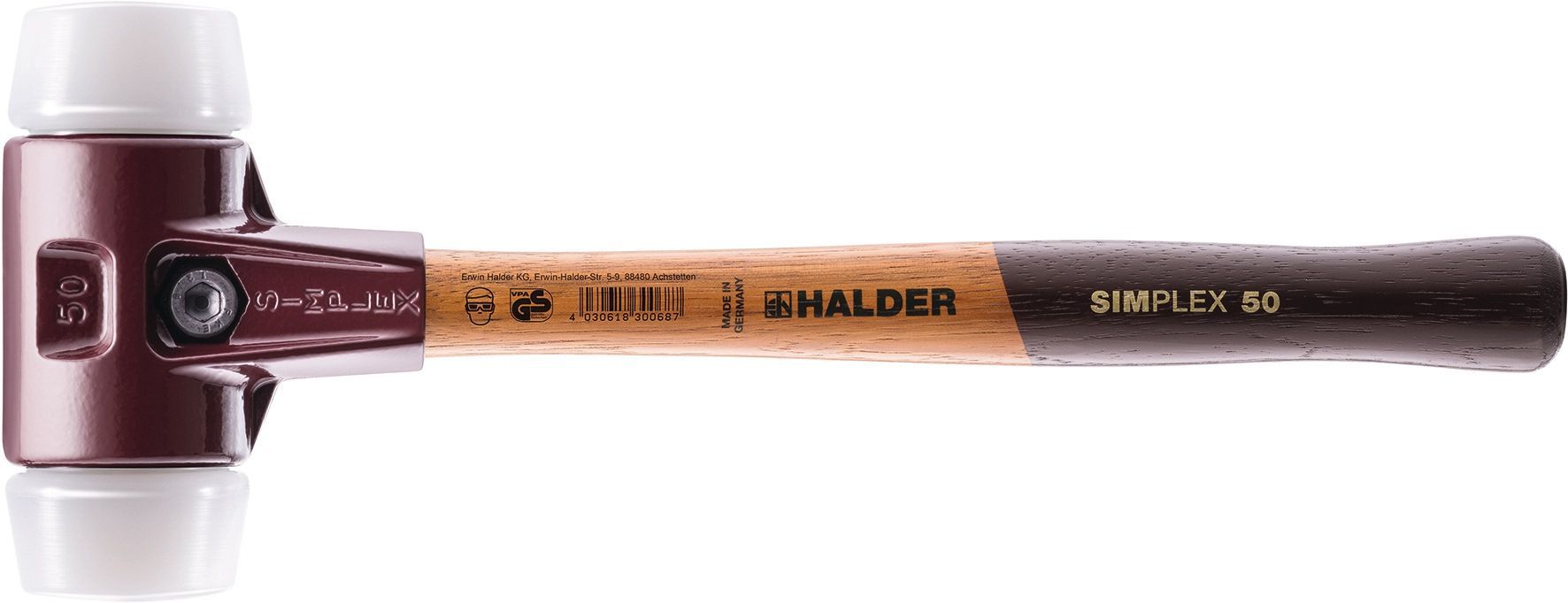 Schonhammer Simplex L.330mm Kopf-D.40mm mittelh. HO Superplastik weiß HALDER