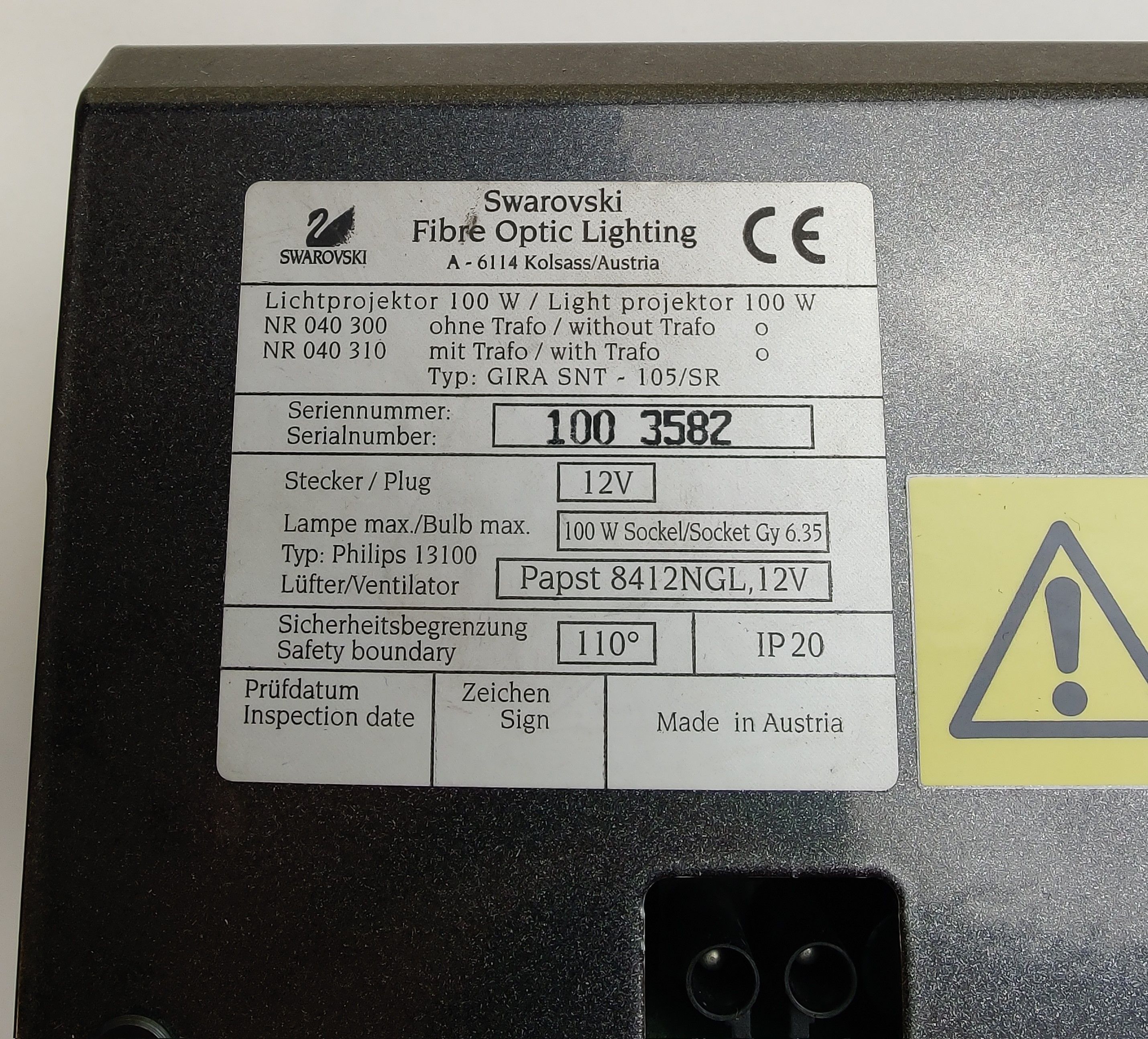 Wir bieten an: Schott Swarovski Sternenhimmel Swaro Lite Glasfaser Lichtprojektor 60 Arme Artikel-Nr.: 2400001353 Technische Daten Hersteller Schott Modell Sternenhimmel mit Projektor Typ GIRA SNT 105 SR Herstellernummer 115 100 Serie Swaro Lite Seriennummer 100 3582 Anzahl Glasfaser-Arme 60 (mit Er... Mehr