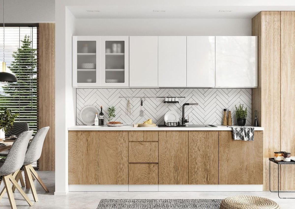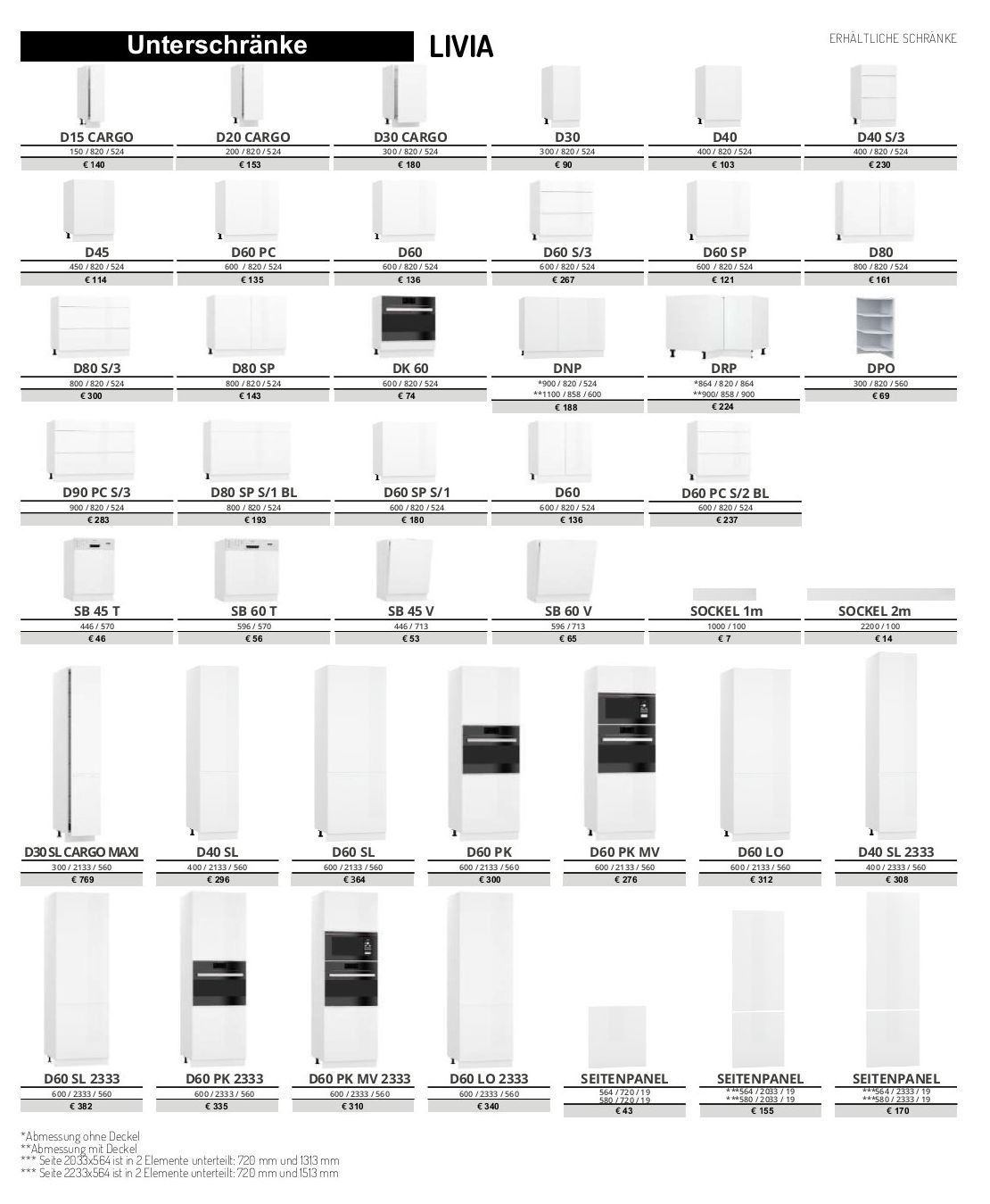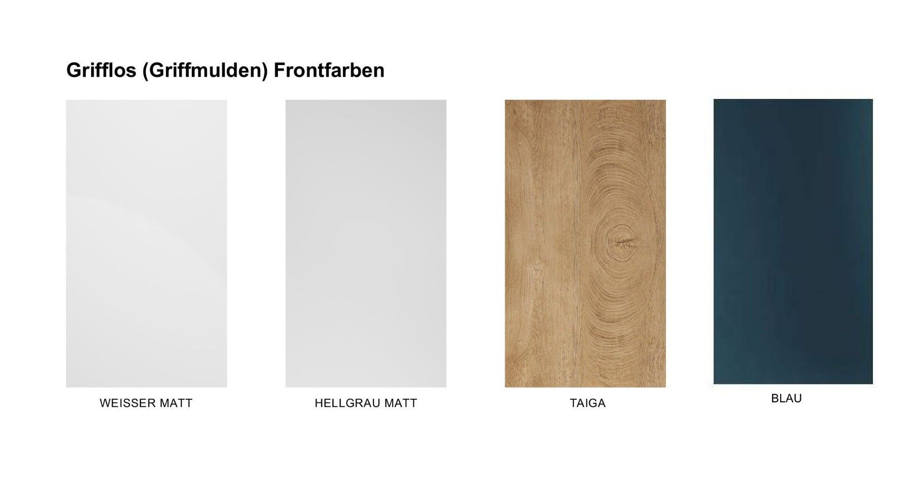 Schränke Küchenzeile erweiterbar Taiga weiss matt Griffmulden Softclose Schubladen
