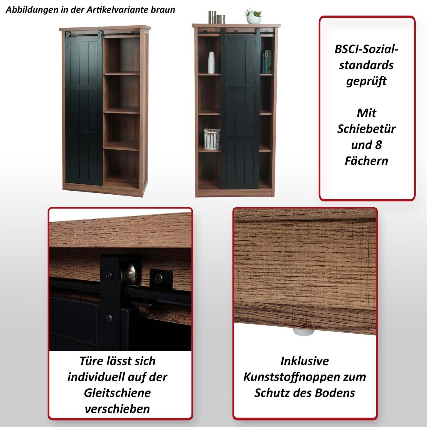 Mendler Schrank HWC-K75, Kommode Highboard, Schiebetüre 8 Staufächer, Holz-Optik Industrial