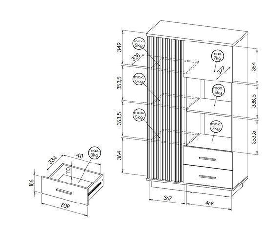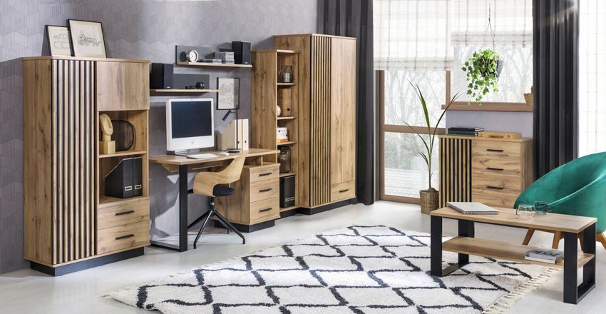 Schrank Lamelo LA4 Hochschrank Regalschrank 2 türen 2 Schubladen Wotan Eiche
