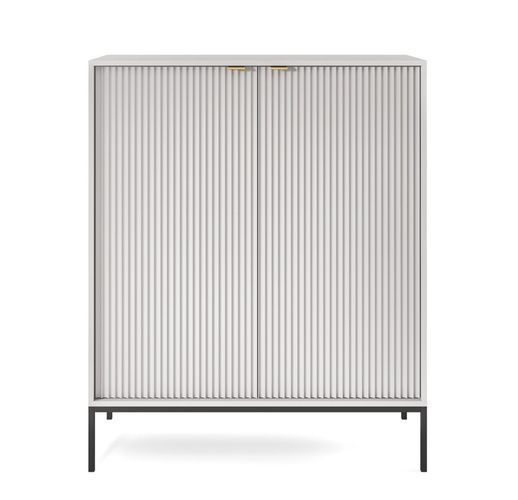 • Schrank Nova NVK104 Kommode Wohnzimerschrank Weiß/ Schwarze Beine und Goldene Griffe