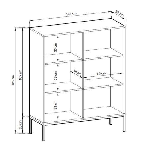 • Schrank Nova K104 Eiche Vincenza – Moderner Hochregal mit 6 Fächern