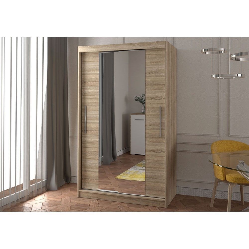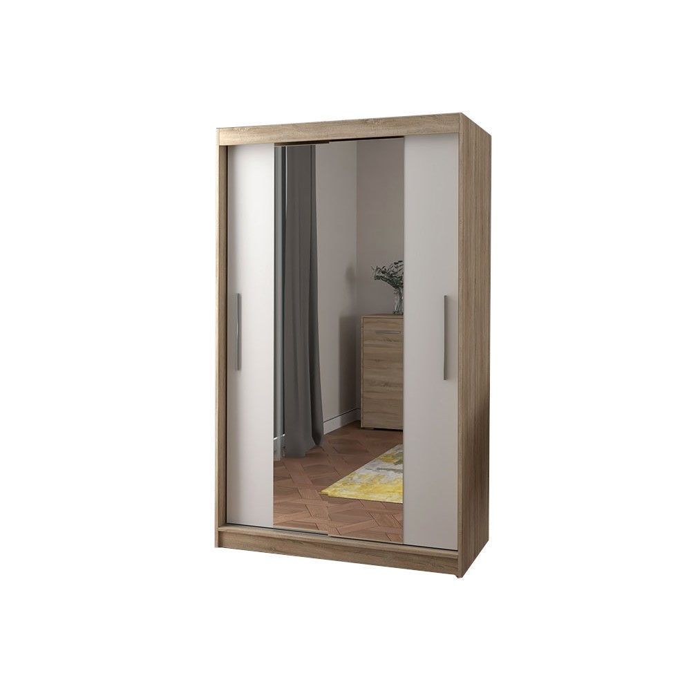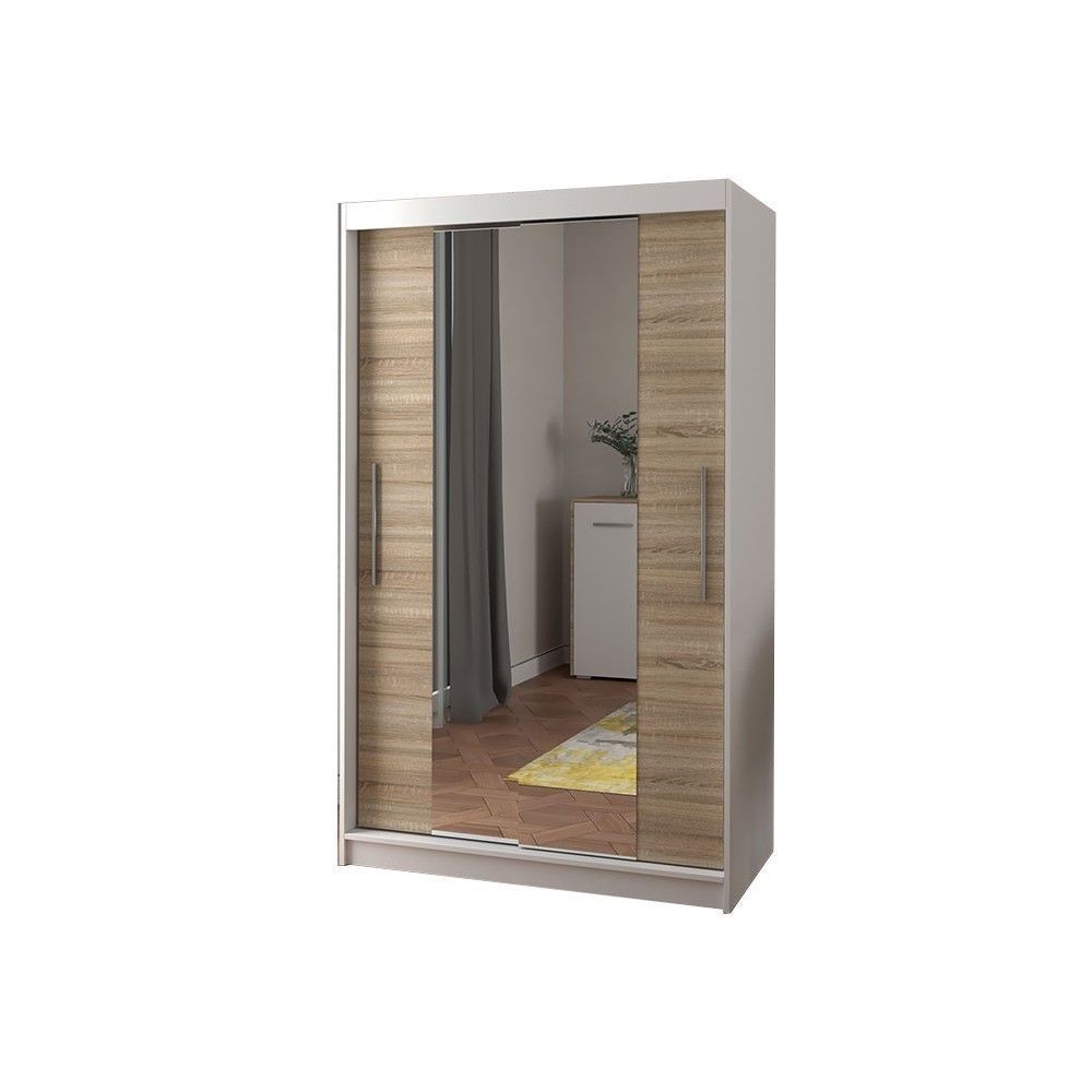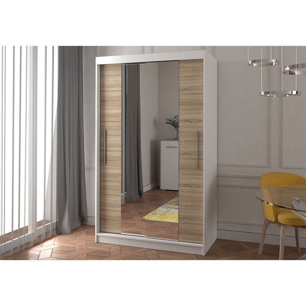 Schrank Schwebetürenschrank mit Spiegel 2-türig 120x200x61 NOAH 01 Weiß + Sonoma