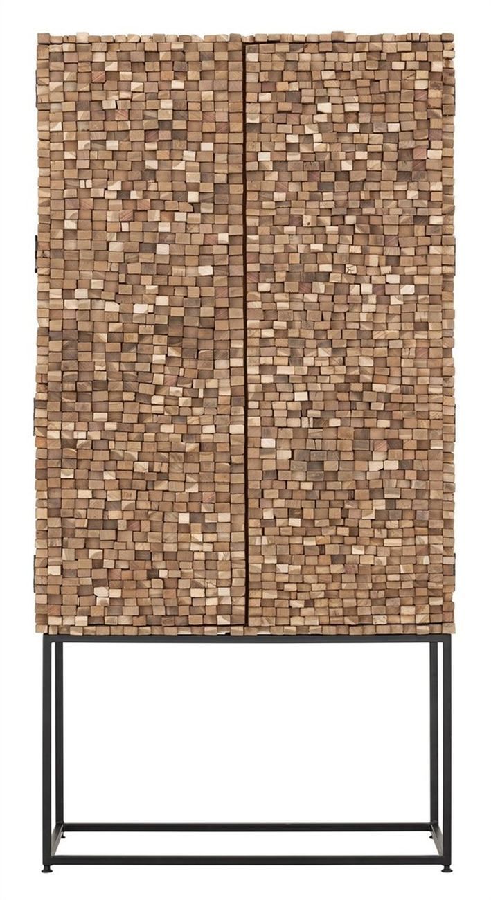 Schrank Sticks aus Teakholz, modernes Design, natur, 90 cm, Metallgestell, montiert g