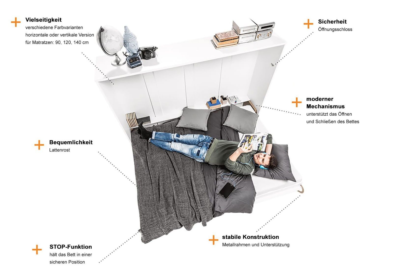 Schrankbett 140 x 200 Vertikal LENART Concept Pro Wandklappbett Bett CP-01