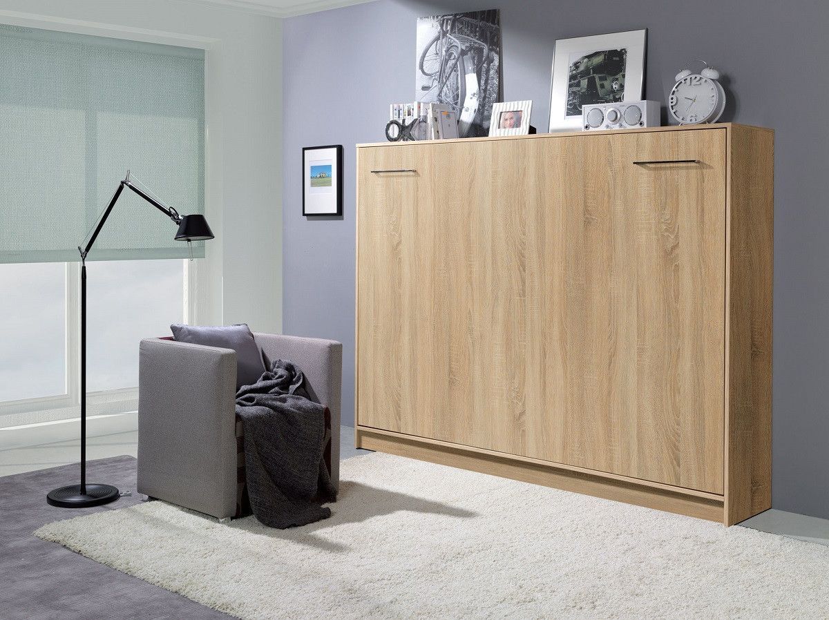 Schrankbett Wandbett Klappbett horizontal HB 90/120/140 x 200 weiß hochglanz eiche