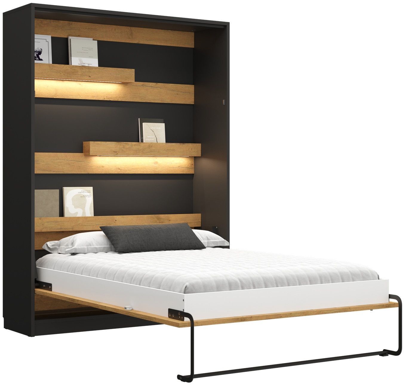 Schrankbett Wandbett Klappbett vertikal GN 160x200 weiß eiche lancelot schwarz congo