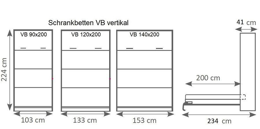 Schrankbett Wandbett Klappbett vertikal VB 140 x 200 weiß eiche Farbauswahl