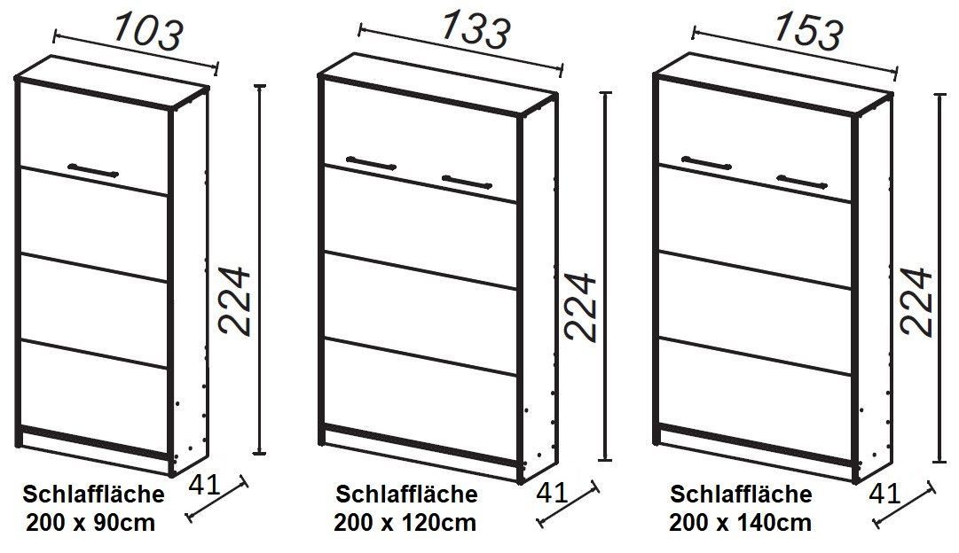Schrankbett Wandbett Klappbett vertikal VB 90/120/140x200 weiß eiche Farbauswahl