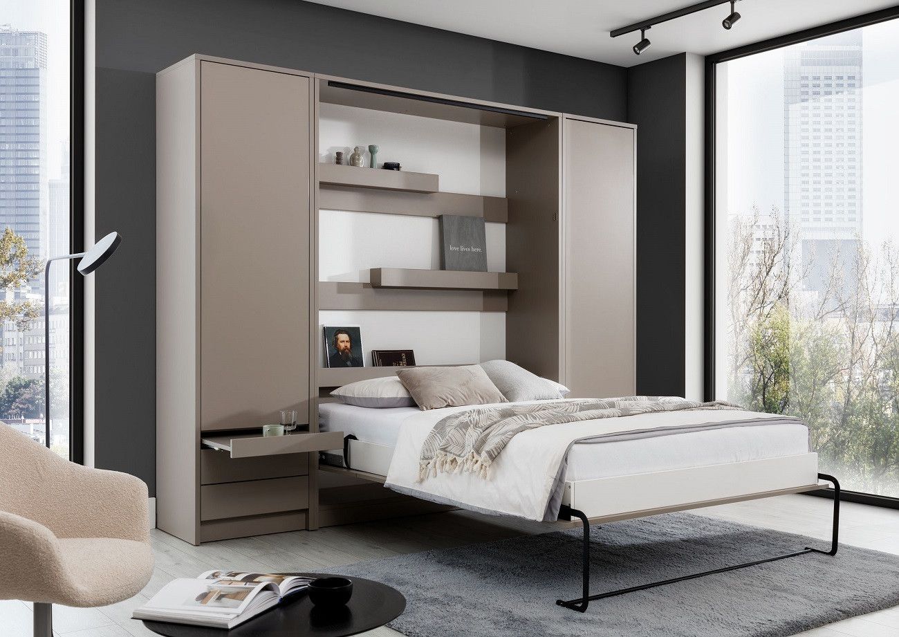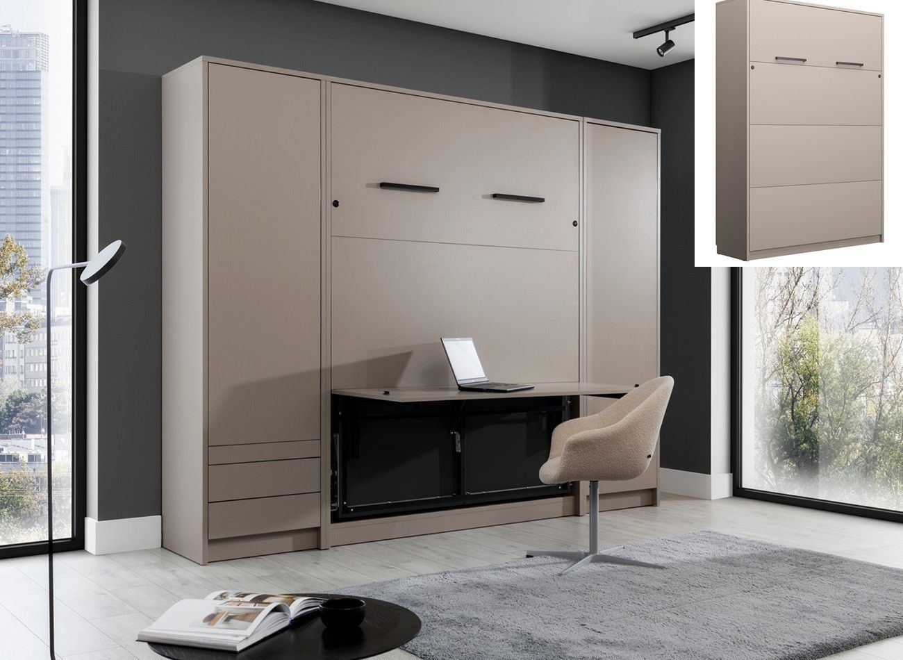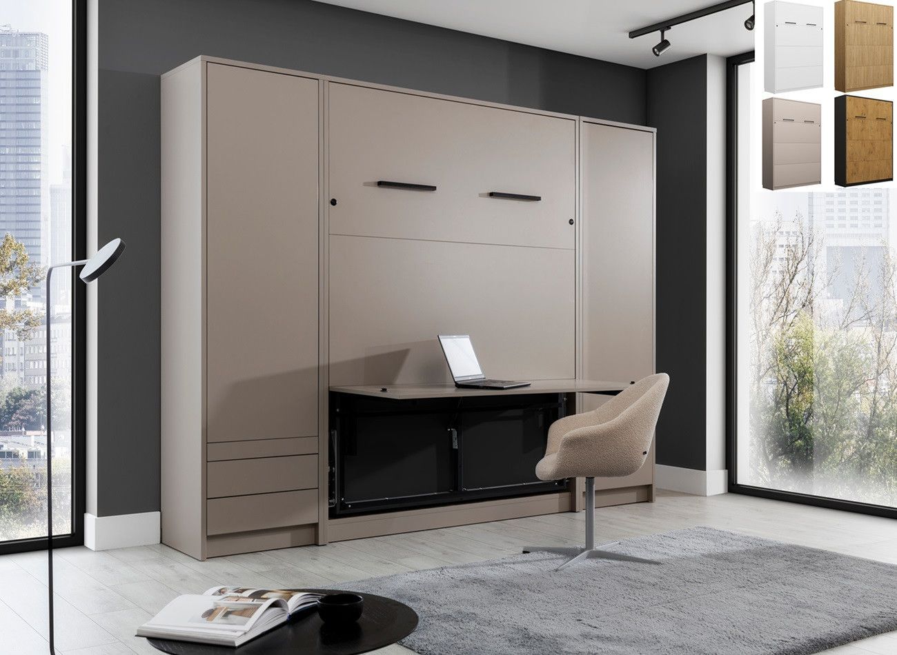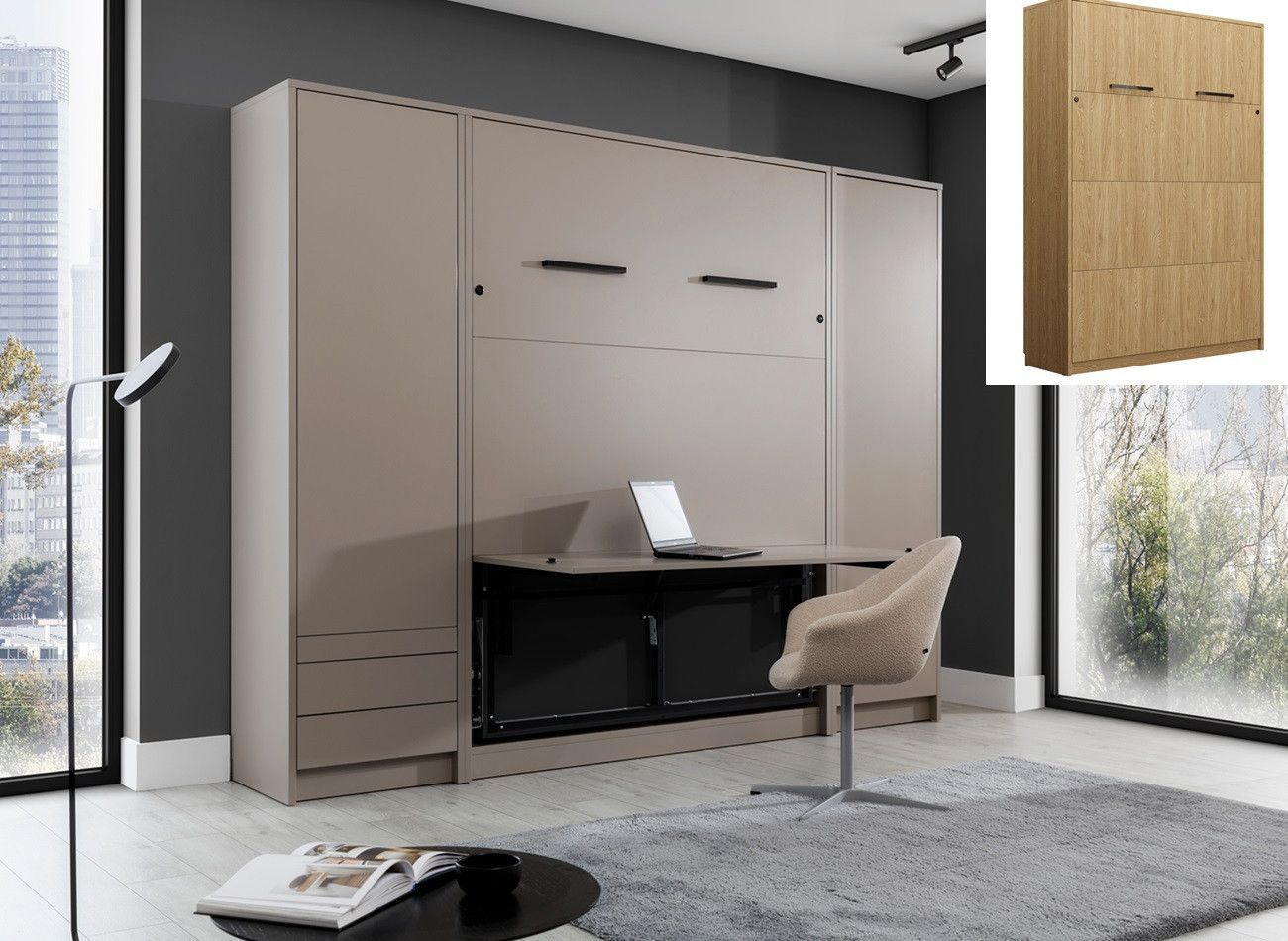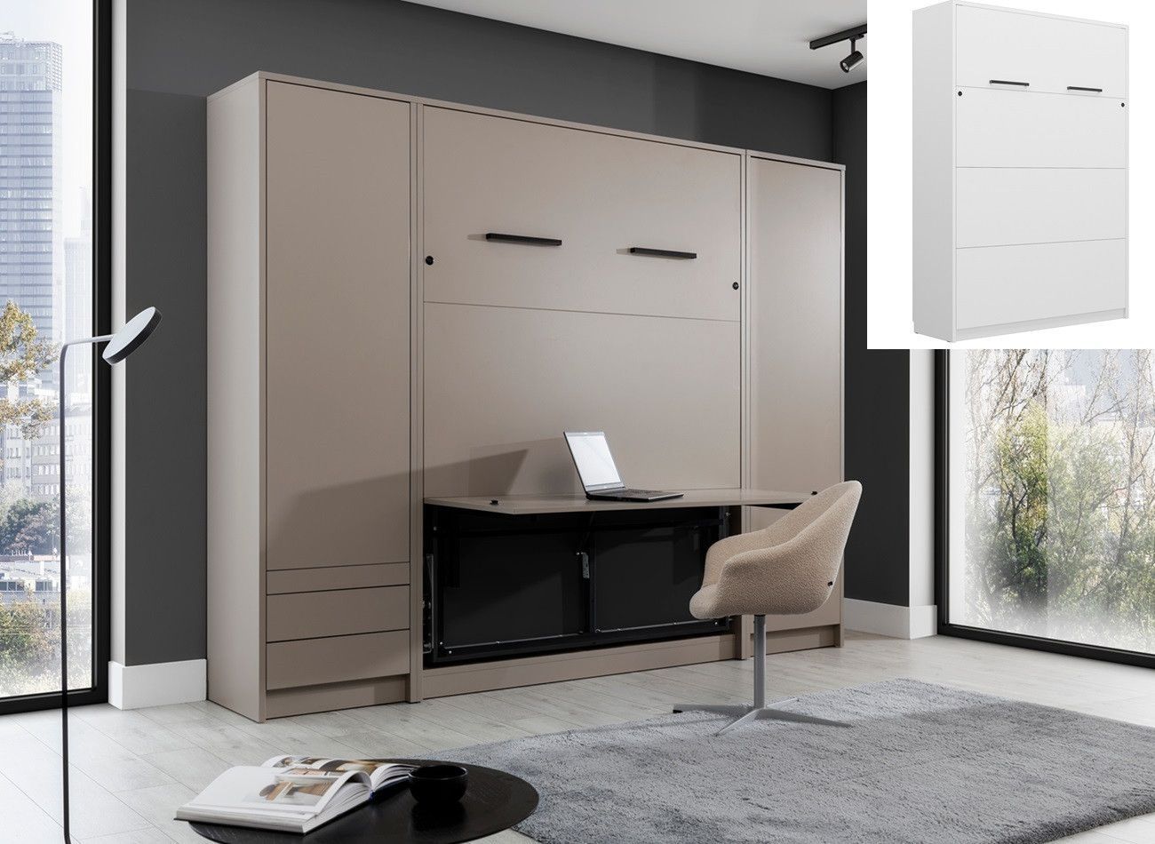 Schrankbett Wandbett Wandklappbett vertikal GN140x200 mit Schreibtisch LED 2Schränken
