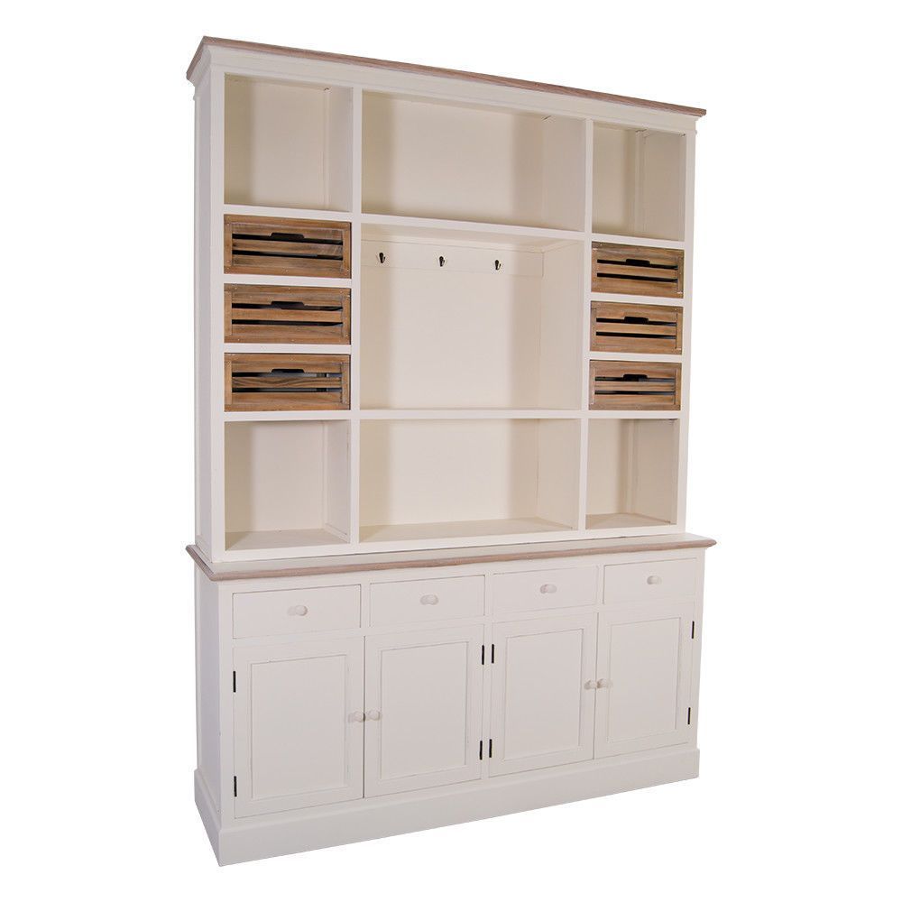 Schrankwand Neapel Buffet Holz 6 Kisten 4 Schubladen Vintage Look weiß