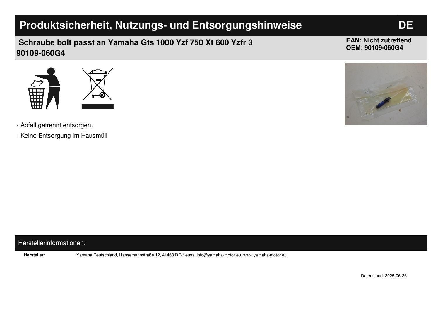 Schraube bolt passt an Yamaha Gts 1000 Yzf 750 Xt 600 Yzfr 3 90109-060G4 In dieser Auktion gibt es folgenden Artikel zu kaufen: Schraube (siehe Foto) Modell: passend für Yamaha GTS 1000 Bj.: 93 - 94 YZF 750 Bj.: 94 XT 600 Bj.: 95 YZFR 3 Bj.: 15 Lieferumfang: 1 Stück Artikelzustand: neu aus Geschäfts